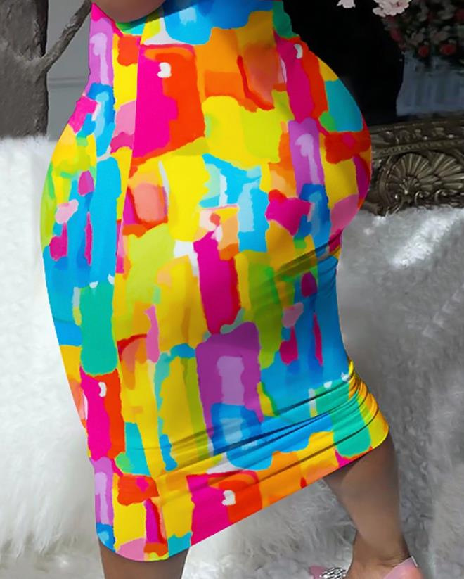 2023 유럽과 미국 크로스 보더 아마존 라운드 넥 짧은 티셔츠 소매 힙 스커트 인쇄 세트 여성복