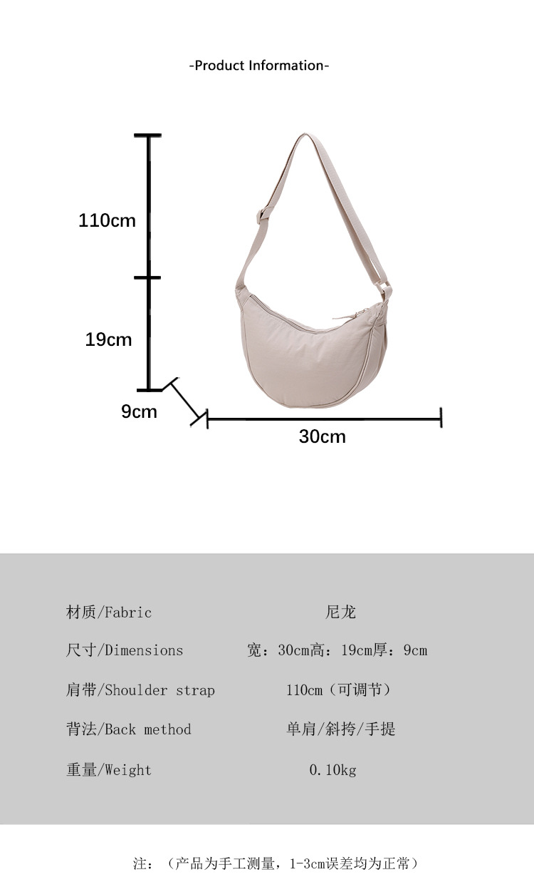 다용도 여성용 소형 숄더백, 나일론 만두백, 여성용 트렌디 캐주얼 숄더 크로스백, 심플한 소형 천 가방 도매스토어 가기