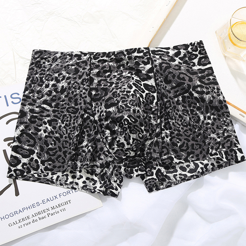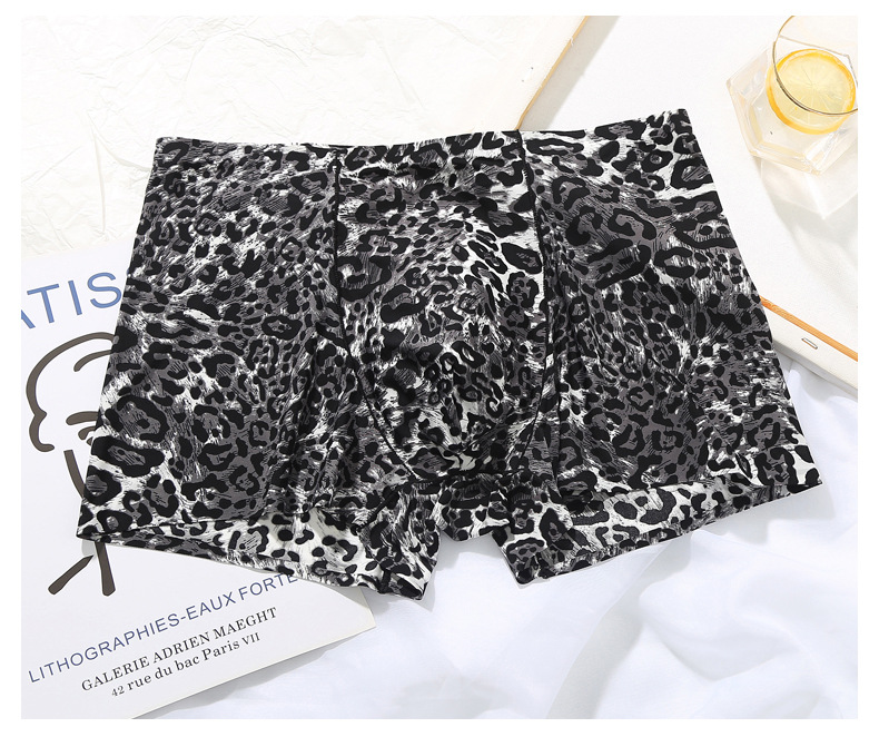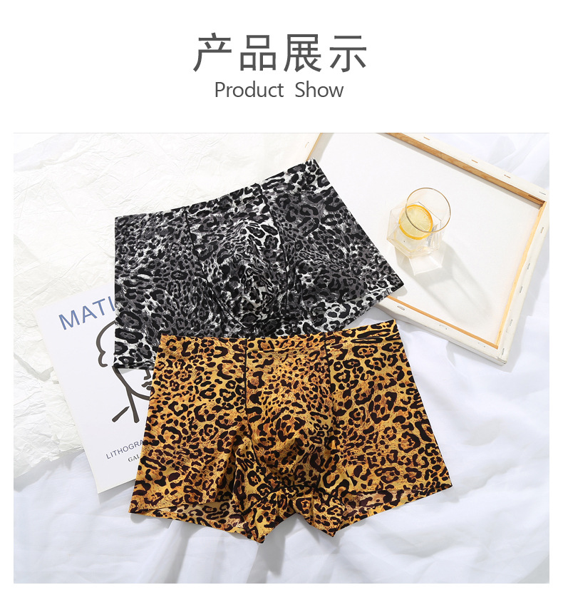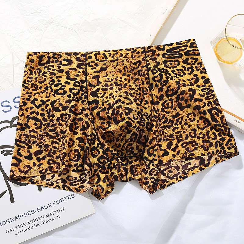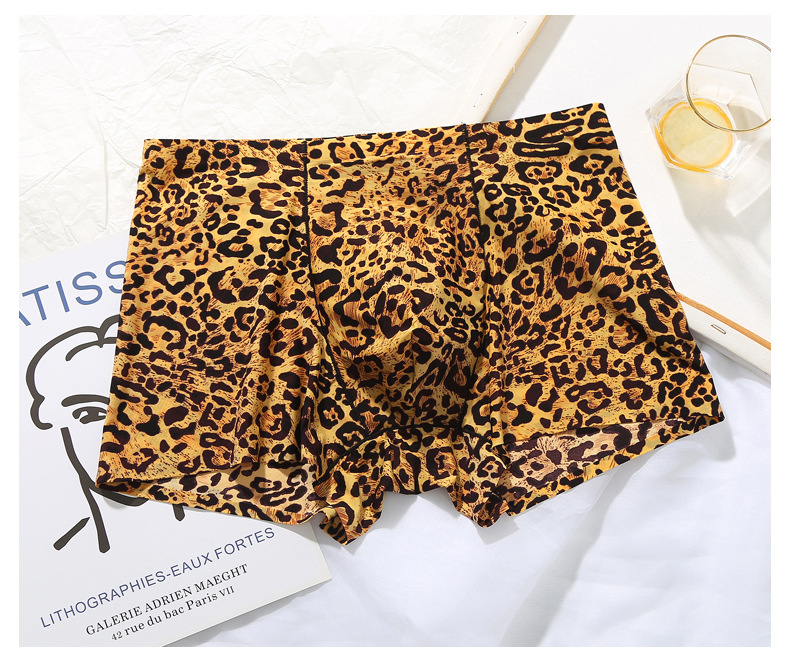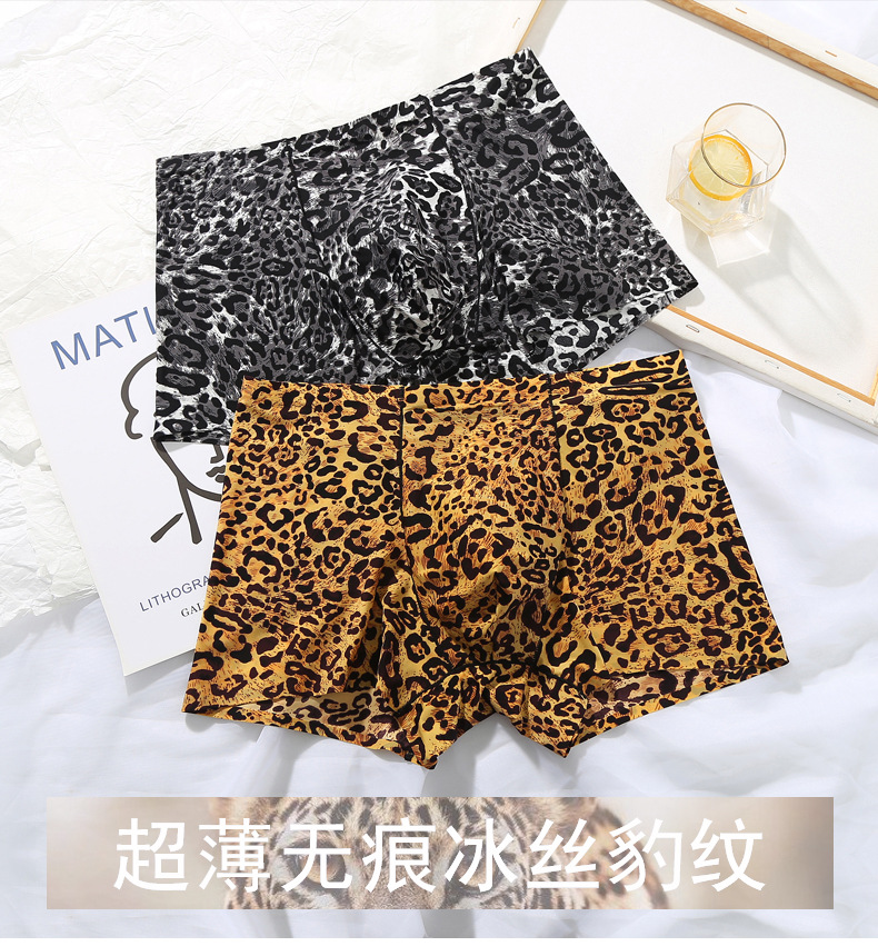 남자의 레오파드 무늬 속옷 청소년 스포츠 트렌디 플랫 앵글 울트라 씬 아이스 실크 원활한 U 볼록 디자인 복서 바지