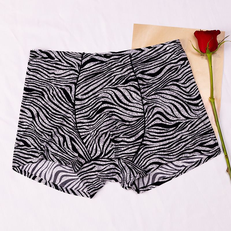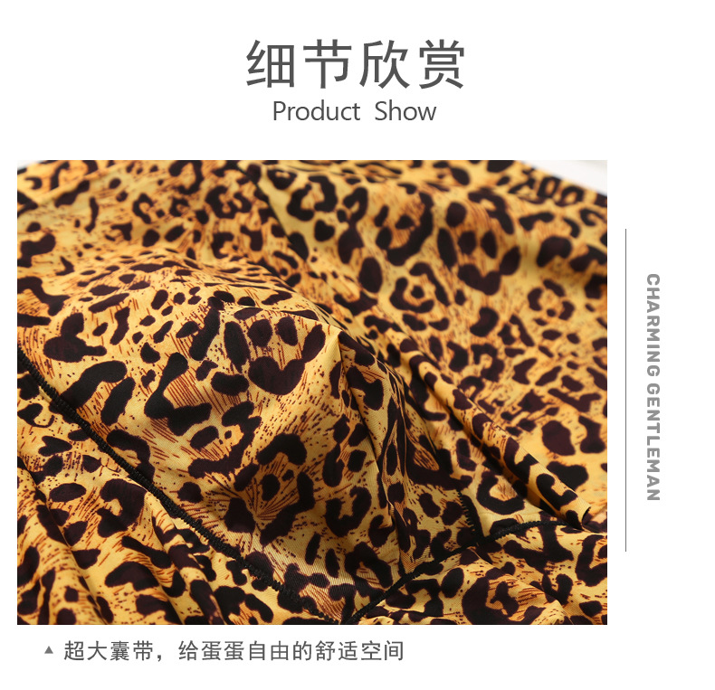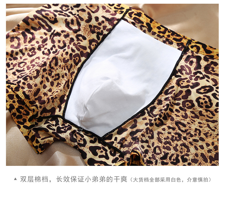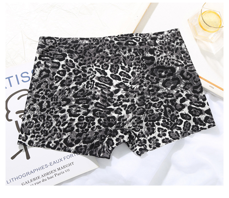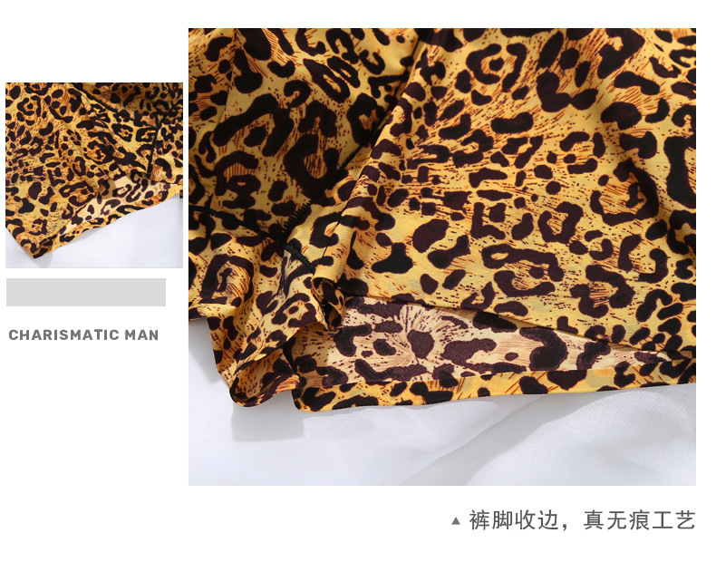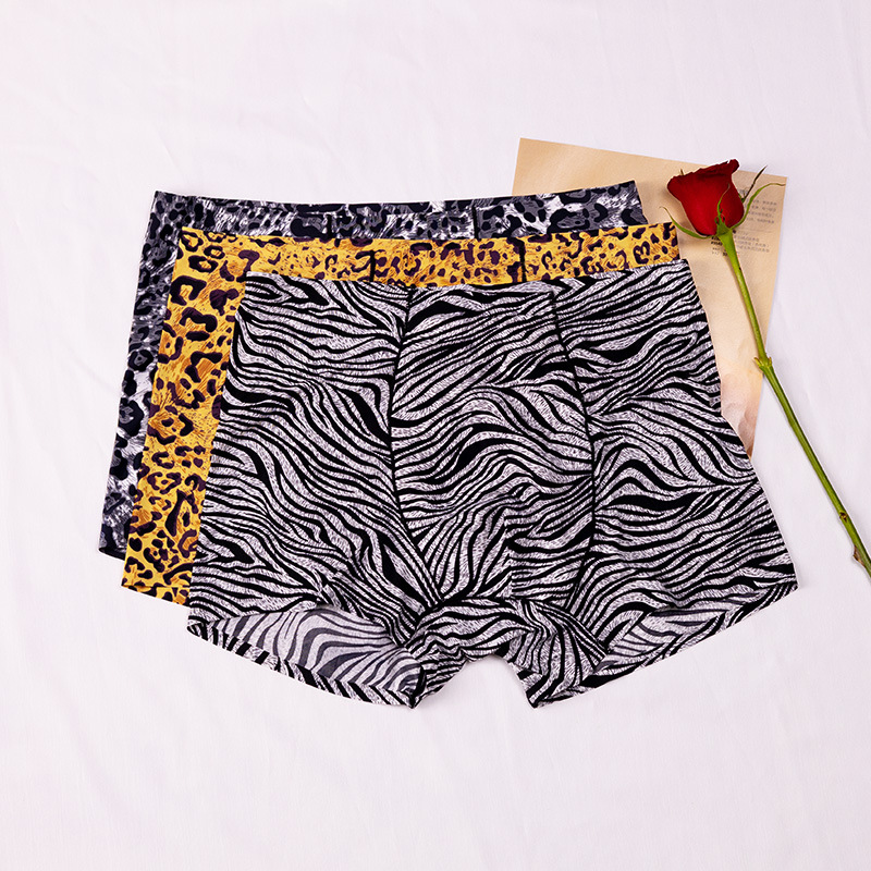 남자의 레오파드 무늬 속옷 청소년 스포츠 트렌디 플랫 앵글 울트라 씬 아이스 실크 원활한 U 볼록 디자인 복서 바지