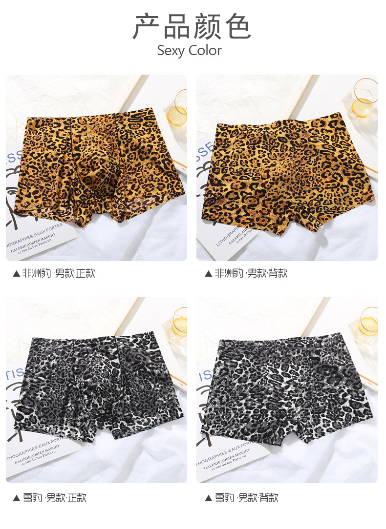 남자의 레오파드 무늬 속옷 청소년 스포츠 트렌디 플랫 앵글 울트라 씬 아이스 실크 원활한 U 볼록 디자인 복서 바지스토어 가기