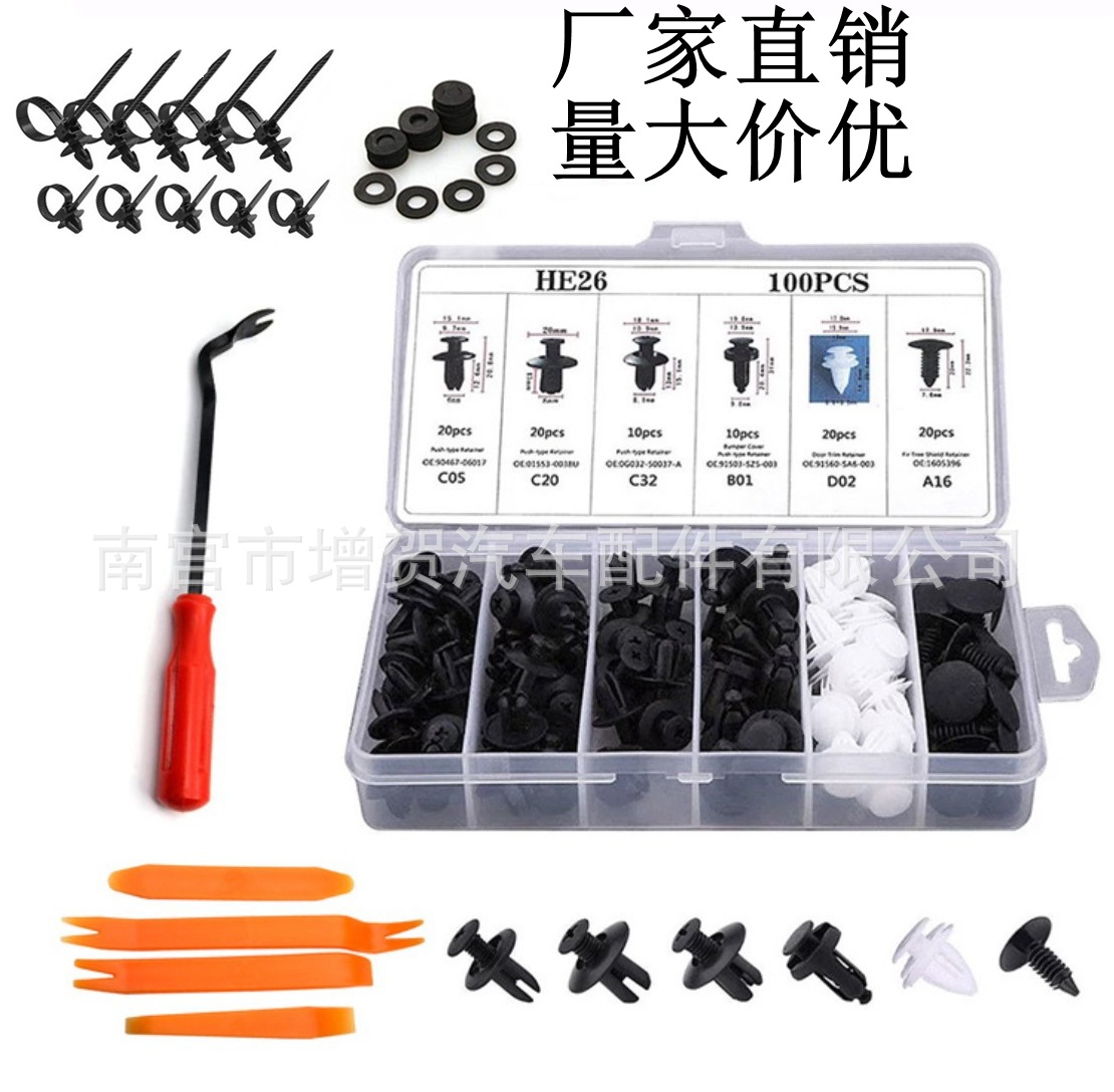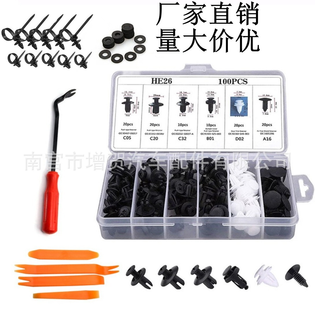 100PCS 박스 카 버클 박스 100PCS 조합 세트 나일론 클립 범퍼 유니버설 버클
