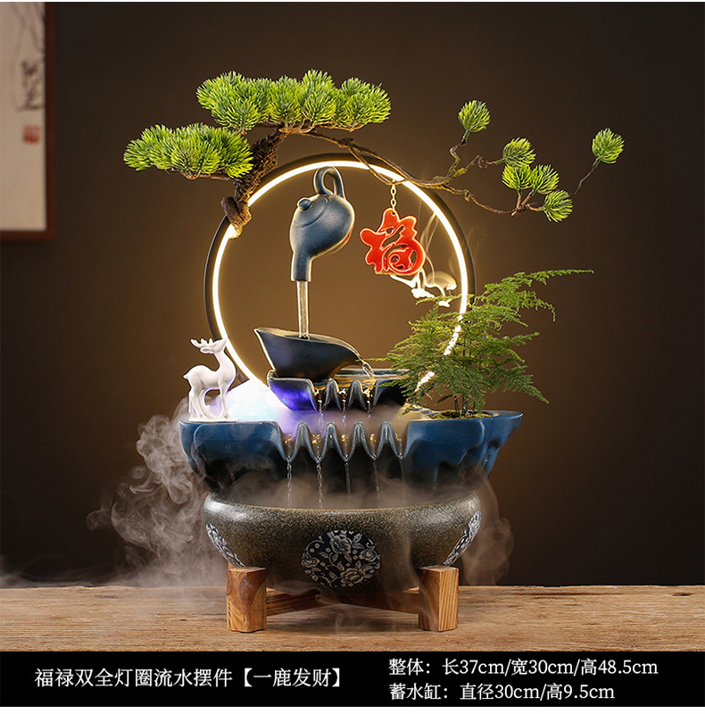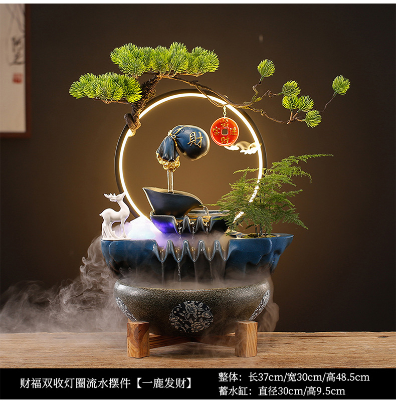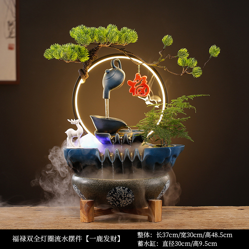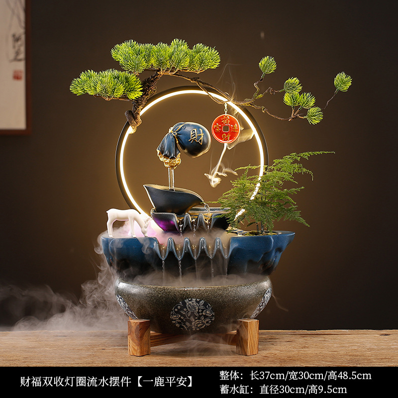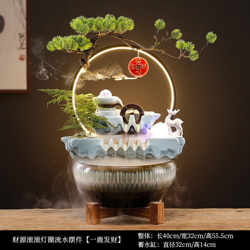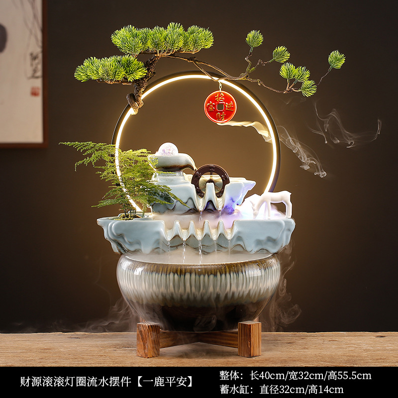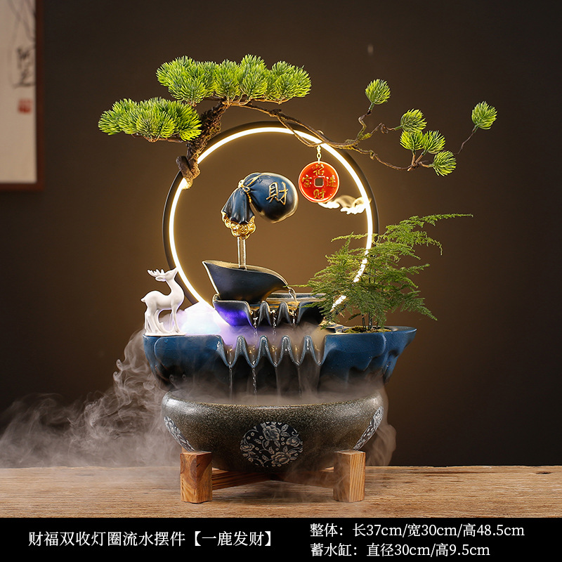 • Caifu 이중 폐쇄 램프 써클 흐르는 물 장식품 [사슴 부자]]