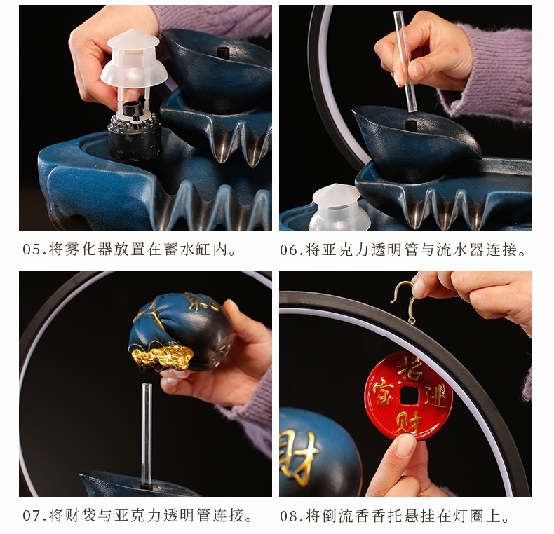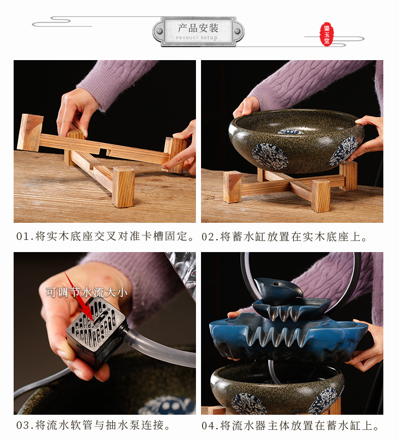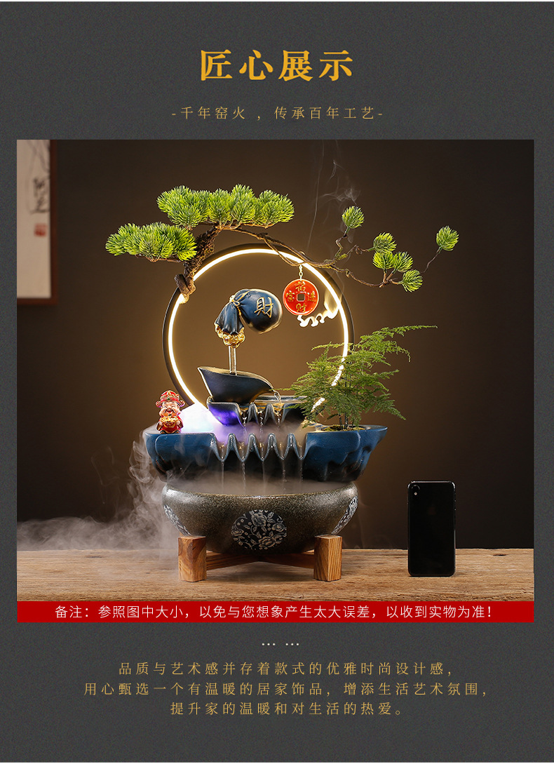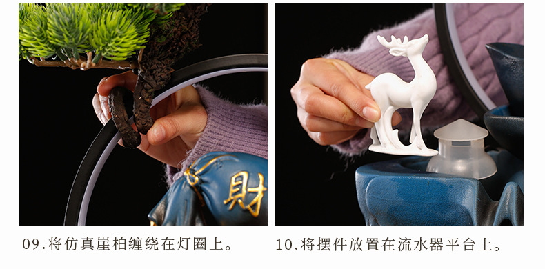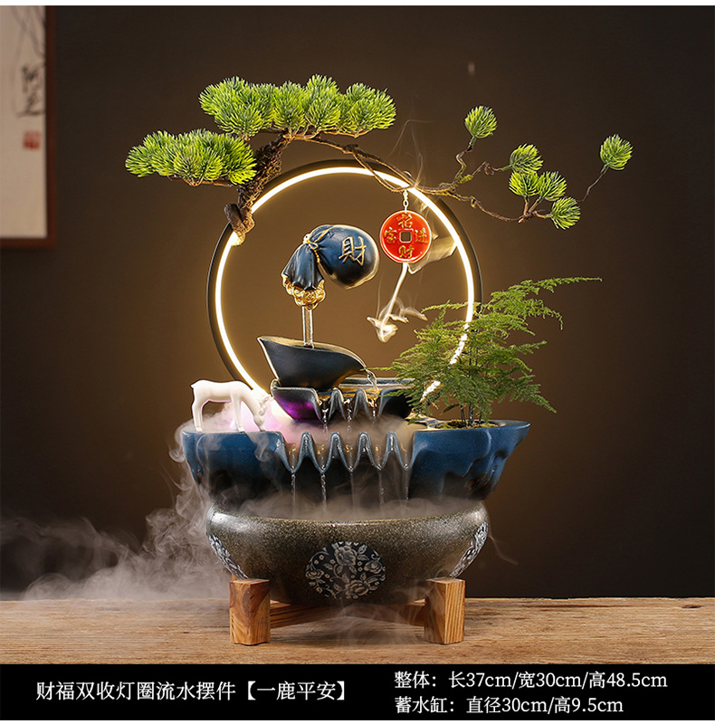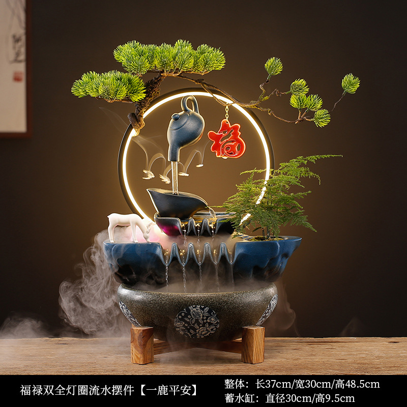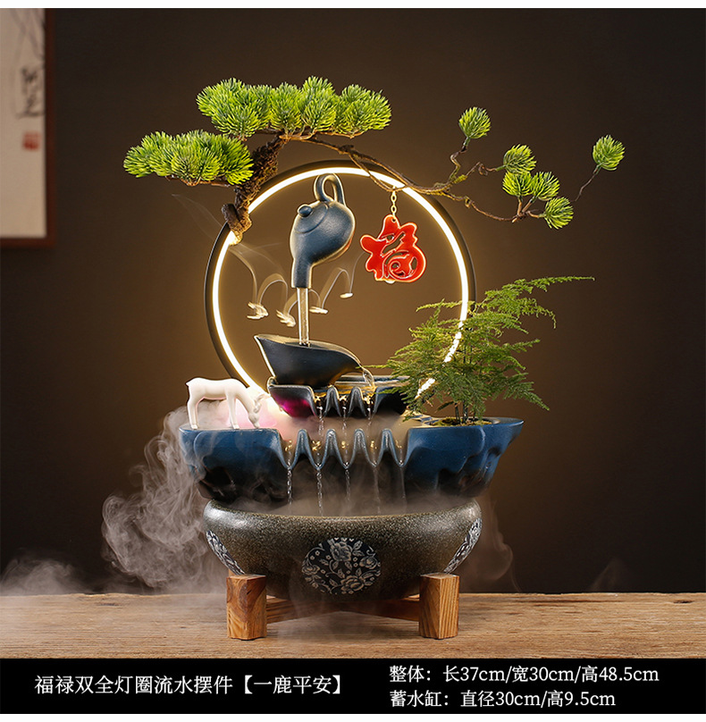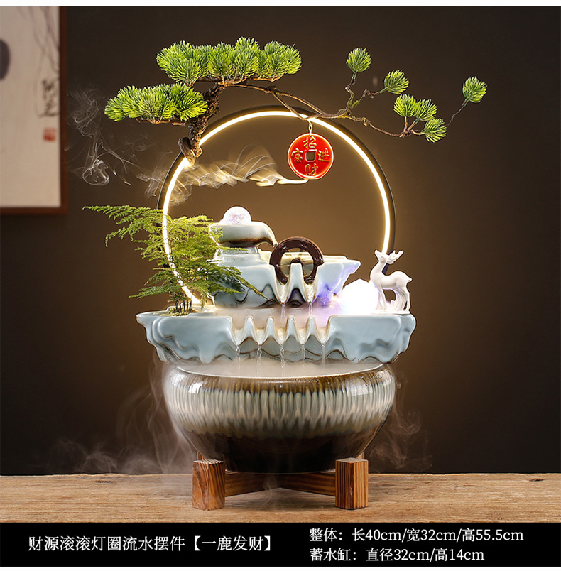 • Caifu 이중 폐쇄 램프 써클 흐르는 물 장식품 [사슴 부자]]