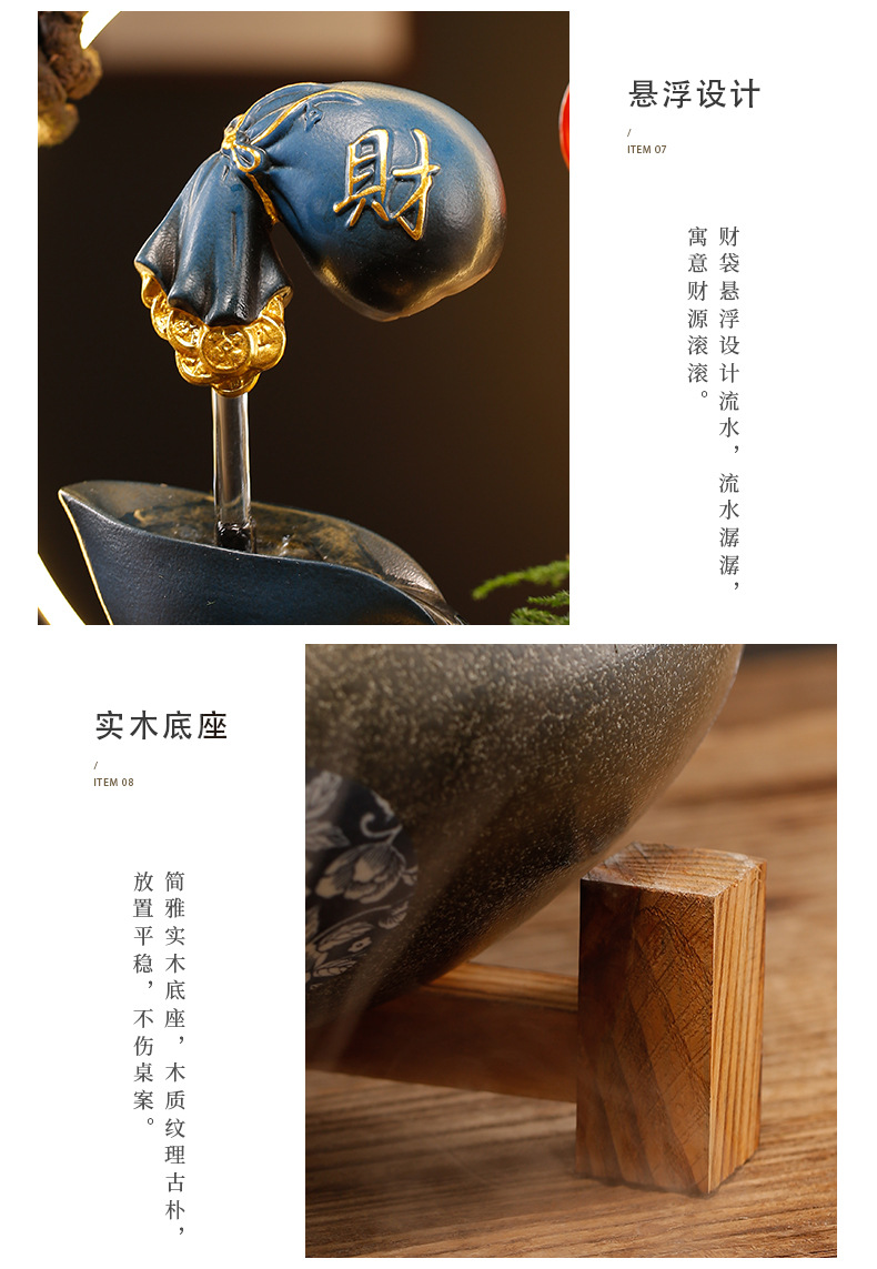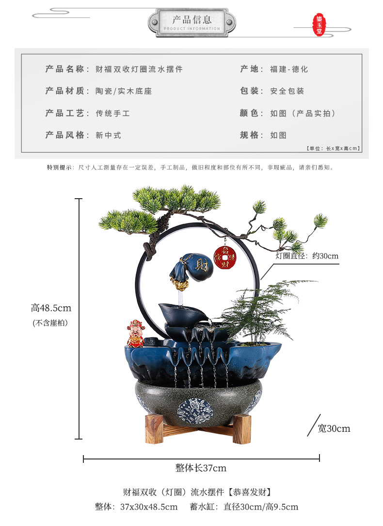 • Caifu 이중 영수증 램프 원형 흐르는 물 장식품 [돈을 버는 여덟 방향]]