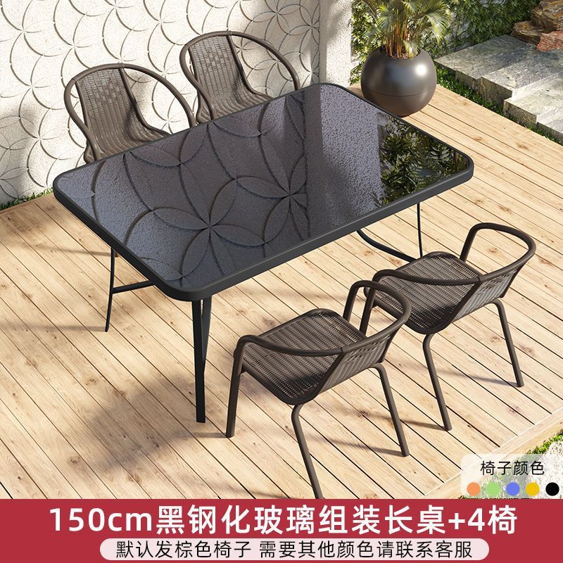 • 150cm 블랙 강화 유리 조립 긴 테이블 + 의자 4 개
