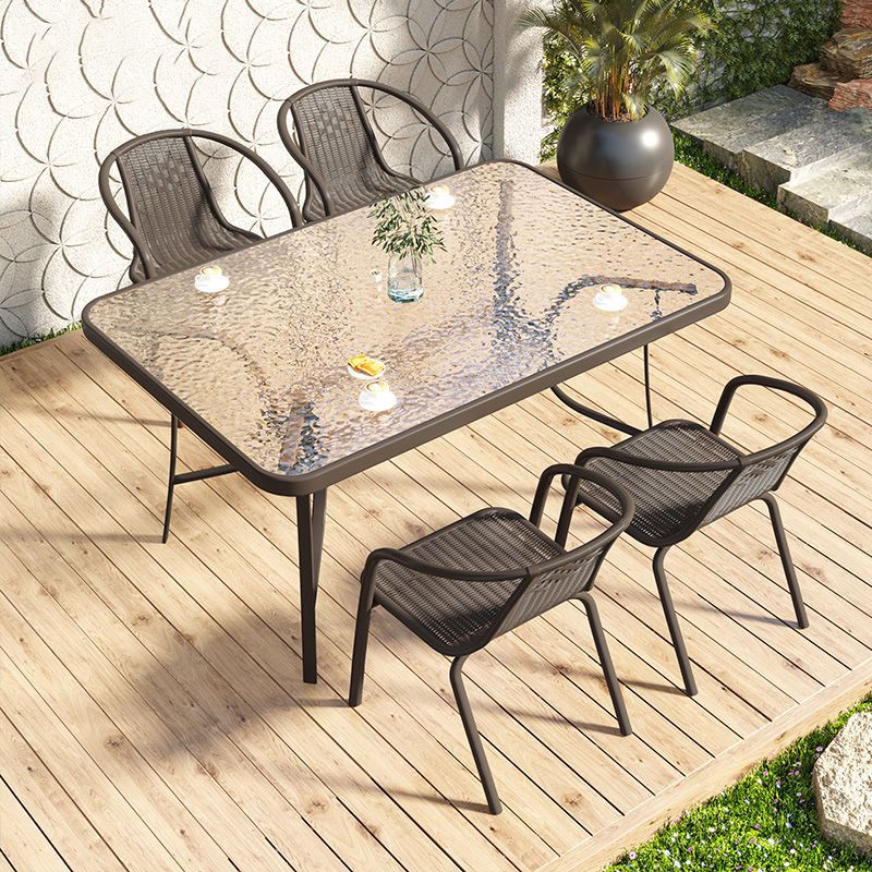 • 150cm 물 패턴 강화 유리 조립 긴 테이블 + 의자 4 개