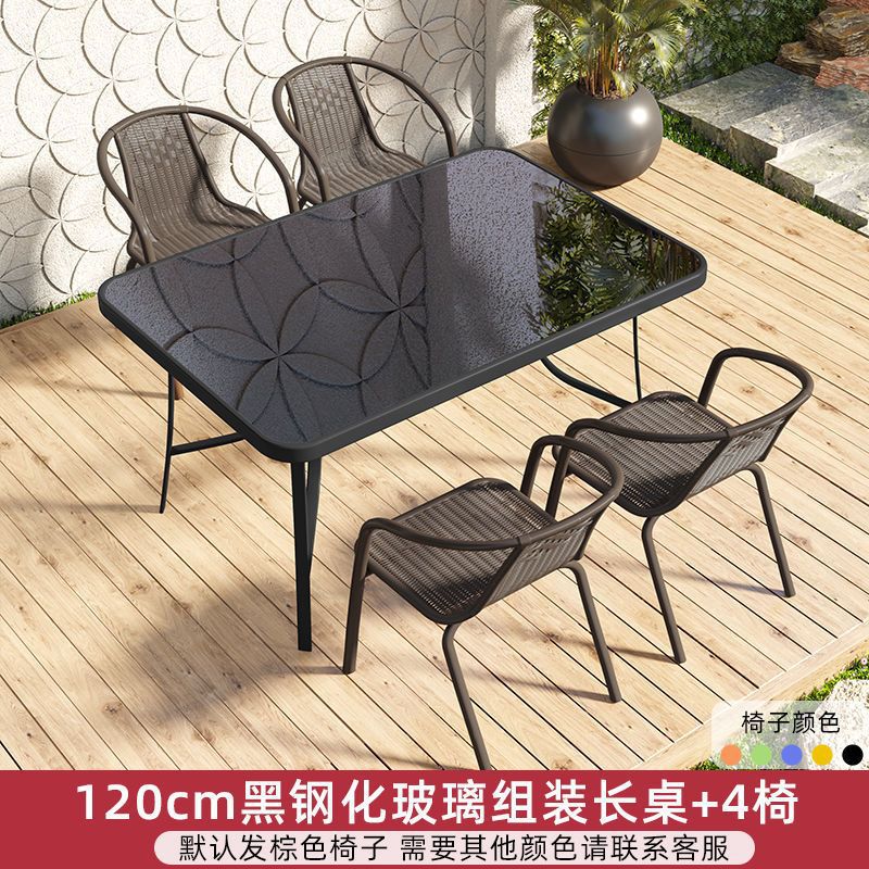 • 120cm 물 패턴 강화 유리 조립 긴 테이블 + 의자 4 개