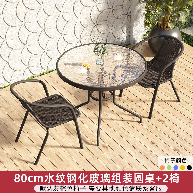 • 80cm 물 패턴 강화 유리 조립 원형 테이블 + 2 의자