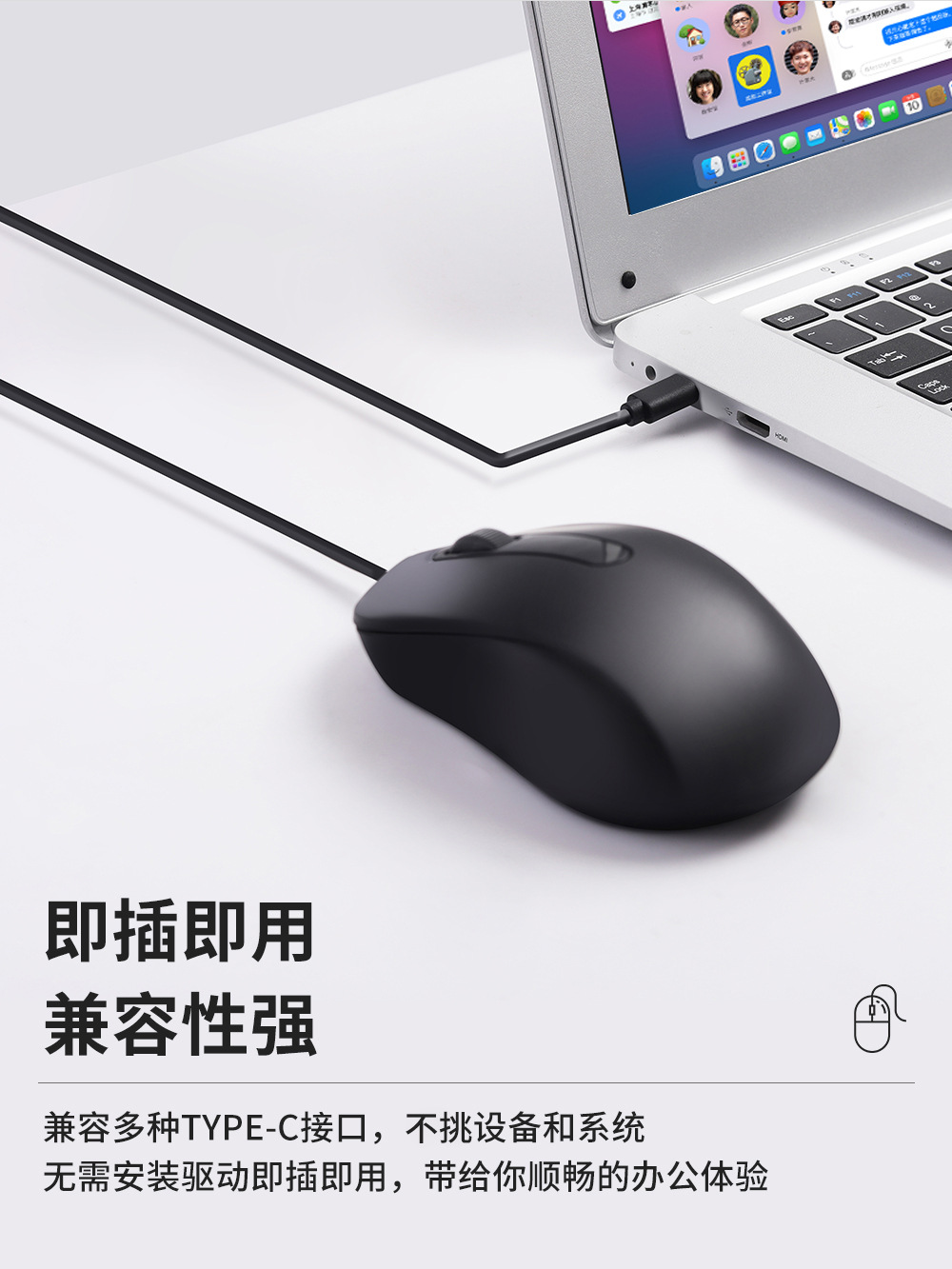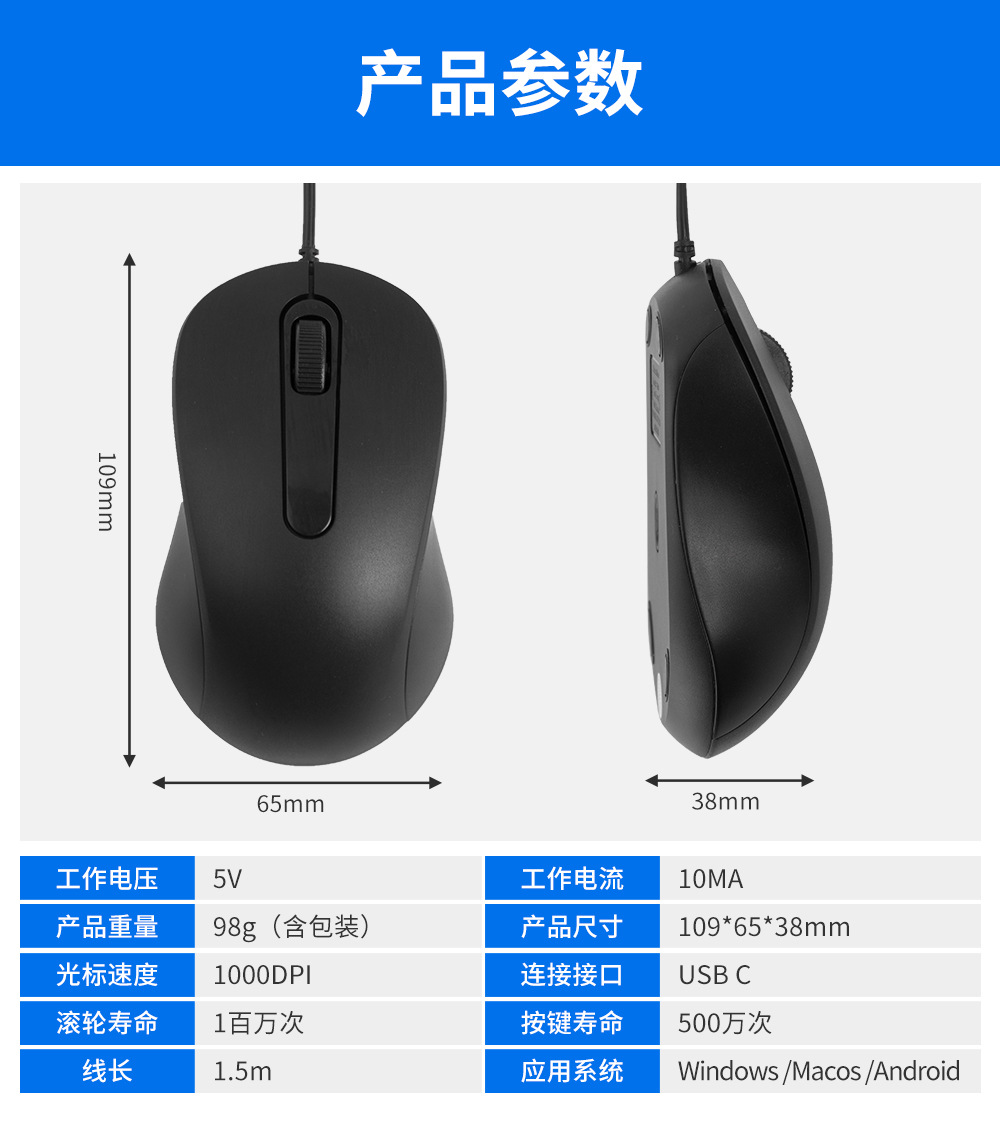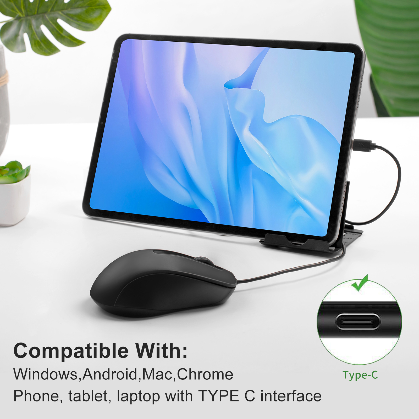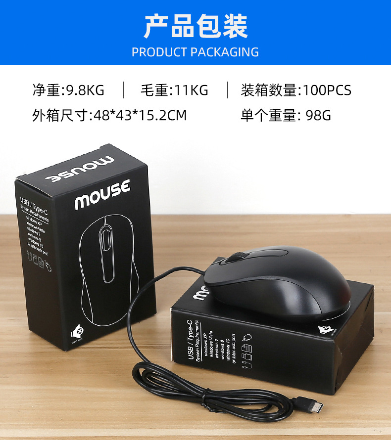 크로스보더 유선 마우스 Type-C, MAC BOOK Neo 노트북, 태블릿, 휴대폰 마우스에 호환 가능스토어 가기