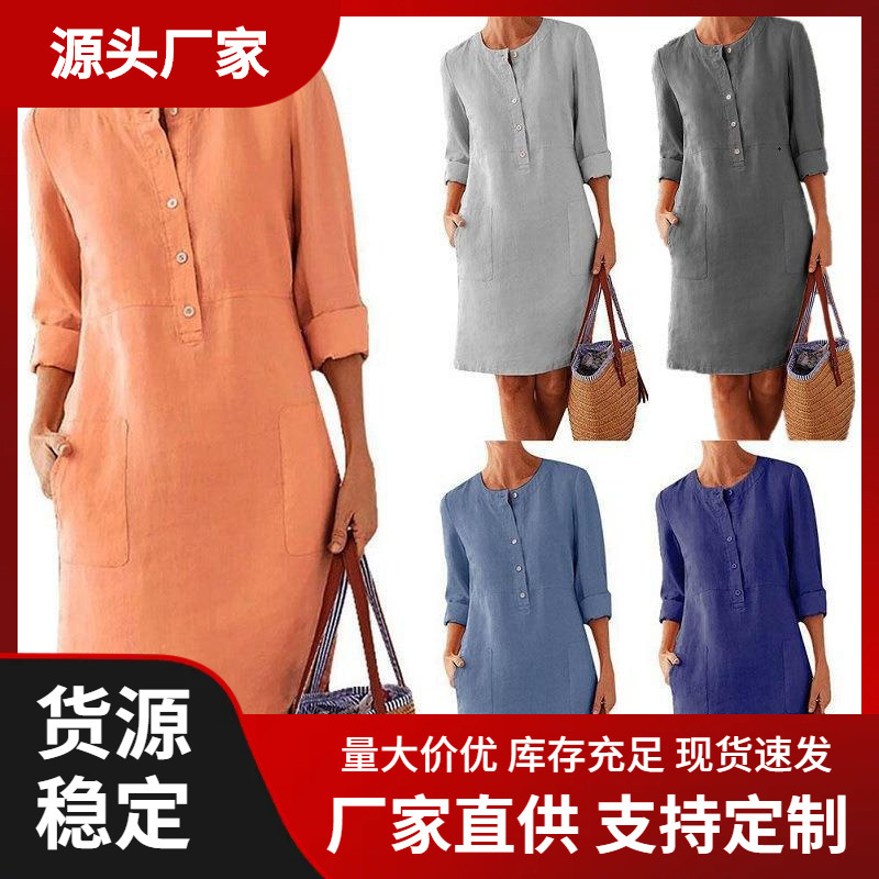 2026년 신상 대형 사이즈 면마 라운드넥 긴팔 원피스, 새로운 중국풍 내의스토어 가기