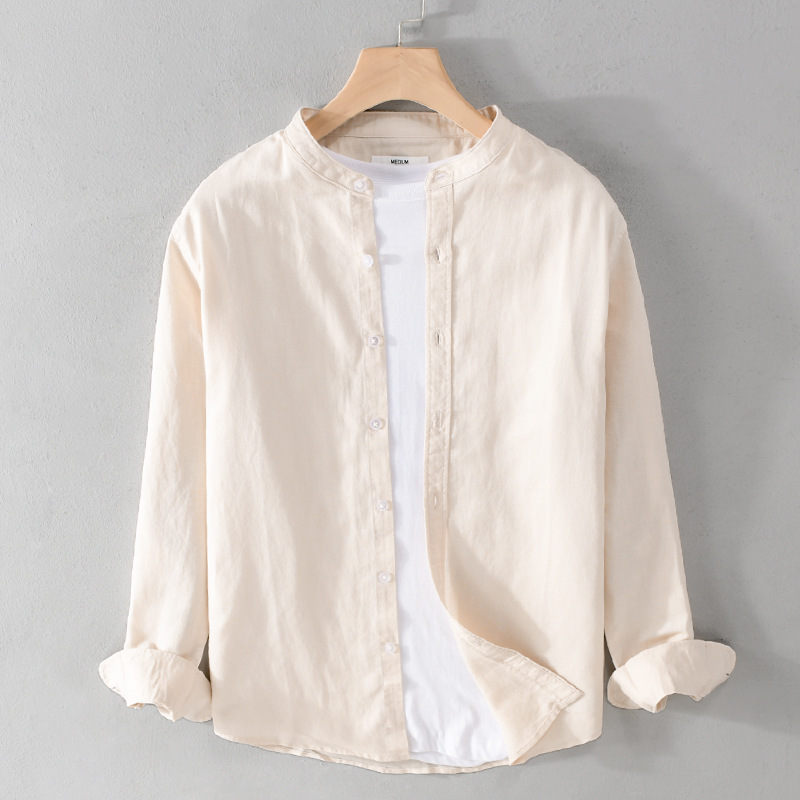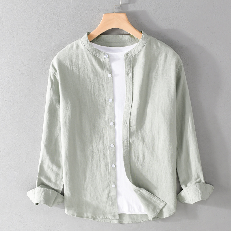 9207 봄과 여름 편안한 통기성 남성 캐주얼 긴팔 면 린넨 셔츠 작은 스탠드 칼라 청소년 린넨 예술적 셔츠스토어 가기