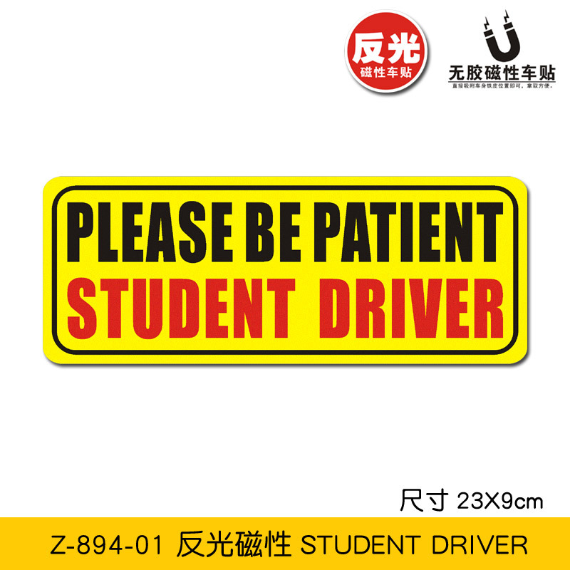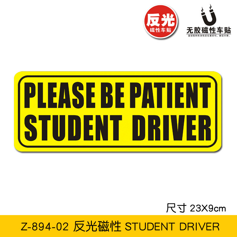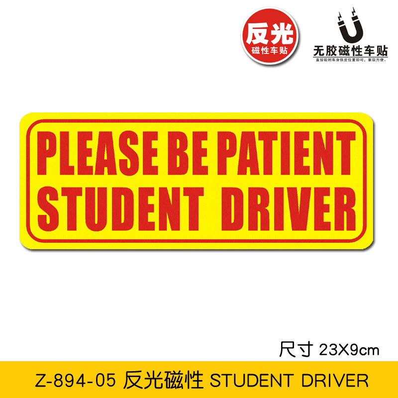 반사형 학생 운전초보자 자석 경고 자동차 스티커 인내심을 가지세요 학생 운전자 차체용
