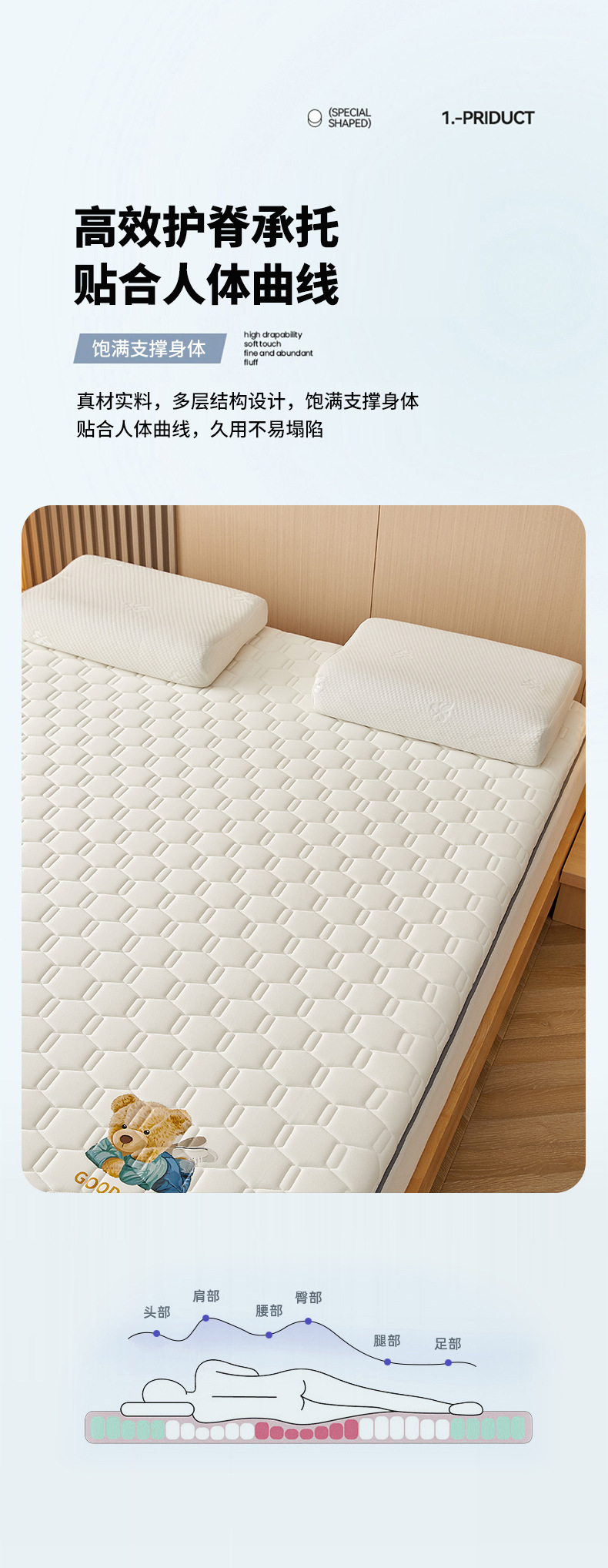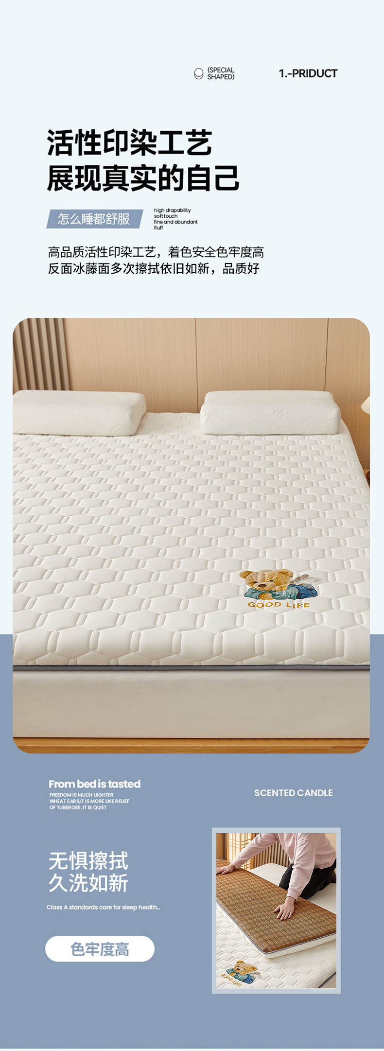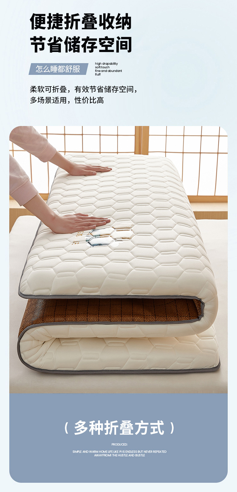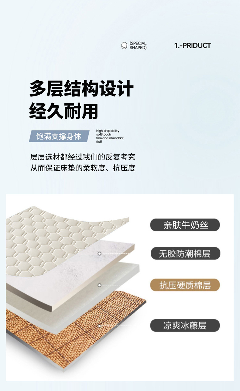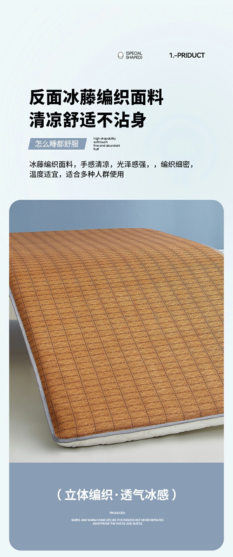 • 90x 190cm-학생 기숙사 [A 사이드 아이스 라탄 + B 사이드 매트리스 라텍스 충전 통기성 답답하지 않음