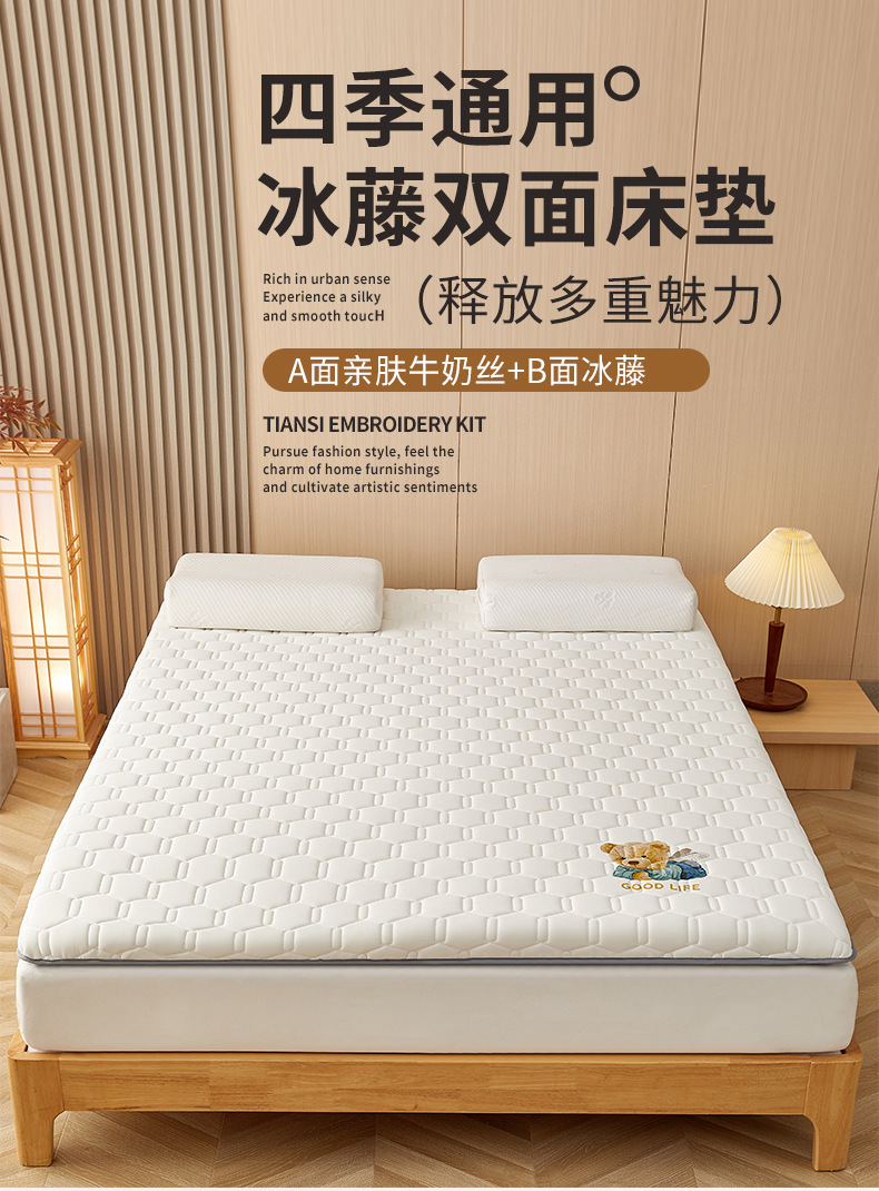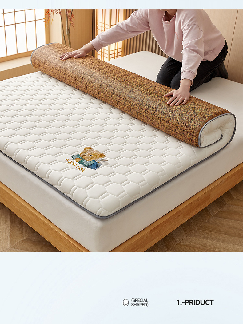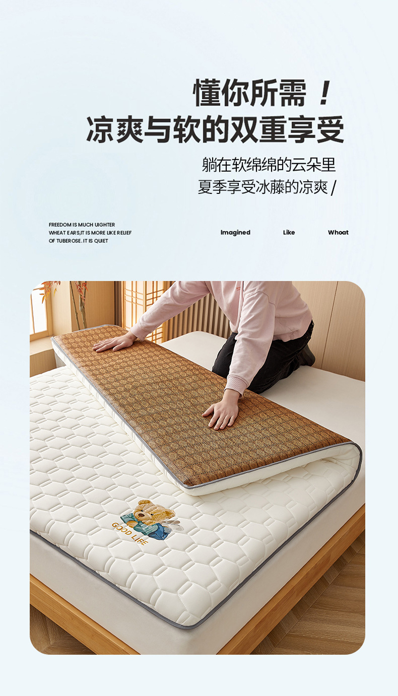 • 90x200cm-학생 기숙사 [A 사이드 아이스 라탄 + B 사이드 매트리스 라텍스 충전 통기성 답답하지 않음