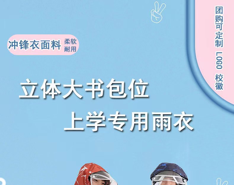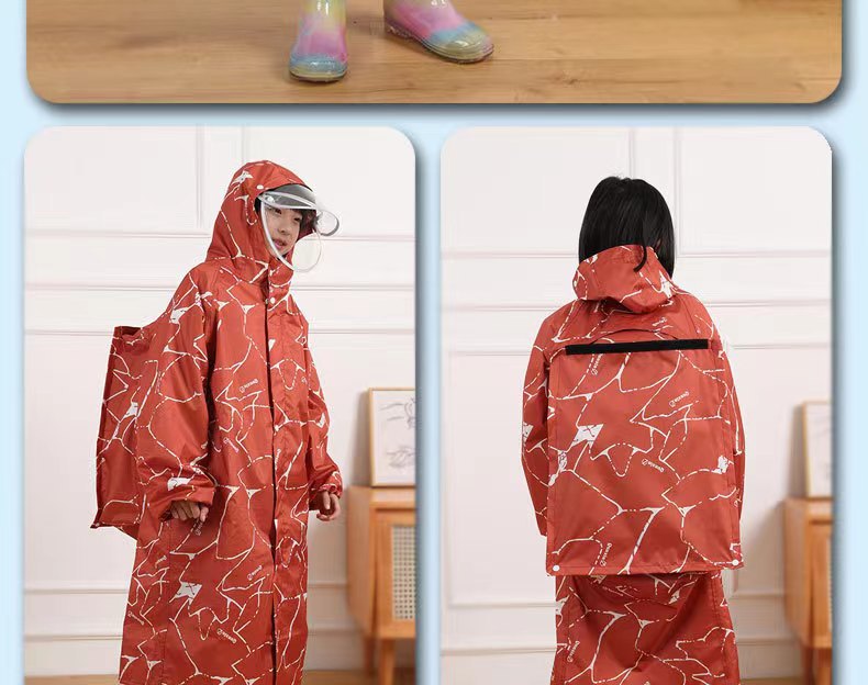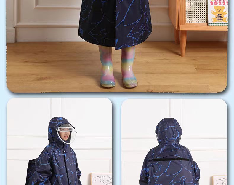 남성용 및 여성용 중고생 용 3 차원 책가방이있는 긴 아동용 비옷 어린이를위한 판초 분리 가능한 이중 챙스토어 가기
