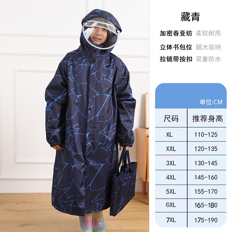 남성용 및 여성용 중고생 용 3 차원 책가방이있는 긴 아동용 비옷 어린이를위한 판초 분리 가능한 이중 챙