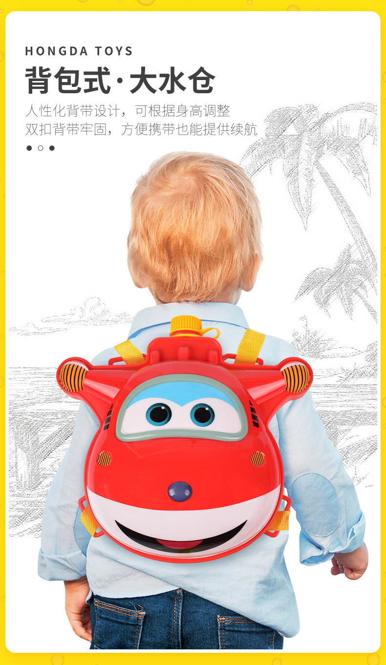 슈퍼 플라잉 전기 물 스프레이 건 충전 배낭 장난감 어린이 르 디 백 보안관 야외 작은 사랑 물총