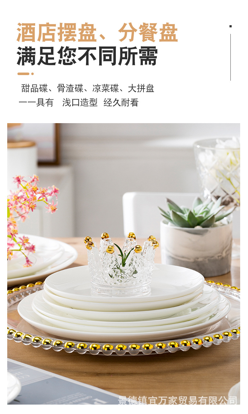 경덕진 본차이나 접시 원형 달빛 접시 양식 접시 본차이나 접시 호텔 도자기 접시 비즈니스 선물용 식기