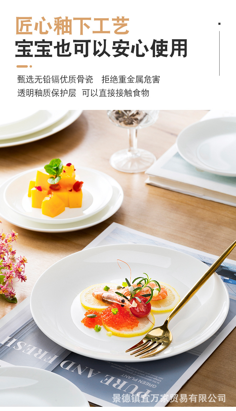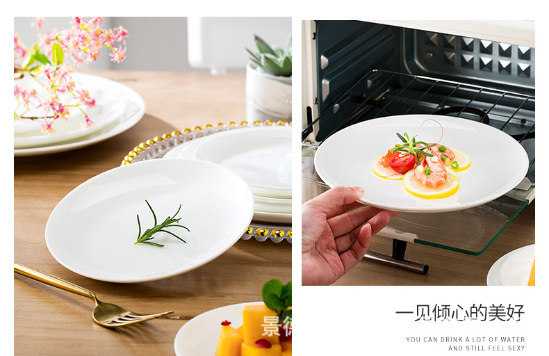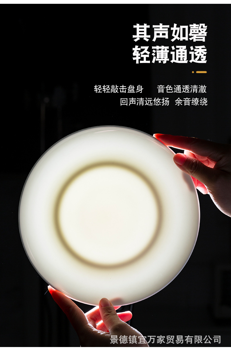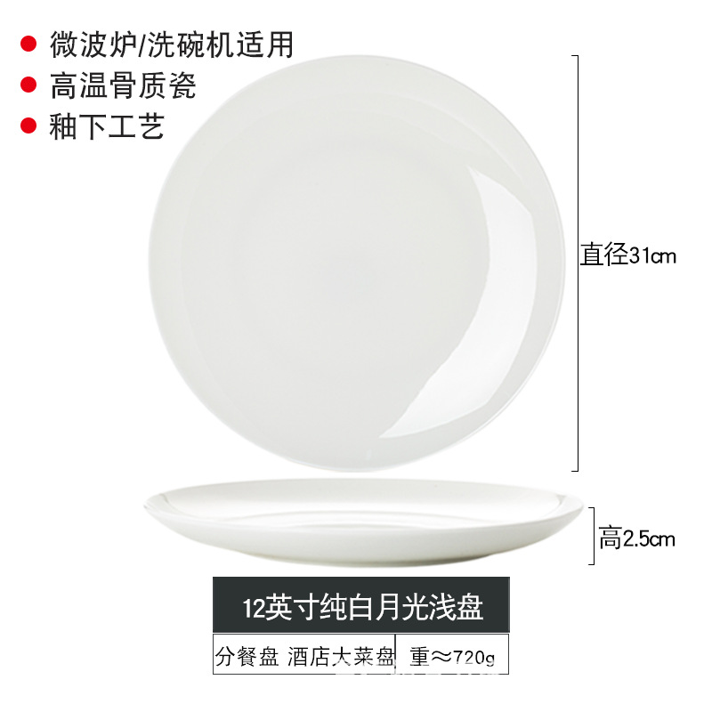 경덕진 본차이나 접시 원형 달빛 접시 양식 접시 본차이나 접시 호텔 도자기 접시 비즈니스 선물용 식기스토어 가기