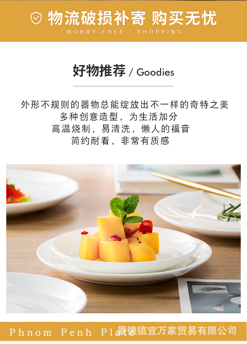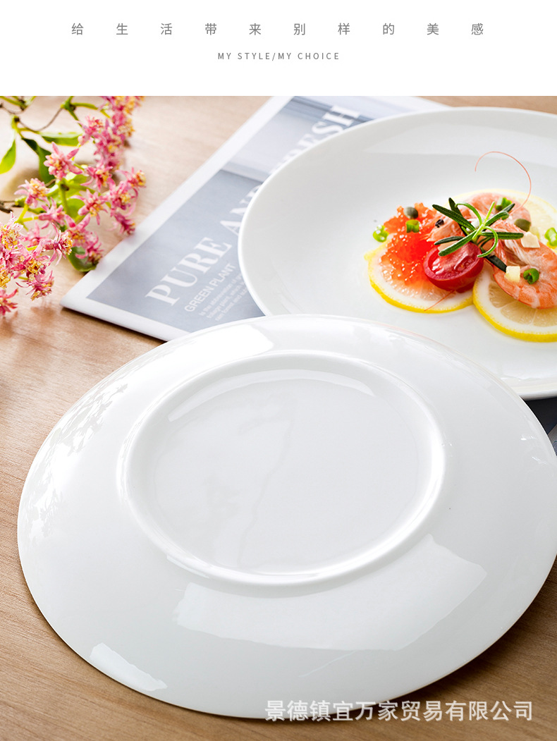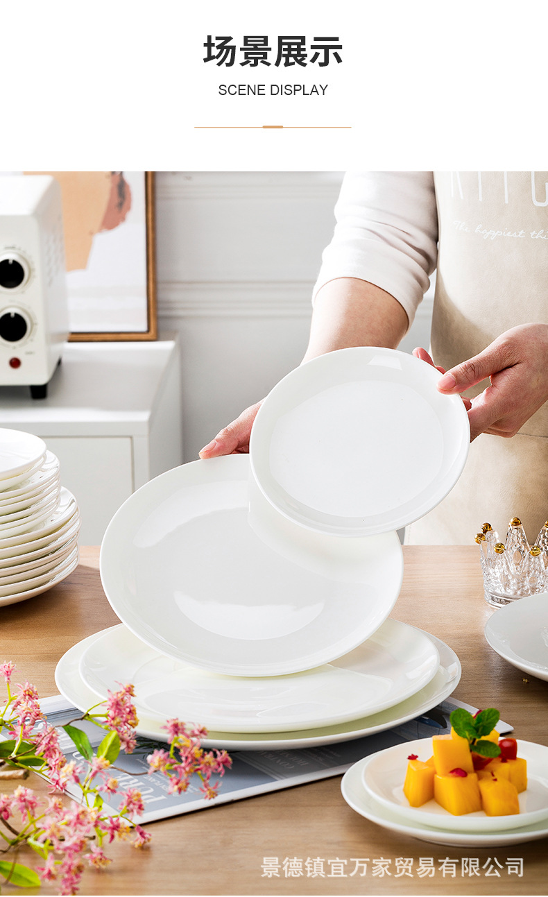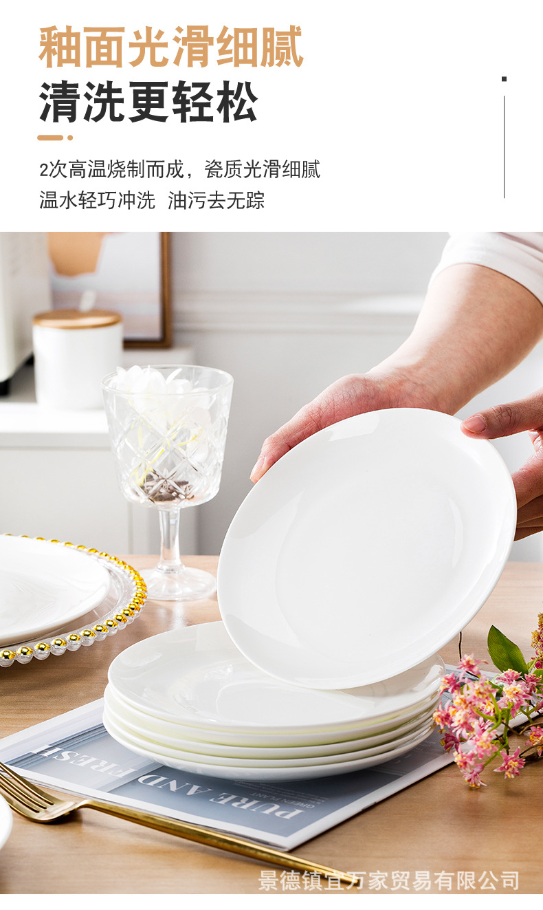 경덕진 본차이나 접시 원형 달빛 접시 양식 접시 본차이나 접시 호텔 도자기 접시 비즈니스 선물용 식기스토어 가기