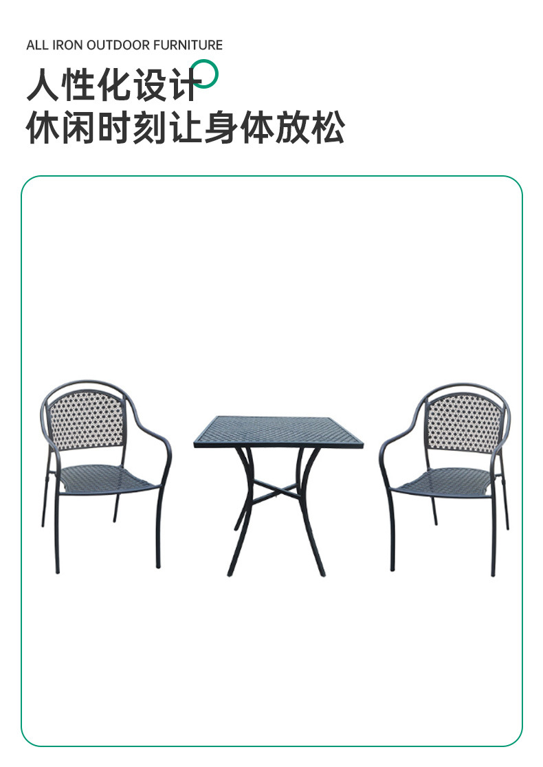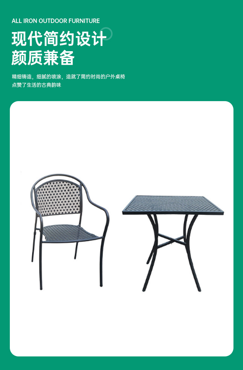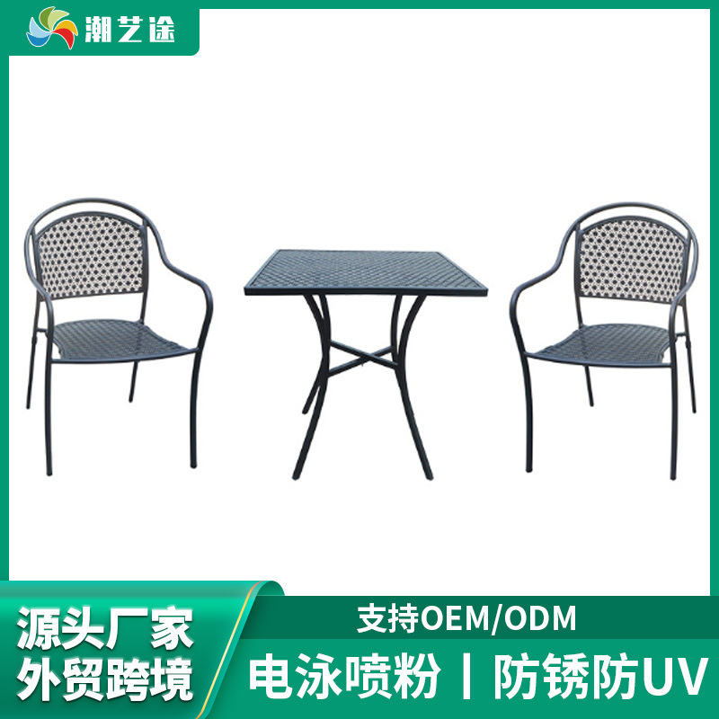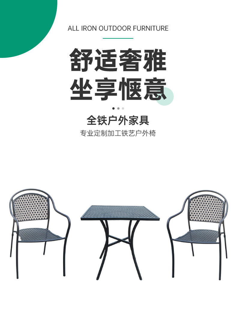 공장 재고 안뜰 북유럽 발코니 철 야외 테이블과 의자 조합 레저 커피 숍 정원 팔걸이 식당 의자
