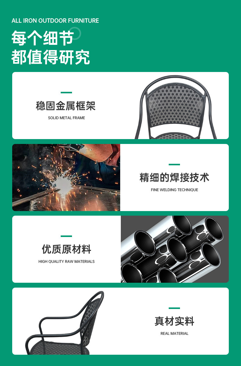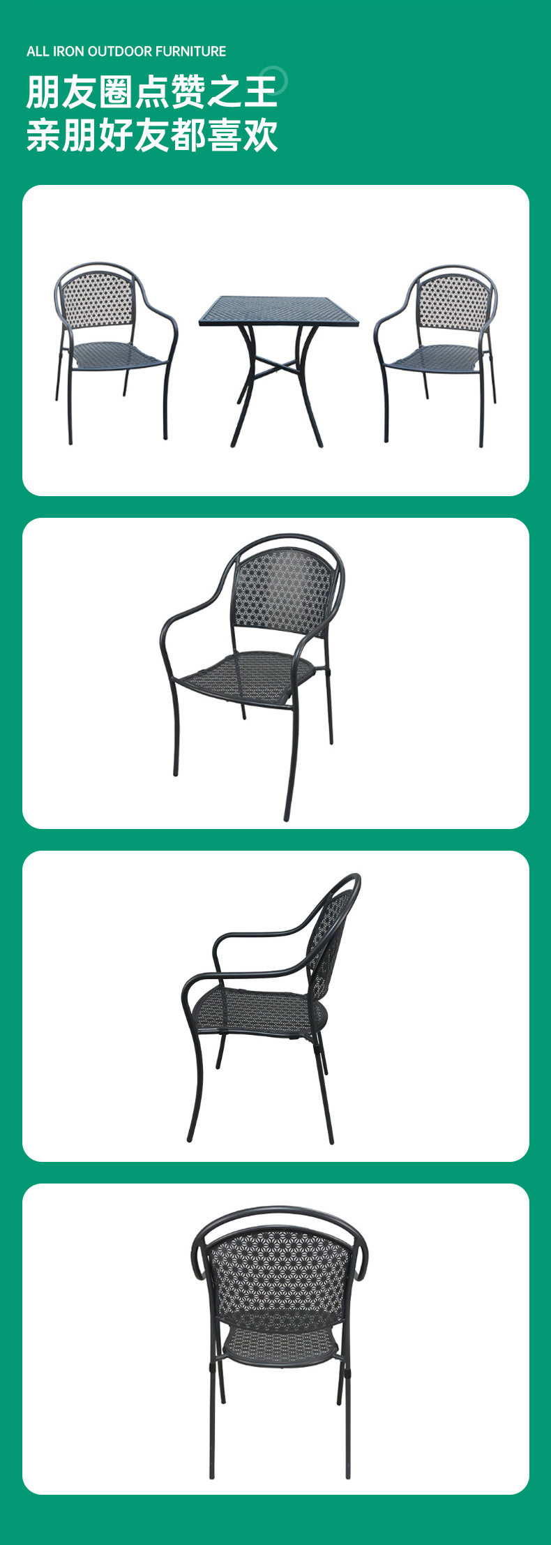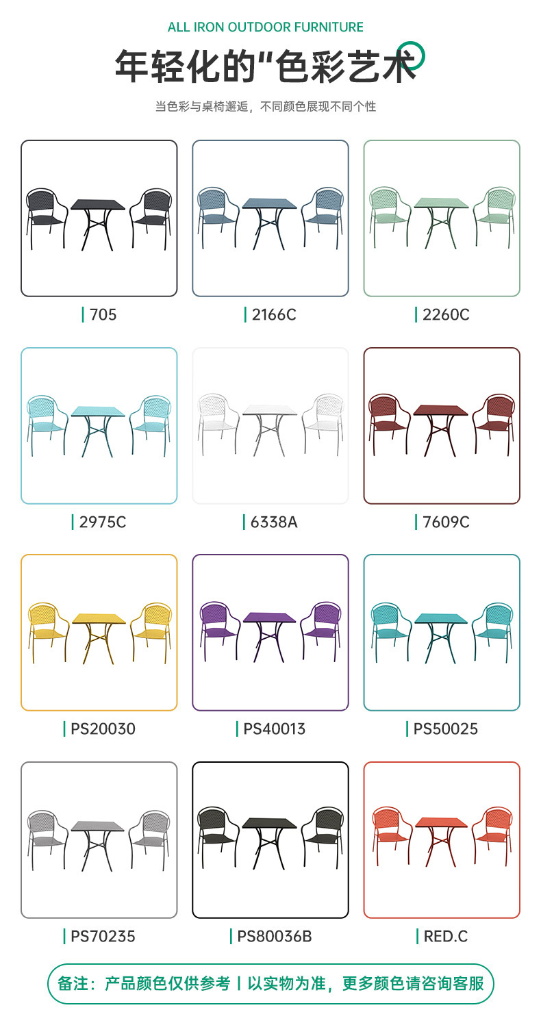 공장 재고 안뜰 북유럽 발코니 철 야외 테이블과 의자 조합 레저 커피 숍 정원 팔걸이 식당 의자