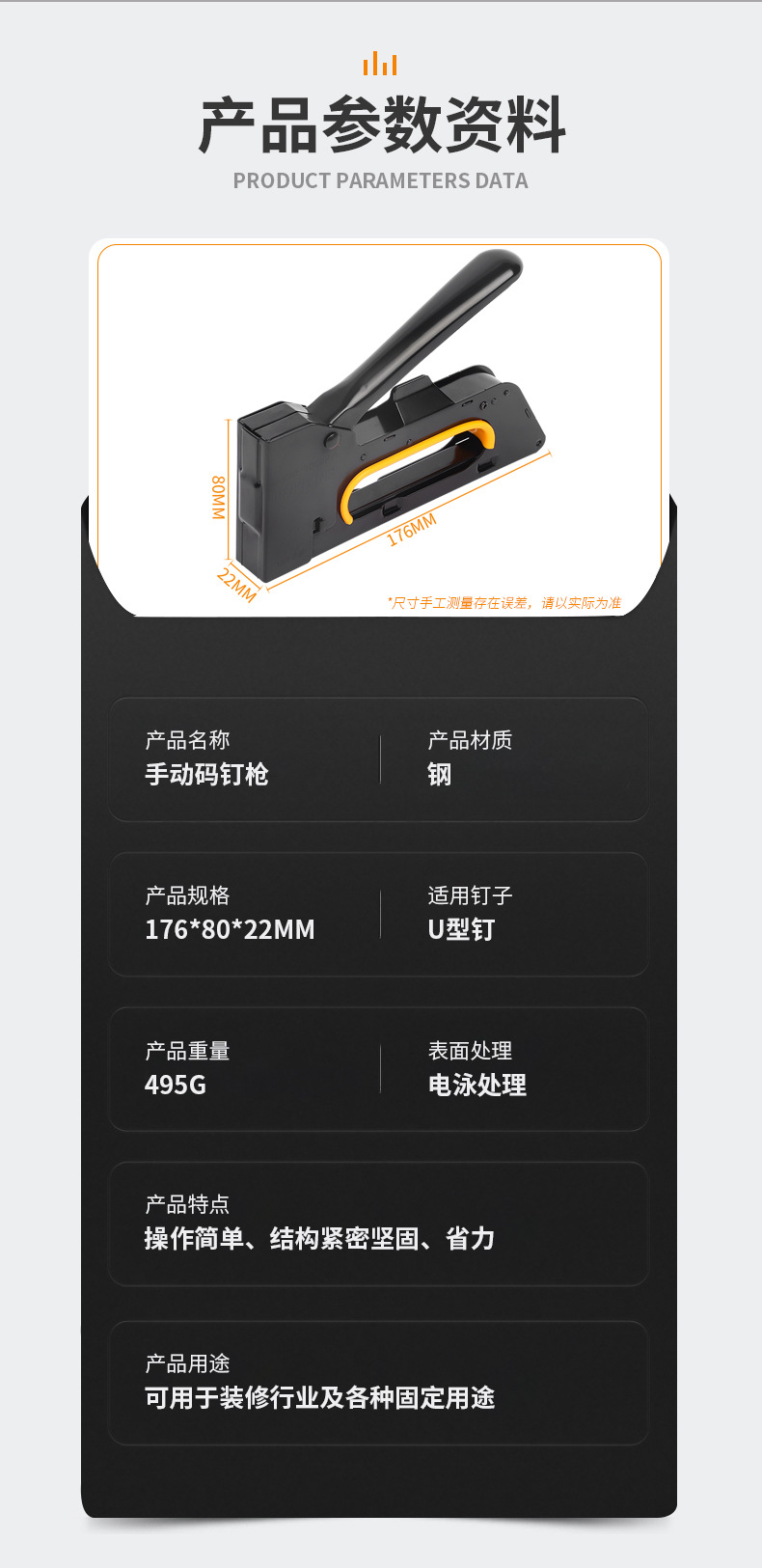 검은 수동 네일 건 코드 네일 건 U 자형 네일 건 캔버스 광고 네일 건 코드 네일 건 가구 국경
