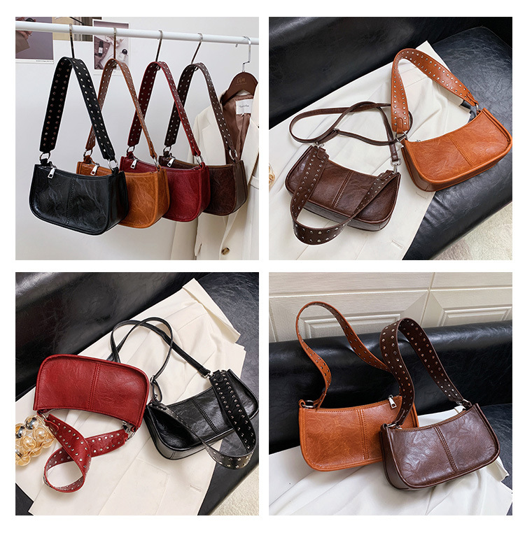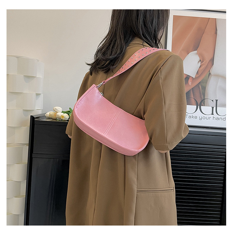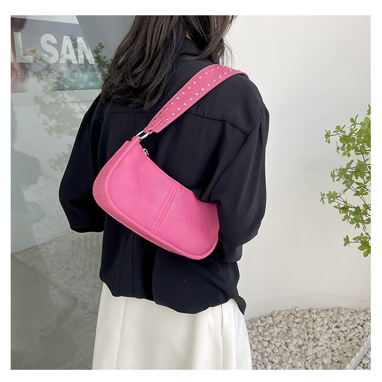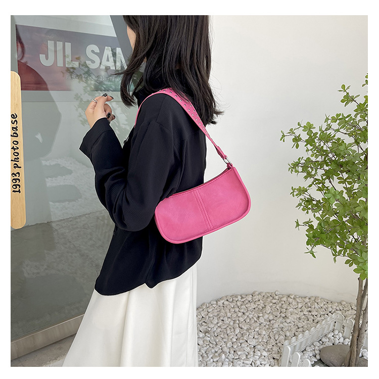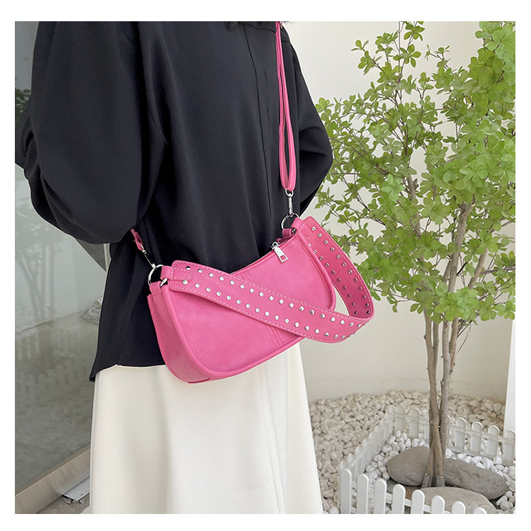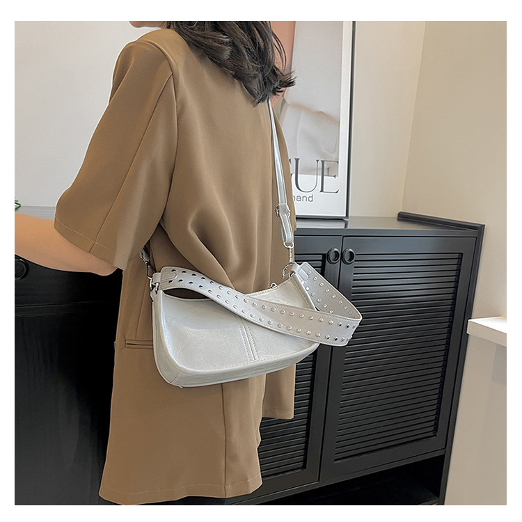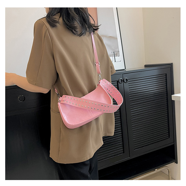패션 리벳 어깨 작은 가방 여성 2025 새로운 간단한 작은 사각형 가방 질감 조수 메신저 가방스토어 가기