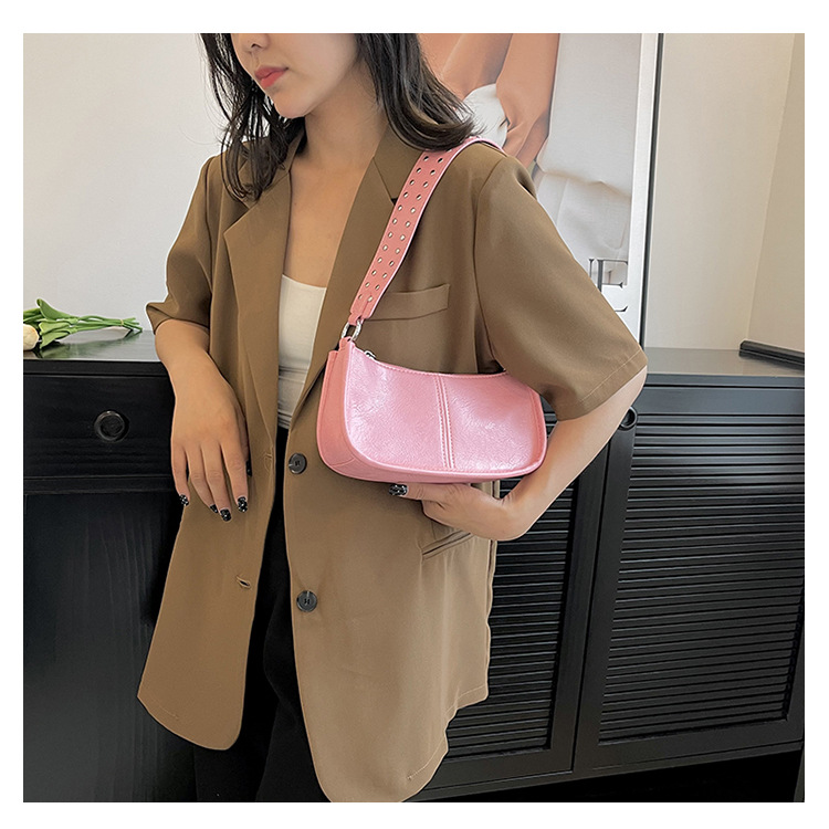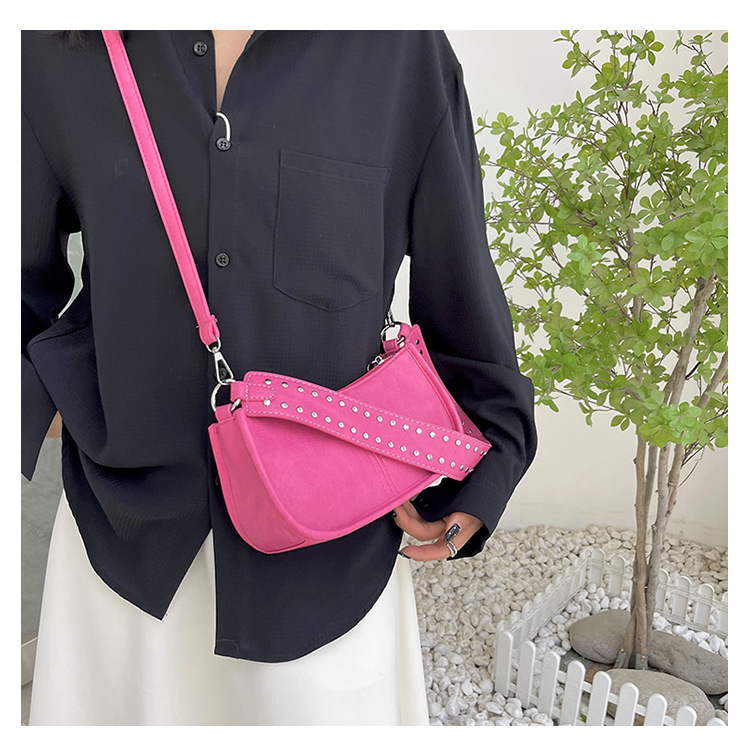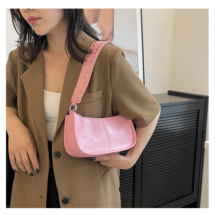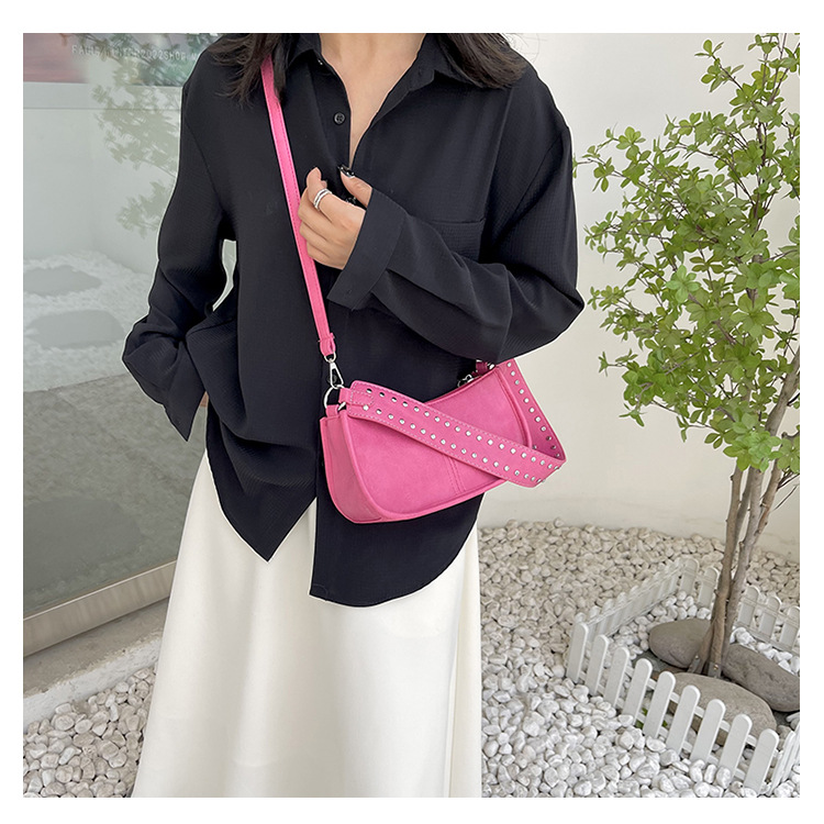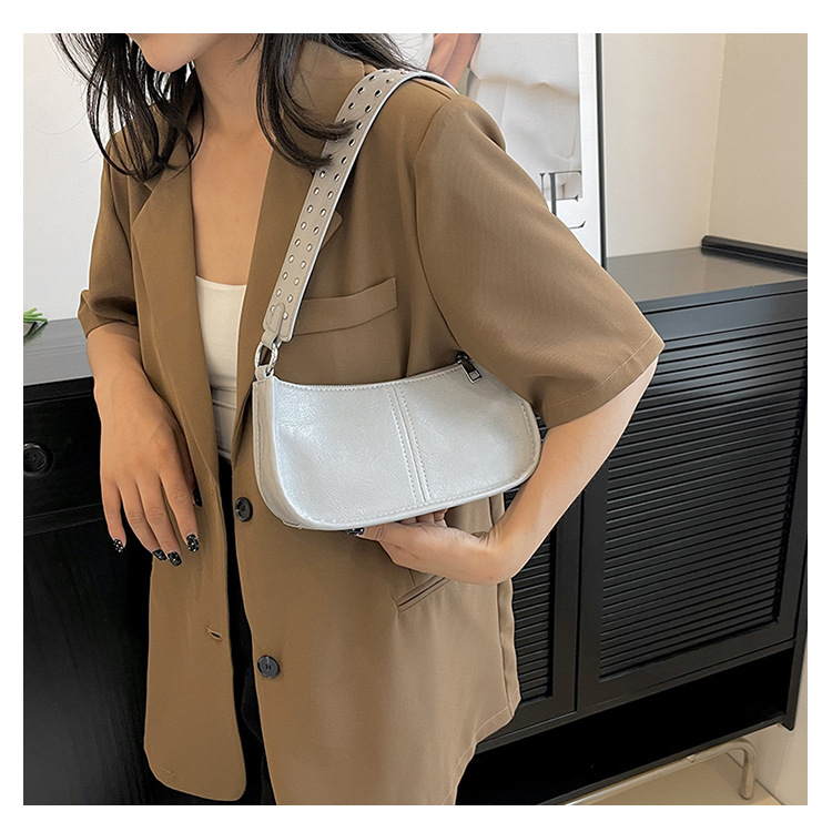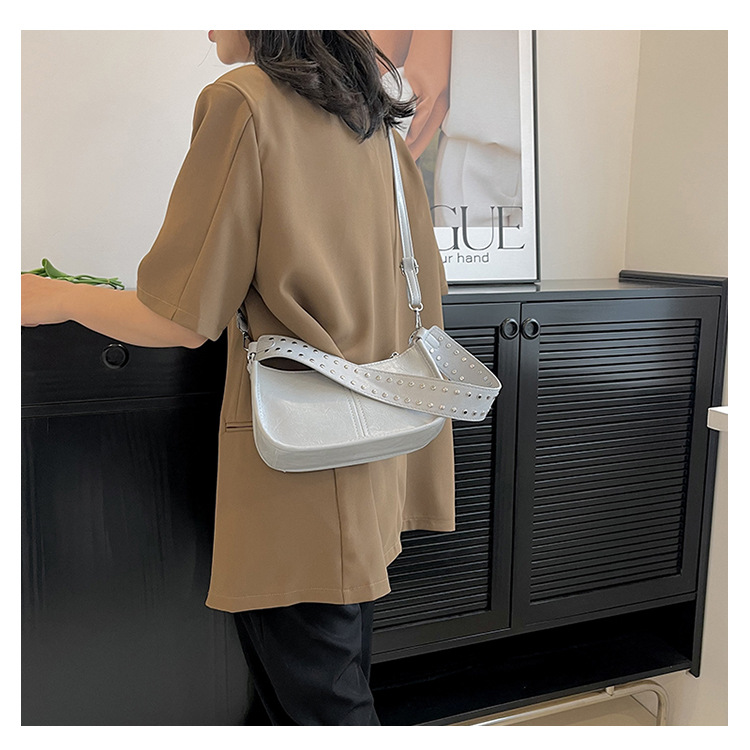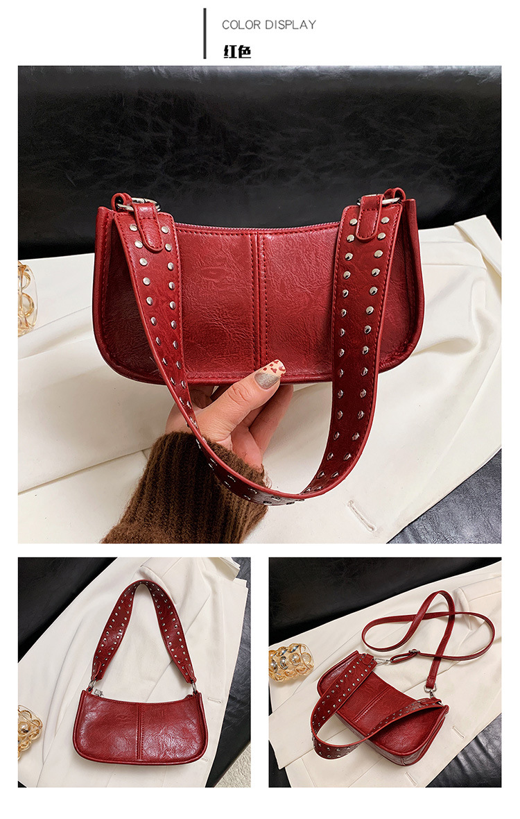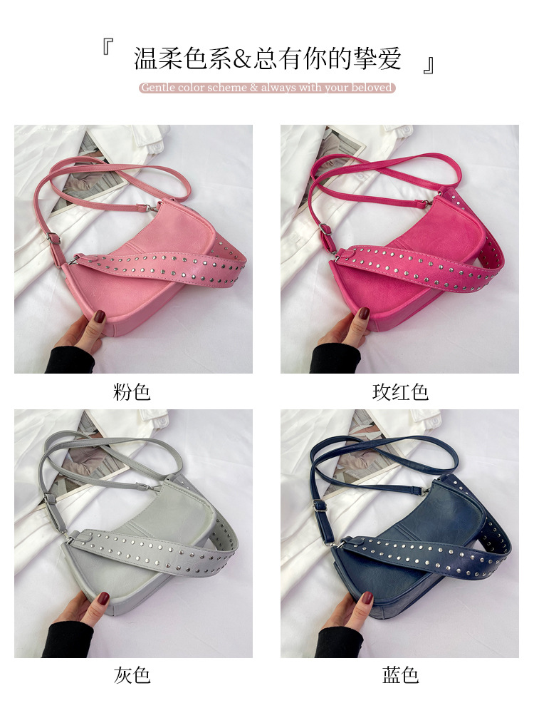 패션 리벳 어깨 작은 가방 여성 2025 새로운 간단한 작은 사각형 가방 질감 조수 메신저 가방