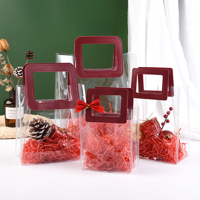재고 인 스타일 pvc 토트 백 투명 손 선물 가방 사탕 웨딩 캔디 드래곤 보트 축제 손 선물 가방 인쇄 가능