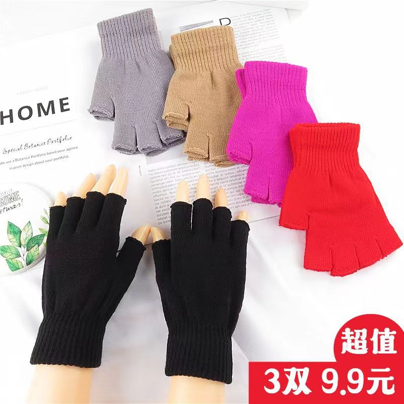 반 손가락 장갑 남자와 여자의 니트 따뜻한 양모 장갑 학생 승마 사무실 게임 패션 만화 손가락스토어 가기