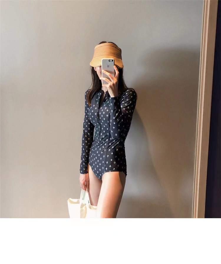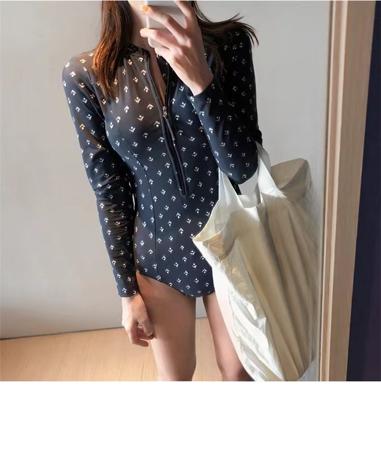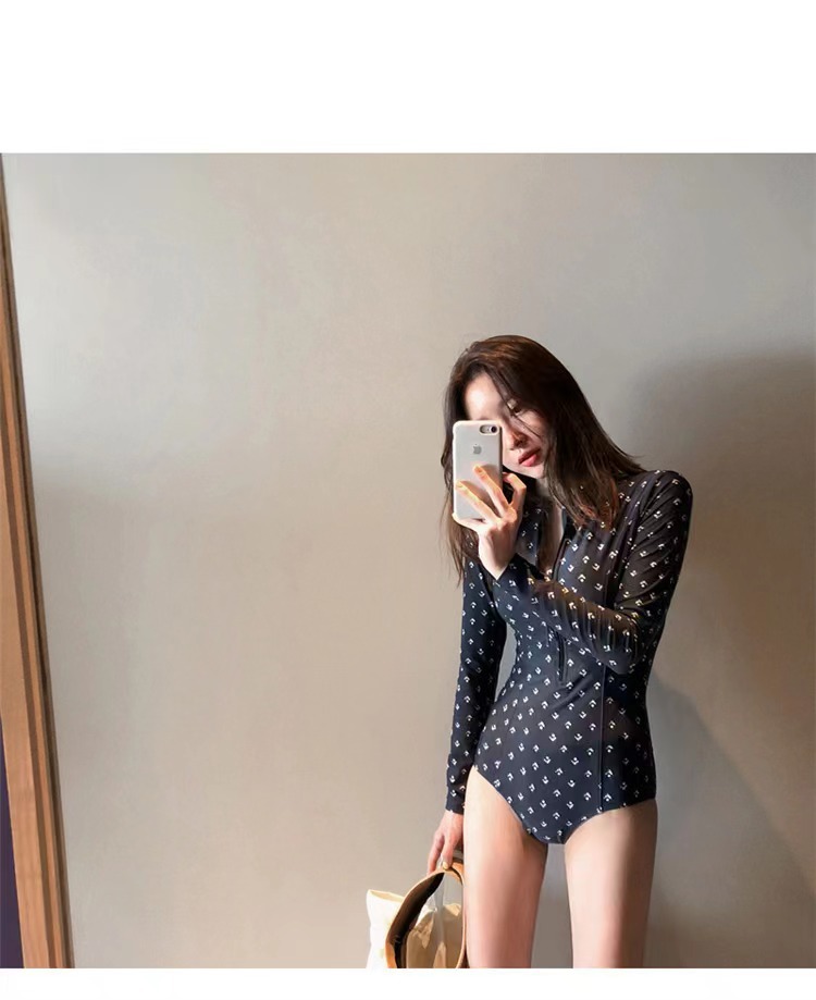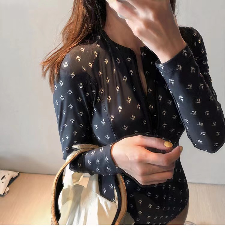 새로운 한국 수영복 여자의 슬리밍 배꼽 취재 섹시한 긴 소매 태양 보호 다이빙 세트 물방울 무늬 스포츠 보수 수영복 재고