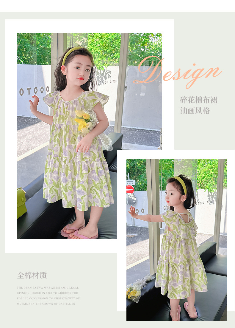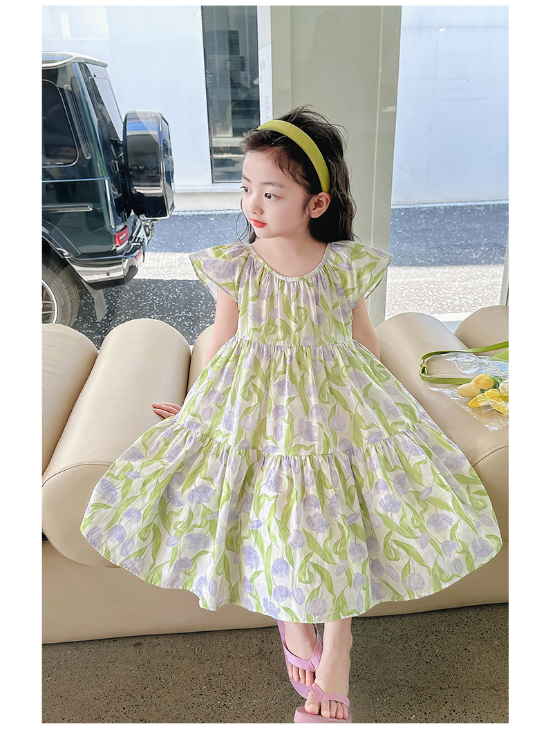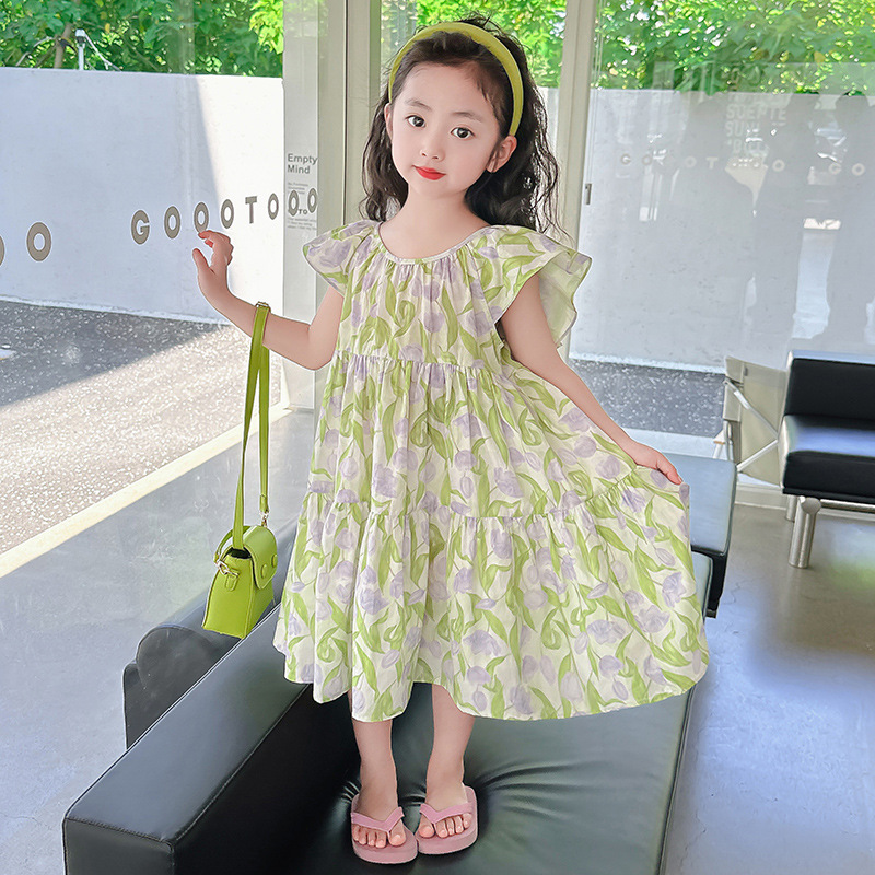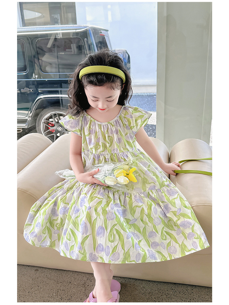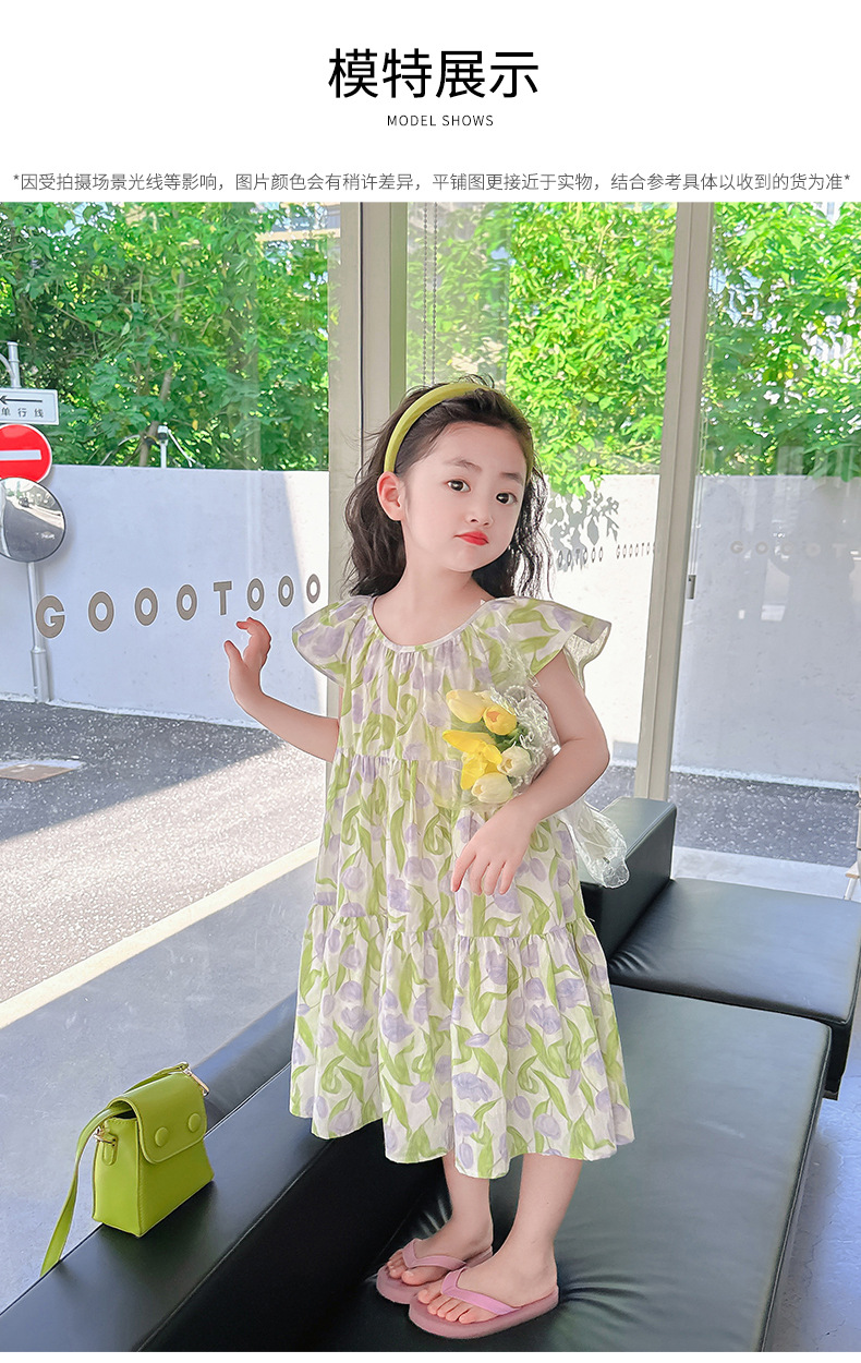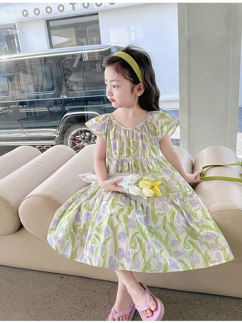 여아 여름 모든 면 로터스 칼라 원피스 순면 꽃 튤립 달콤한 유치원 초등학교 뚱뚱한 공주 원피스스토어 가기
