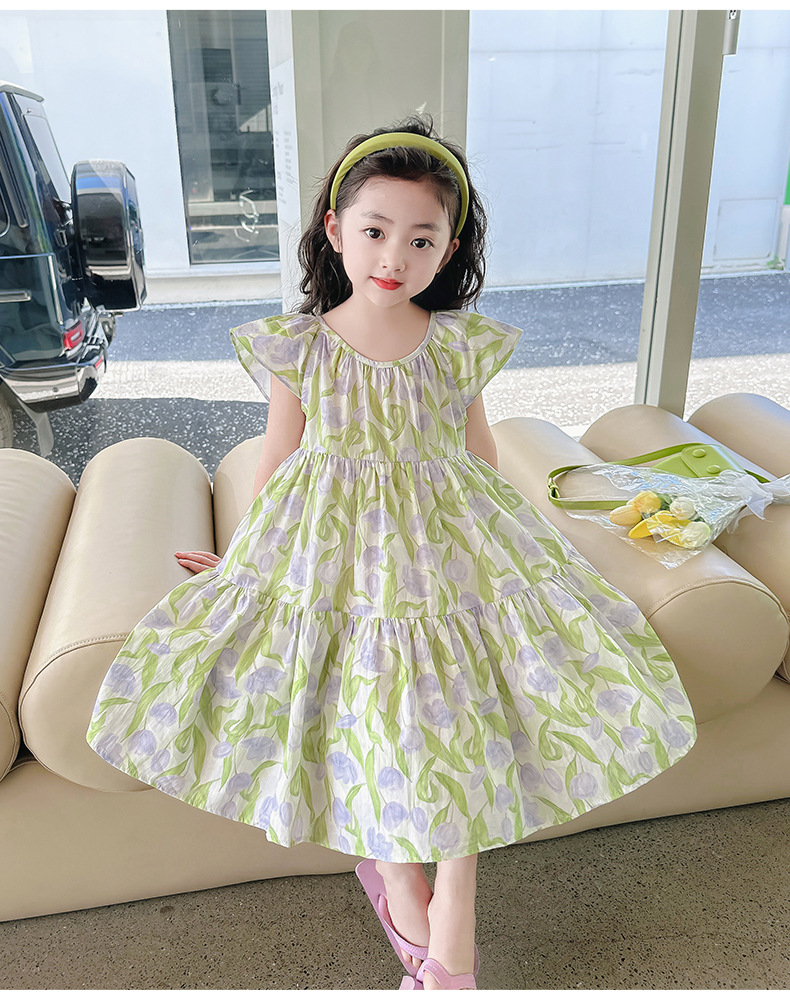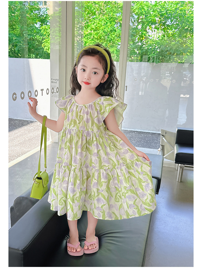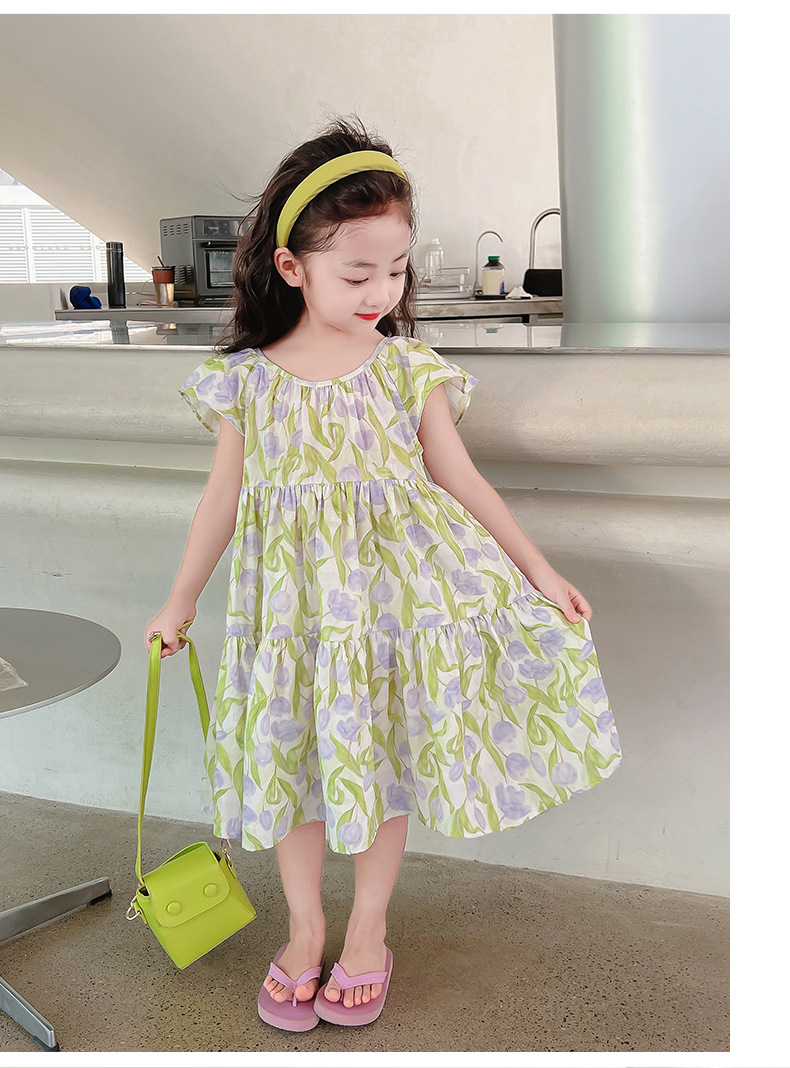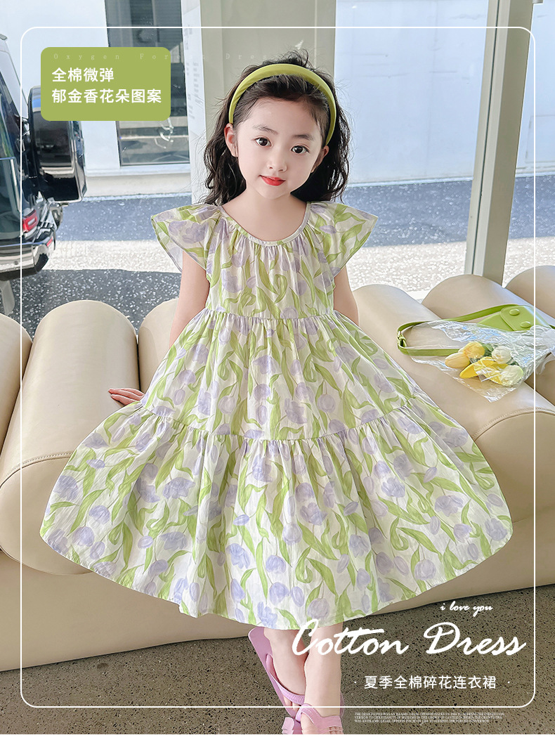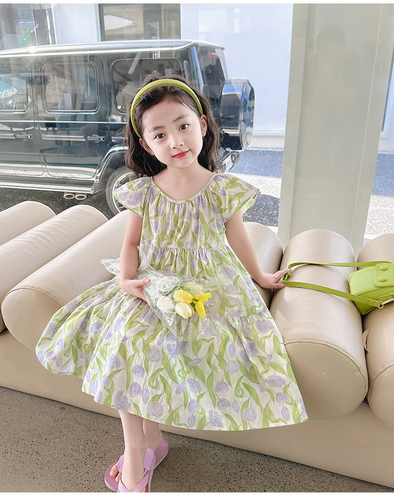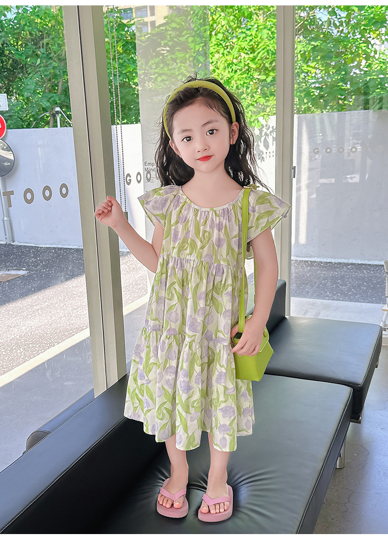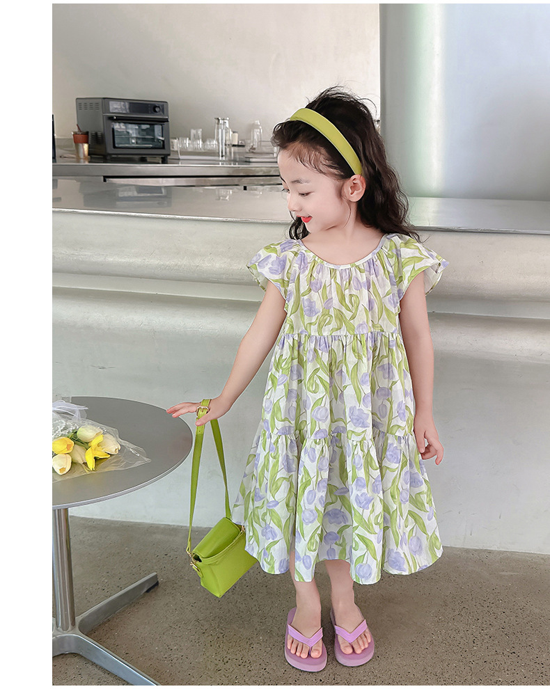 여아 여름 모든 면 로터스 칼라 원피스 순면 꽃 튤립 달콤한 유치원 초등학교 뚱뚱한 공주 원피스스토어 가기