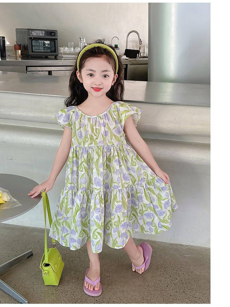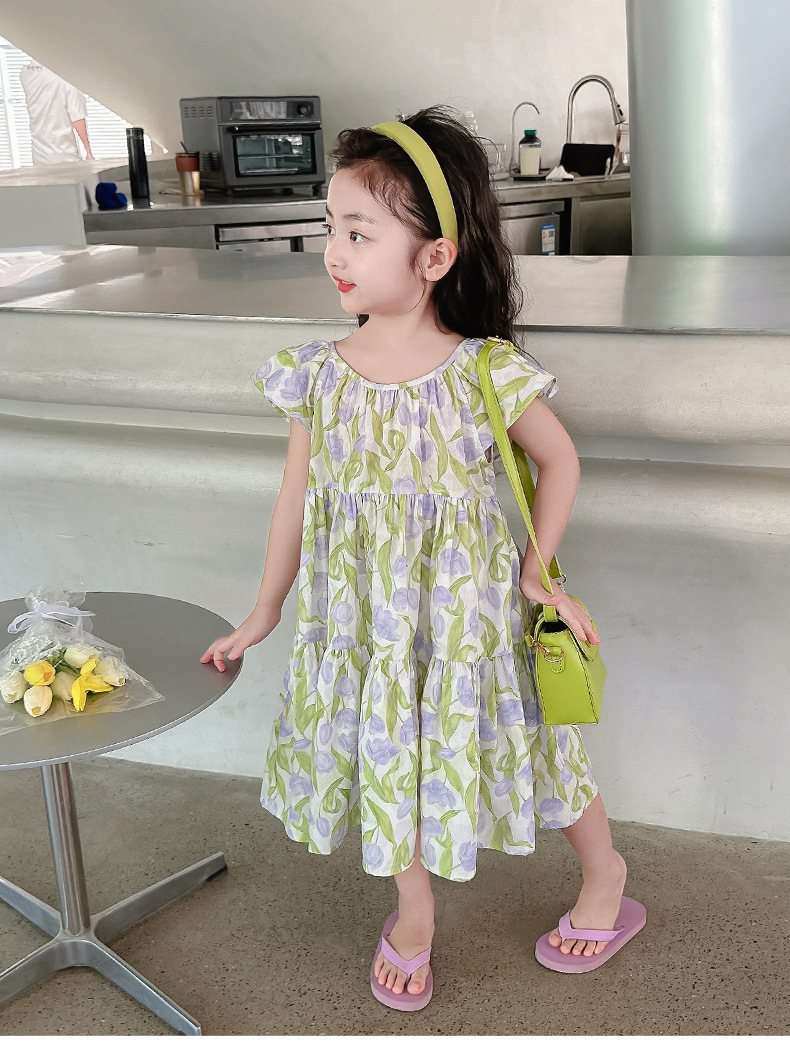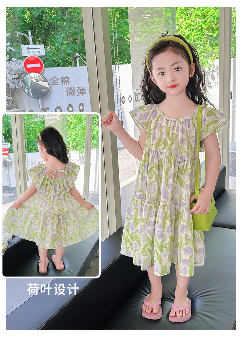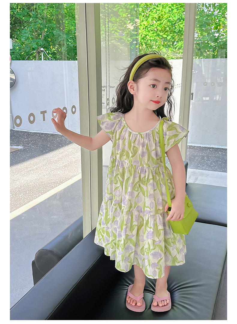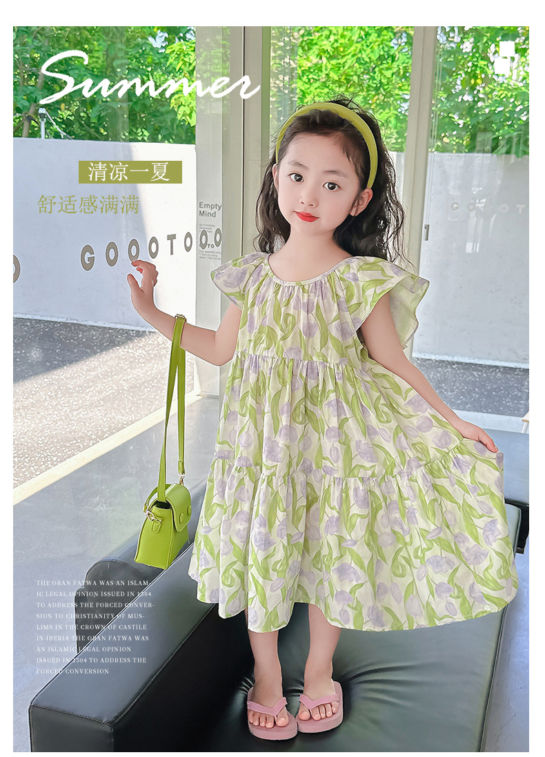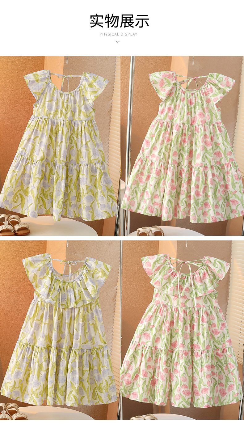 여아 여름 모든 면 로터스 칼라 원피스 순면 꽃 튤립 달콤한 유치원 초등학교 뚱뚱한 공주 원피스스토어 가기