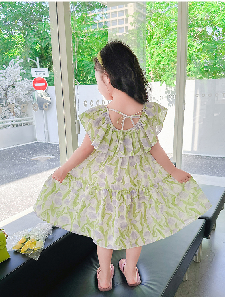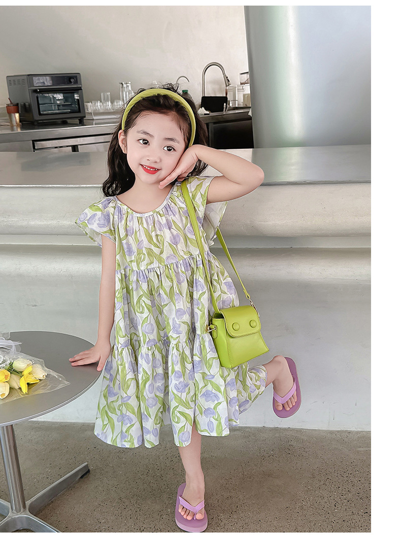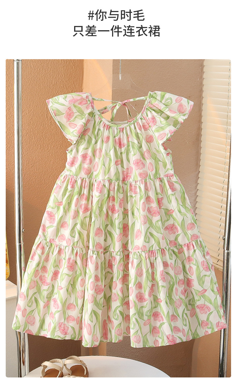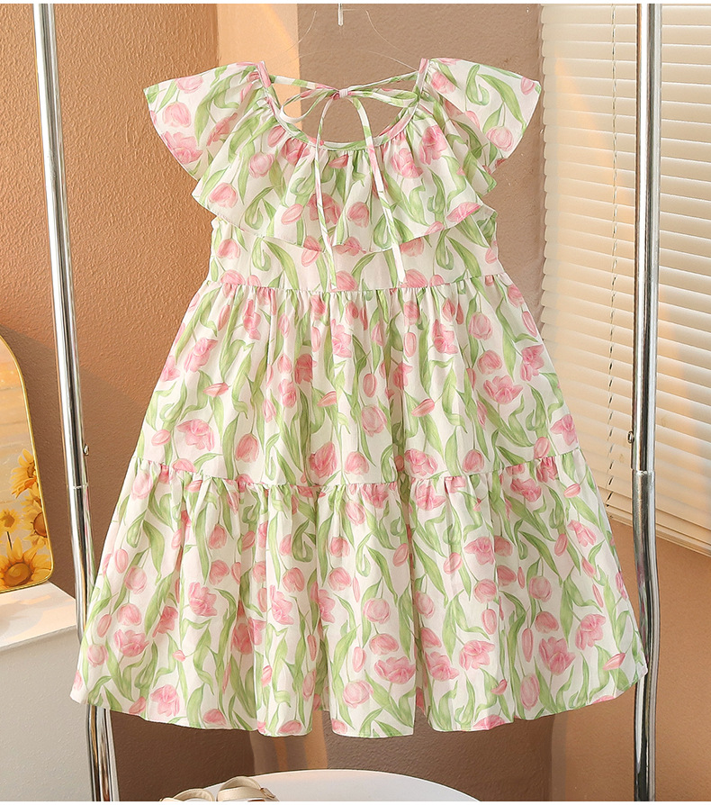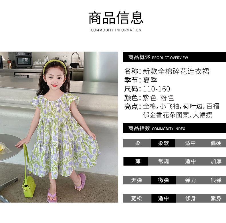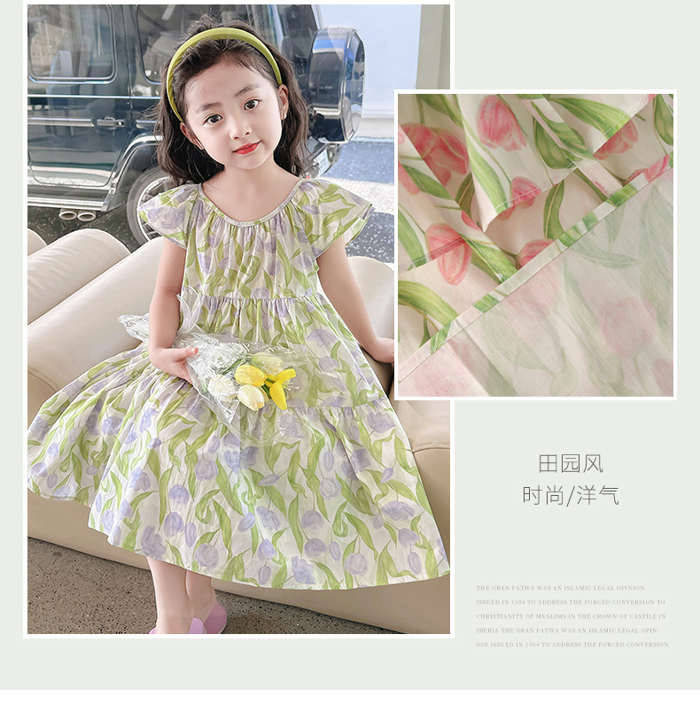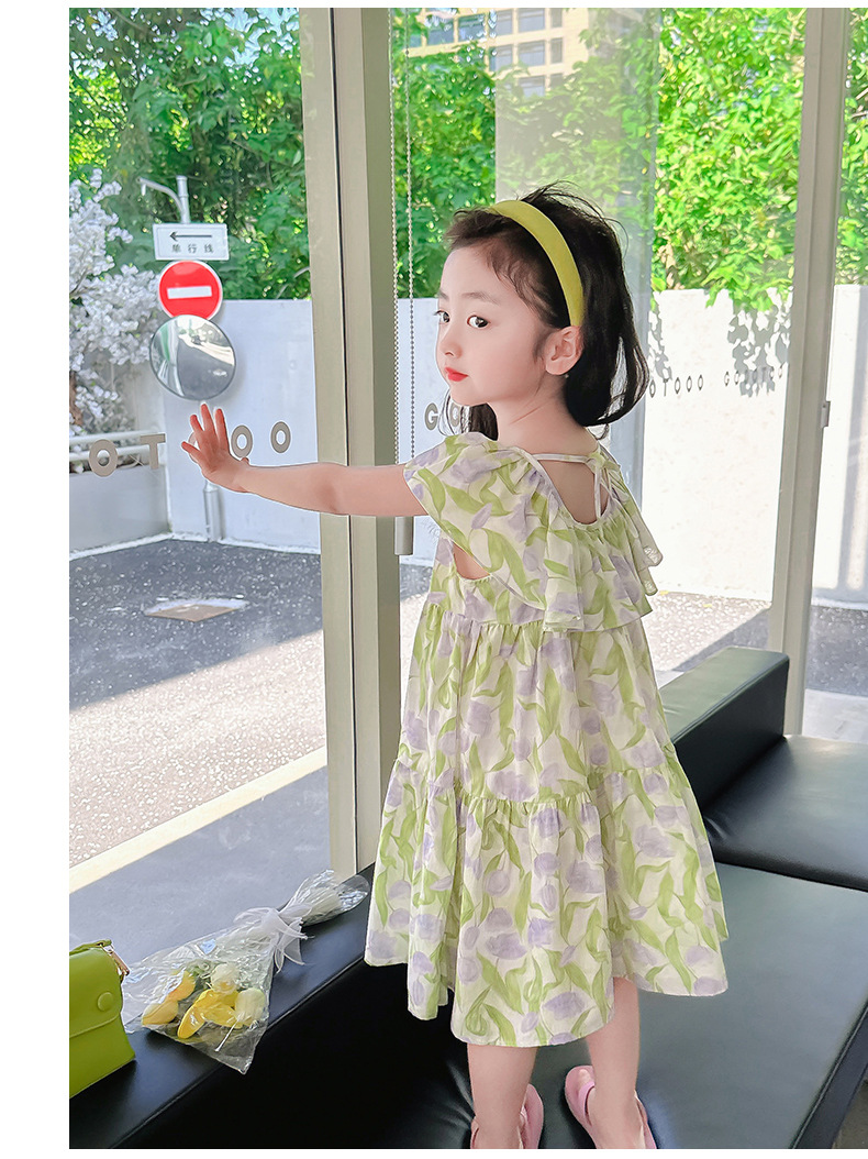 여아 여름 모든 면 로터스 칼라 원피스 순면 꽃 튤립 달콤한 유치원 초등학교 뚱뚱한 공주 원피스스토어 가기