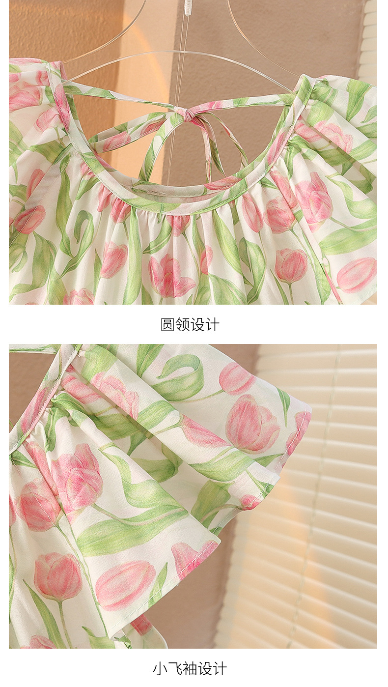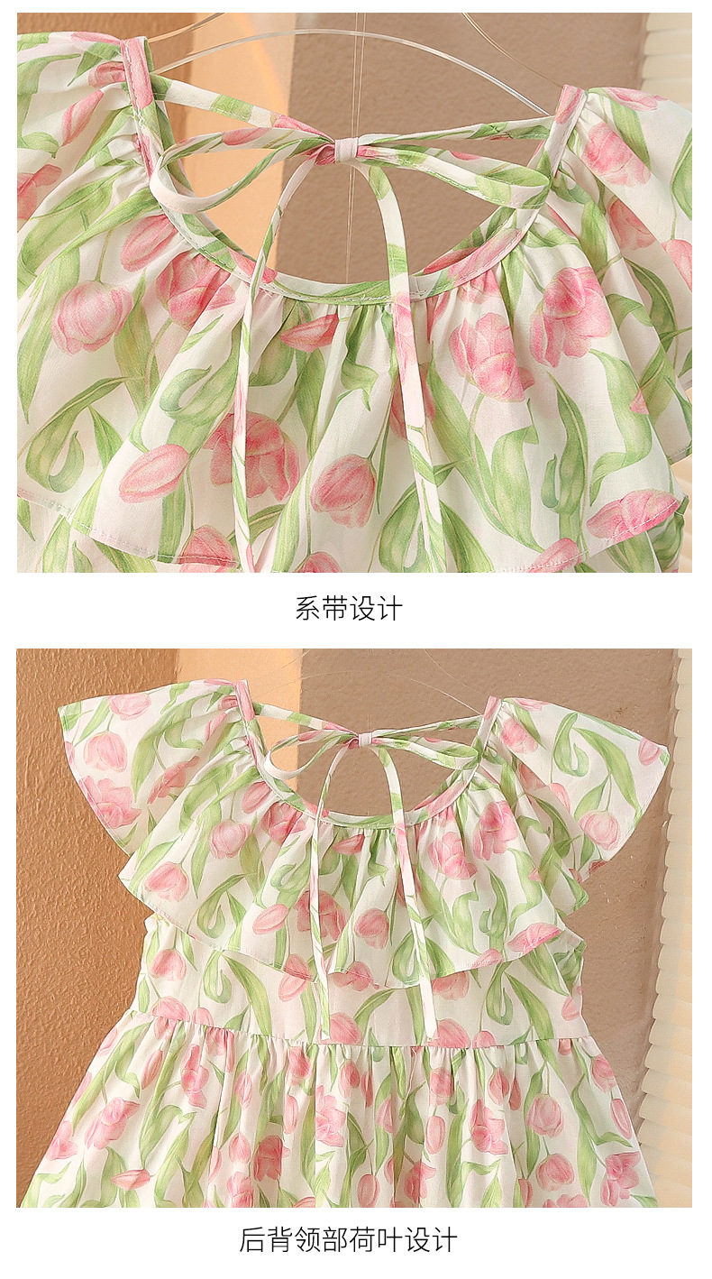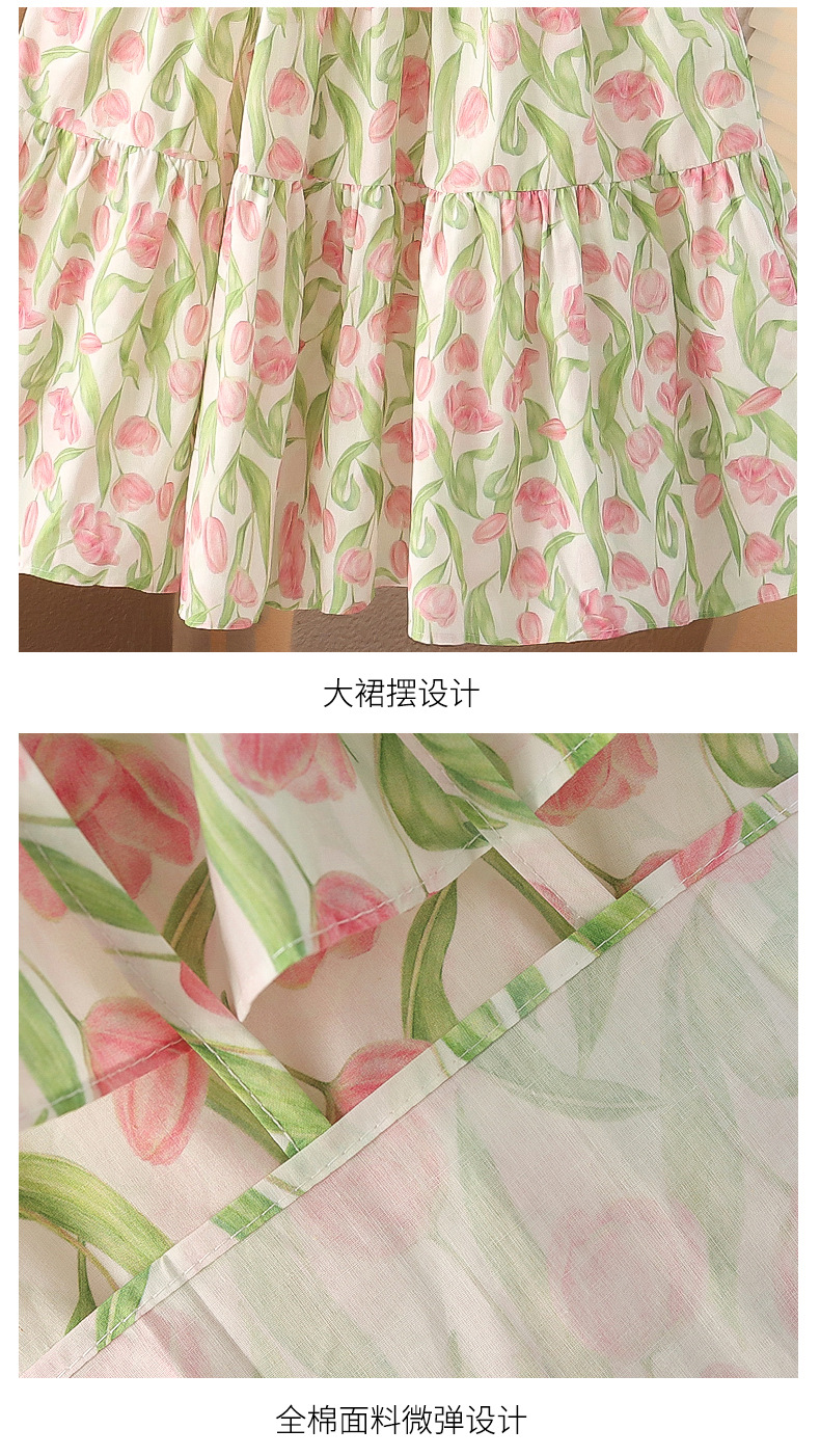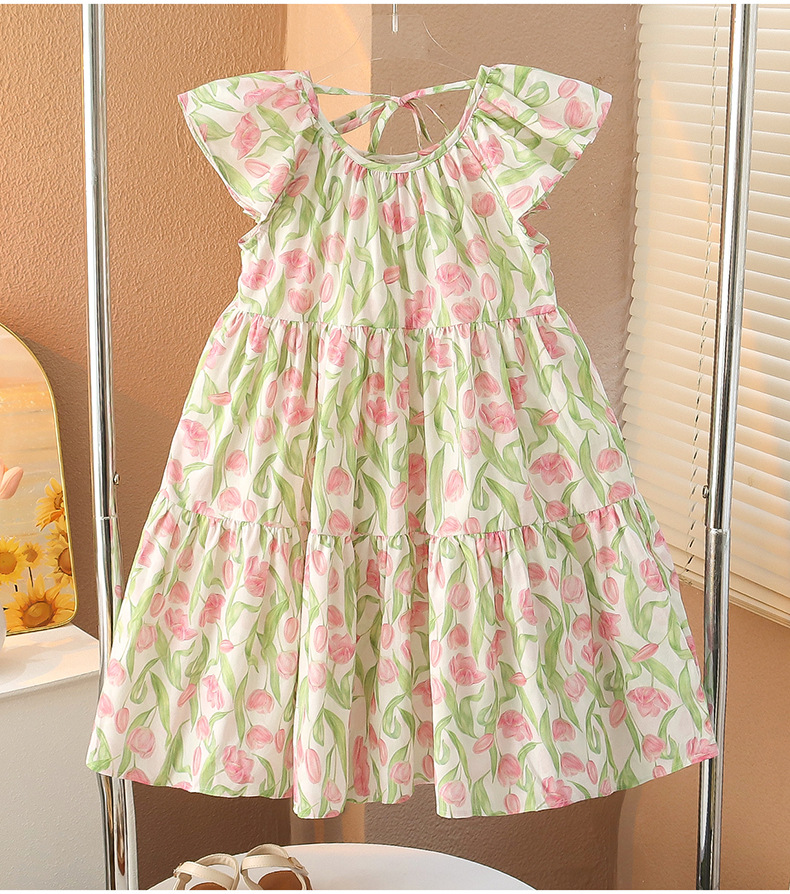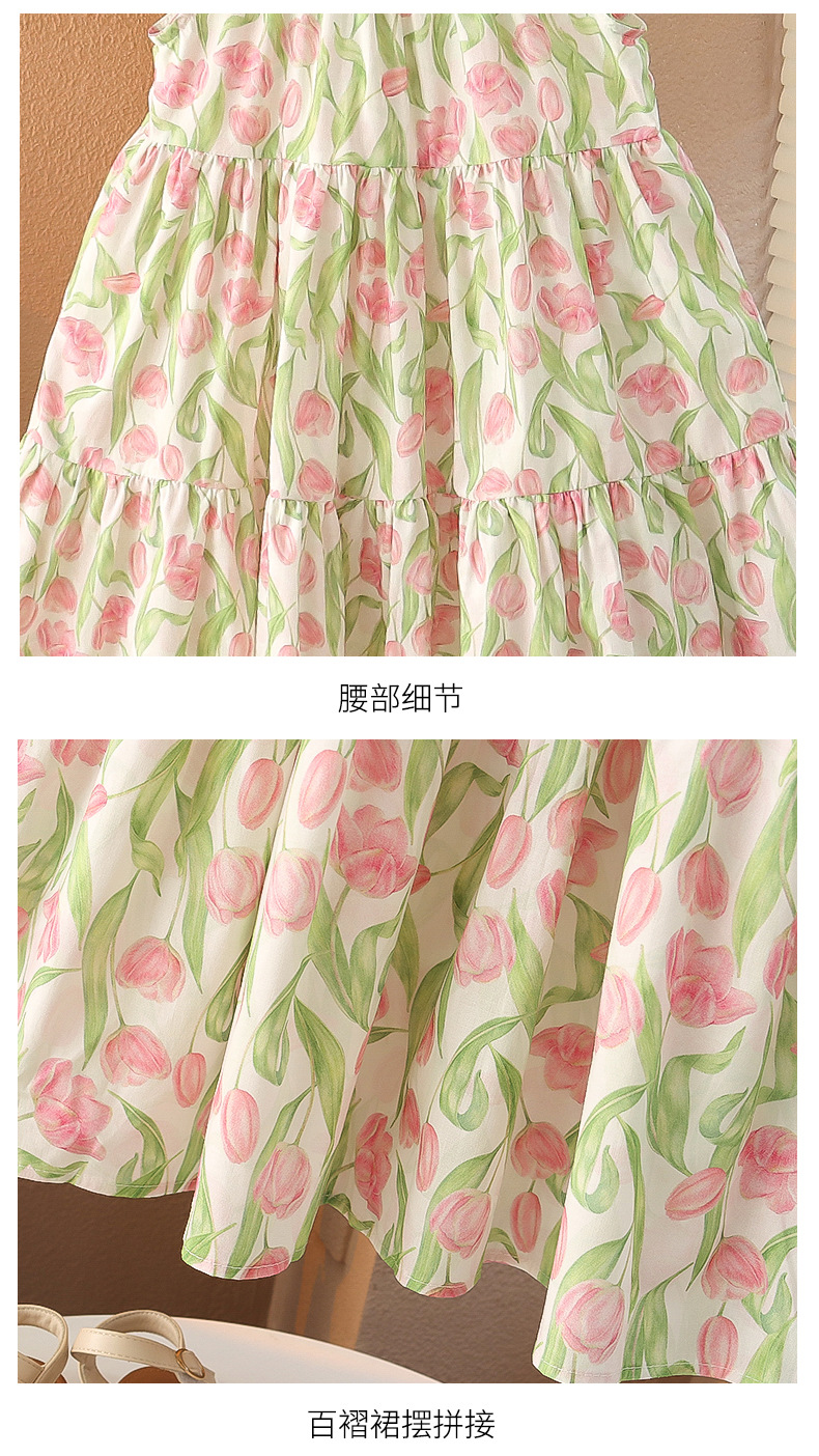 여아 여름 모든 면 로터스 칼라 원피스 순면 꽃 튤립 달콤한 유치원 초등학교 뚱뚱한 공주 원피스스토어 가기