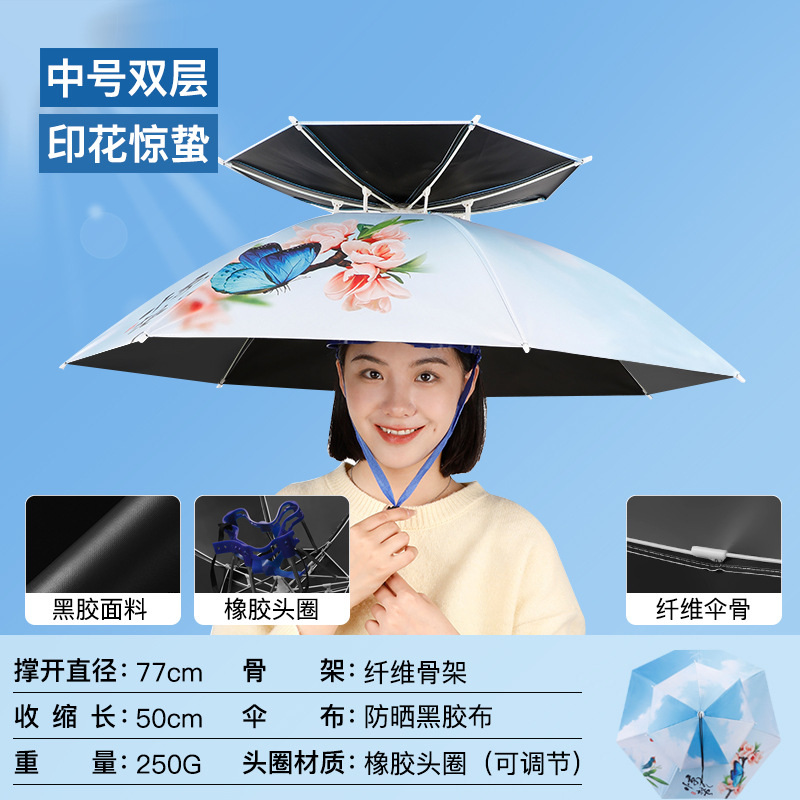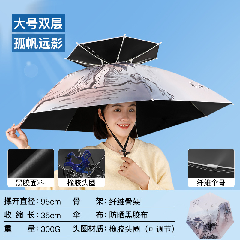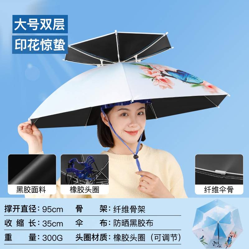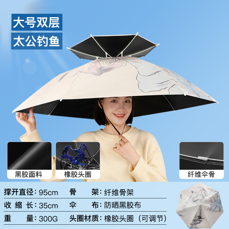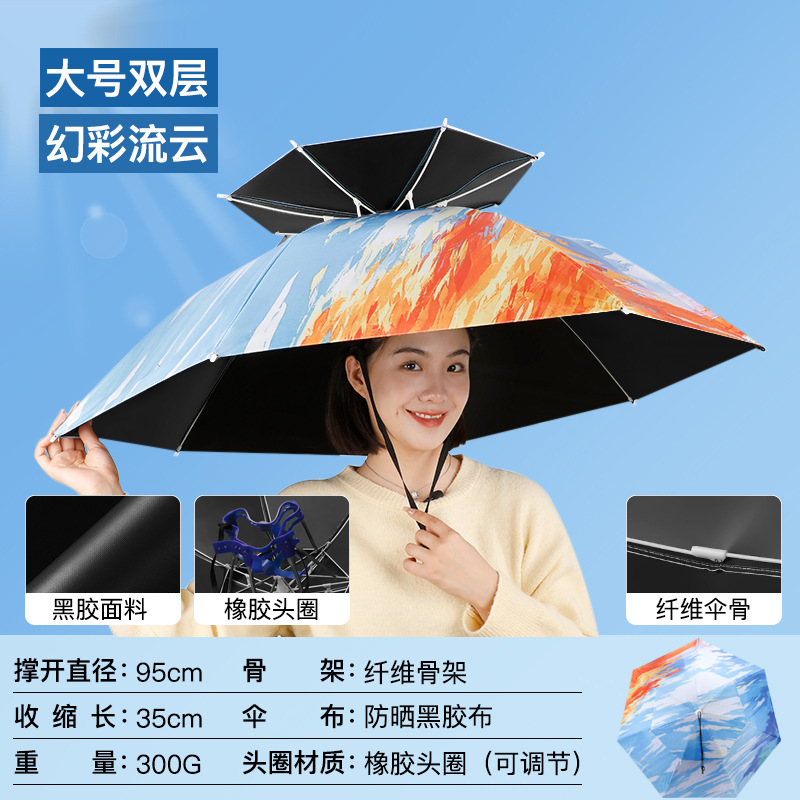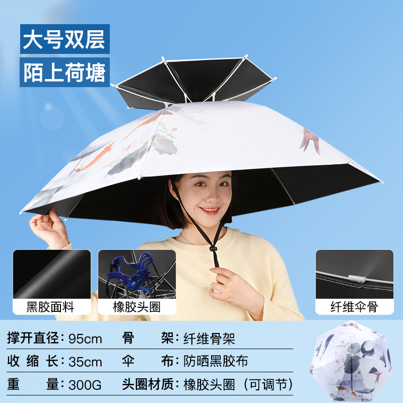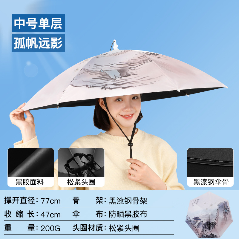 차 따기 자외선 차단제 우산 머리장착 자외선 차단 방우 생선 차양 머리 위 태양 모자 우산 모자 착용스토어 가기