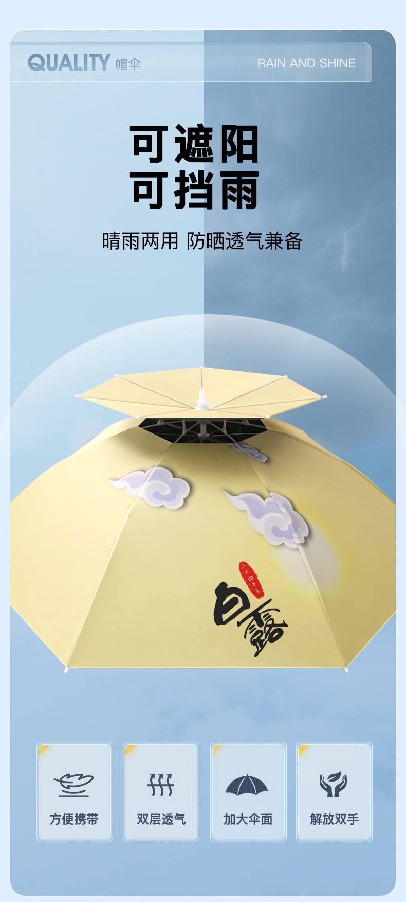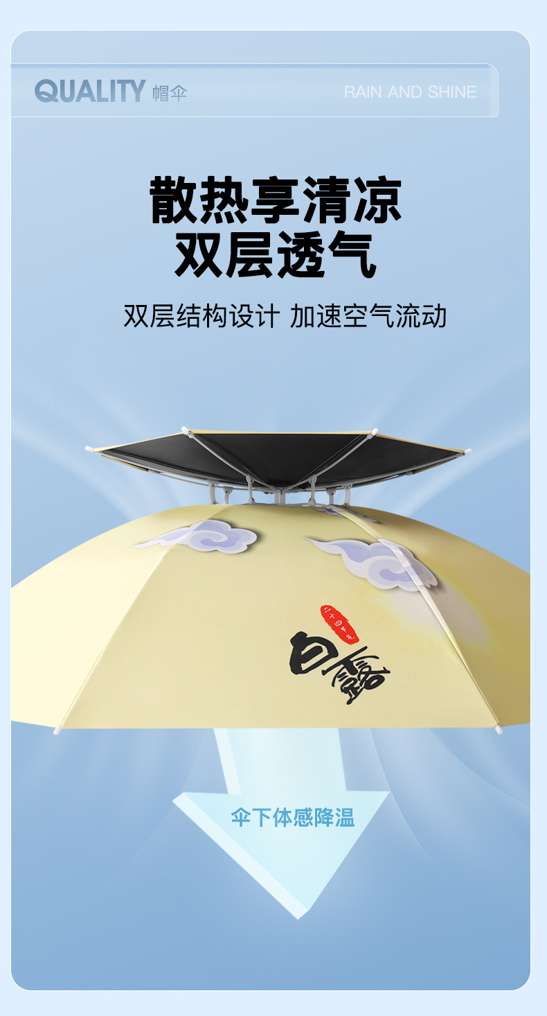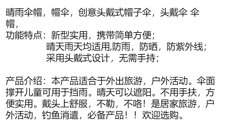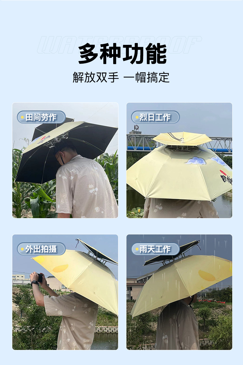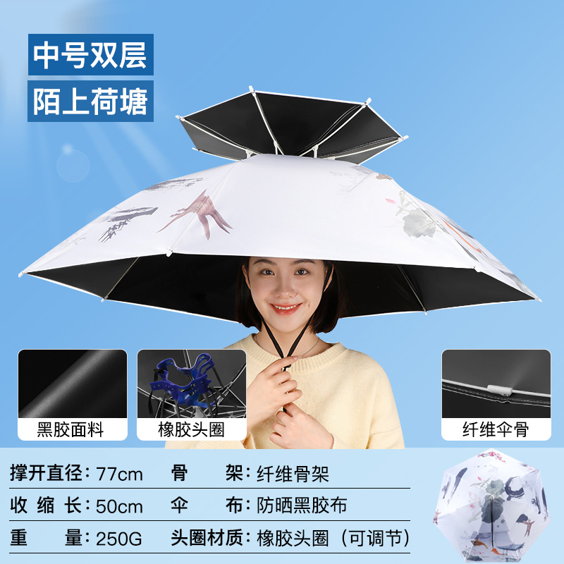 차 따기 자외선 차단제 우산 머리장착 자외선 차단 방우 생선 차양 머리 위 태양 모자 우산 모자 착용스토어 가기