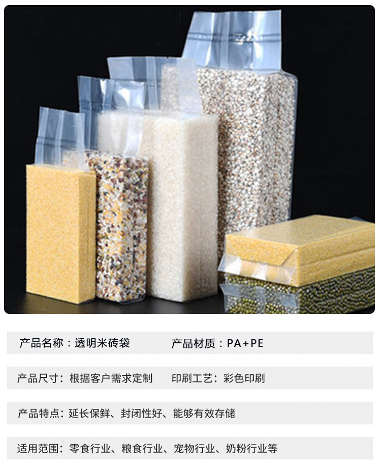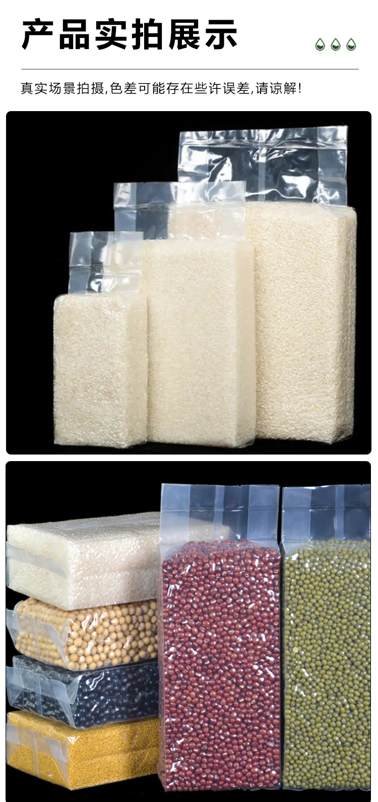 투명 두꺼운 진공 쌀 블록 포장백 광택 있는 곡물 포장백 식품 밀봉 플라스틱 백 제조업체스토어 가기