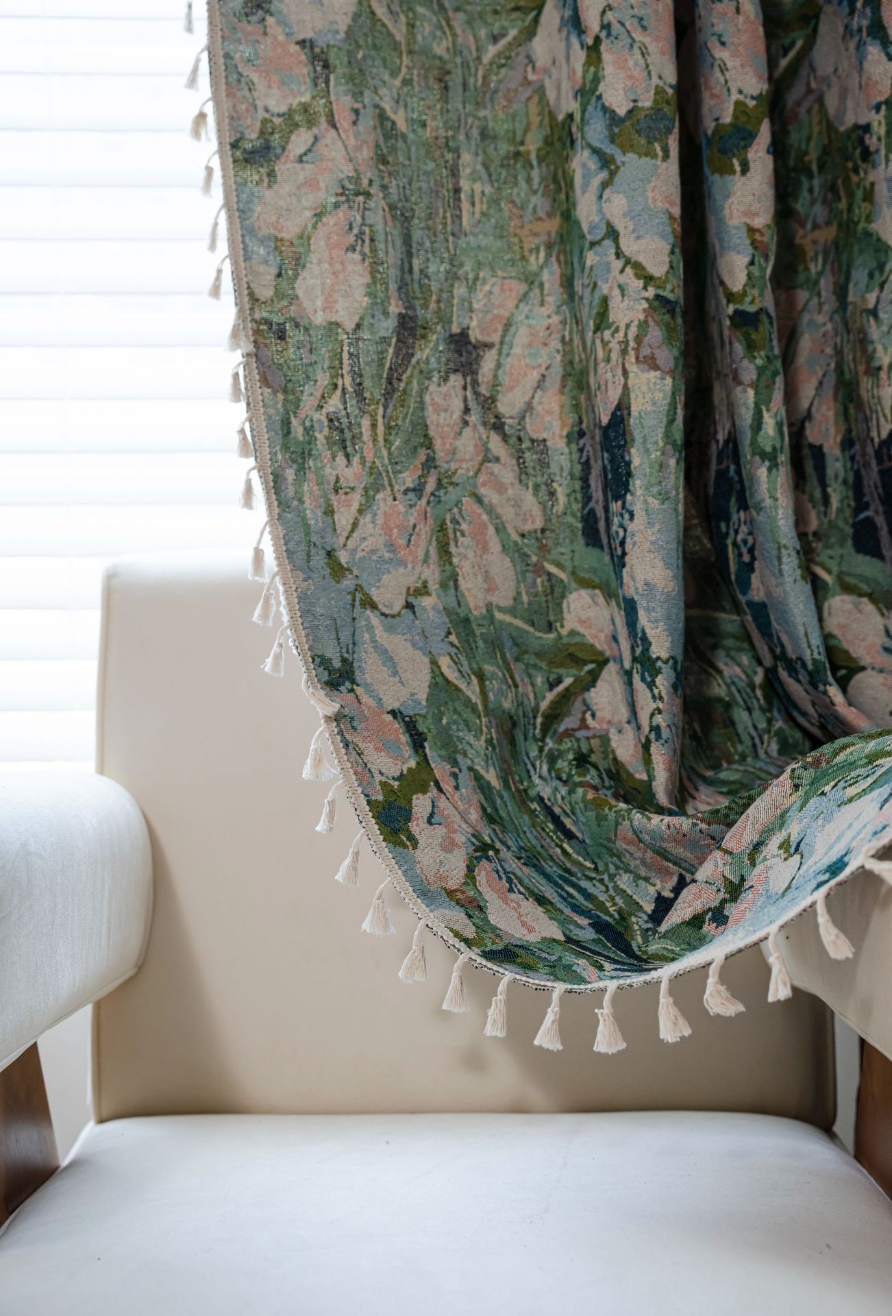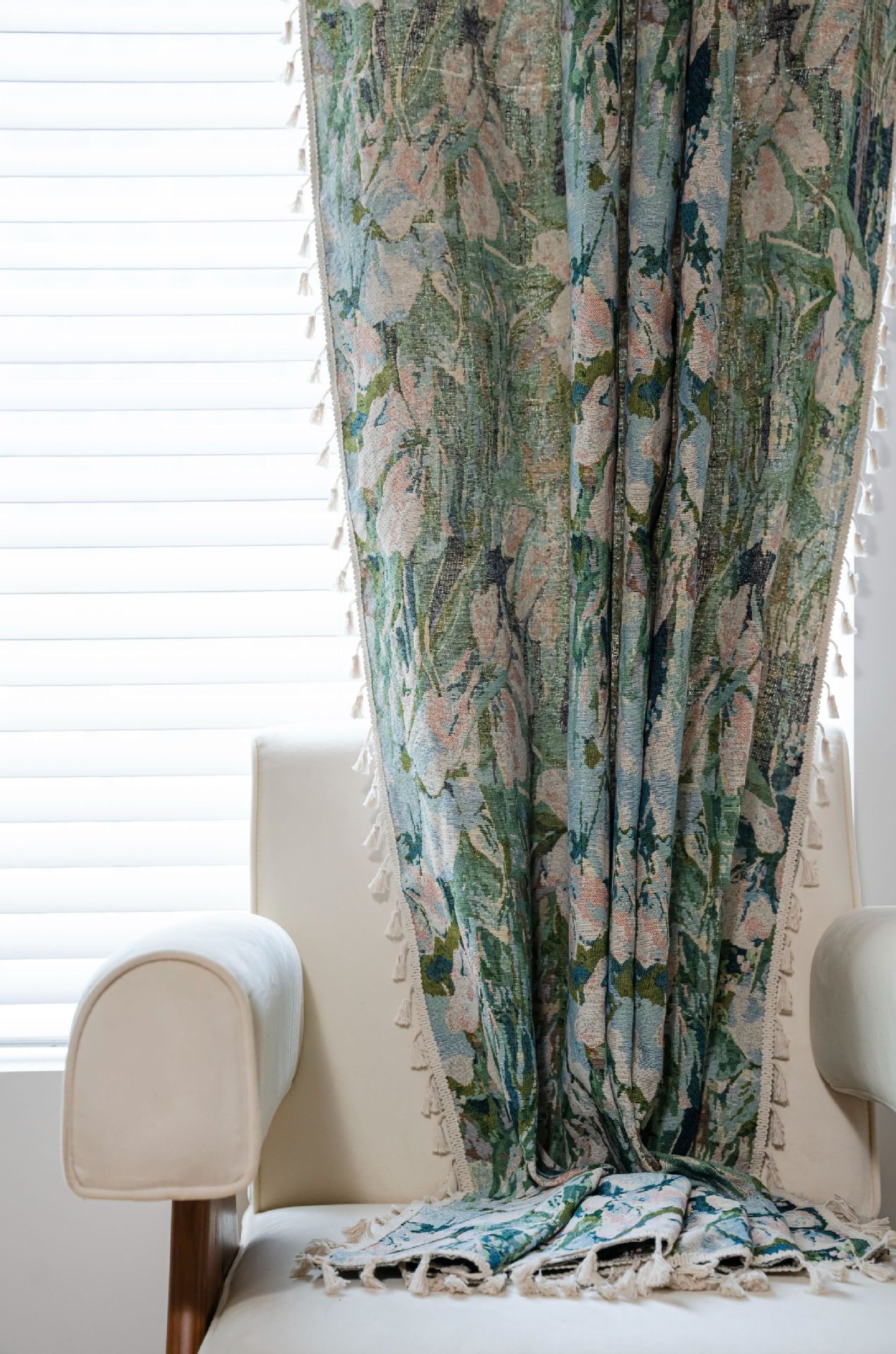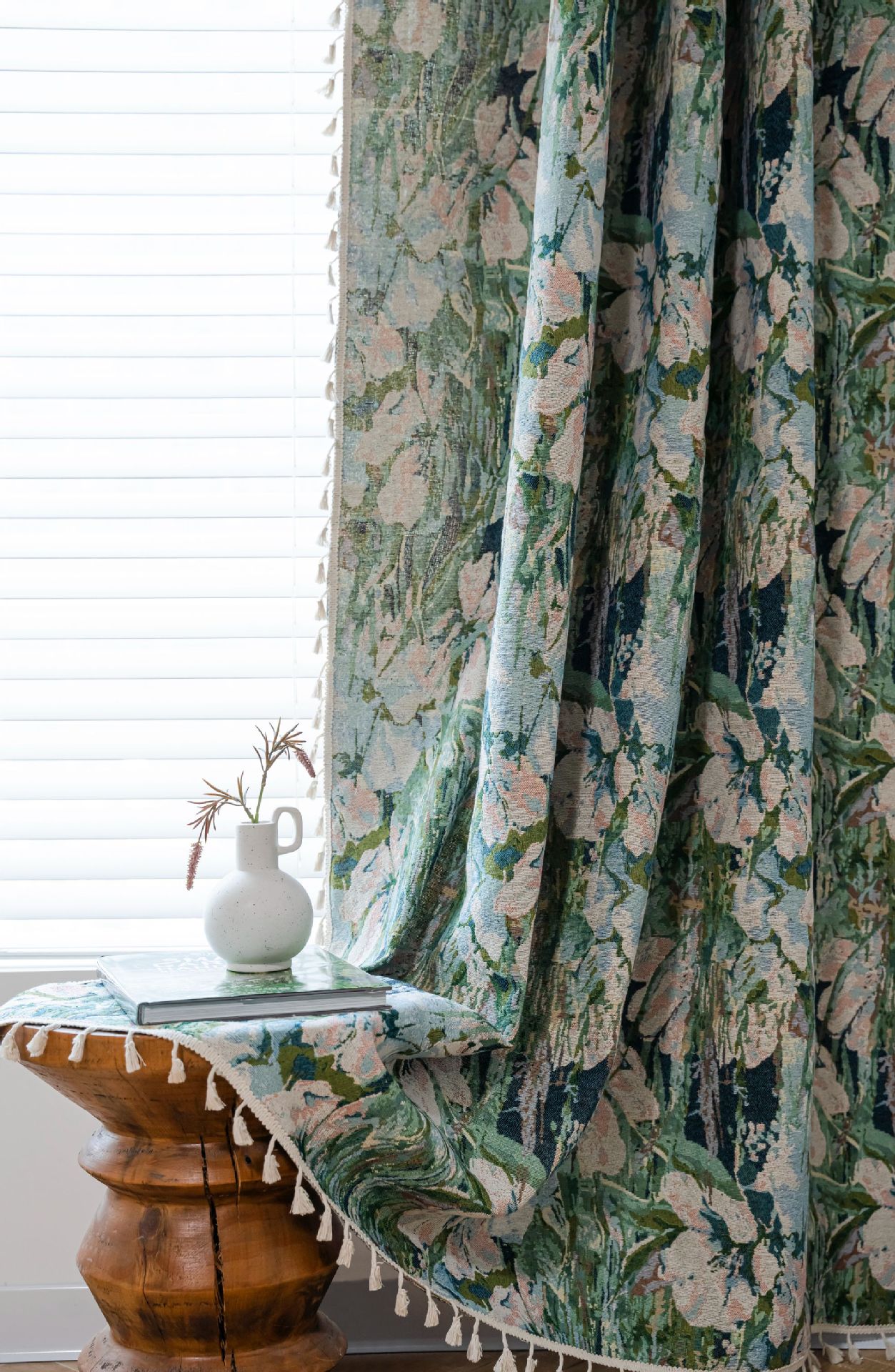 Imanqi Rhyme 커튼 녹색 꽃 자카드 술 커튼 타월 완성 된 주방 커튼 플로팅 창 반음영 공장 직진스토어 가기