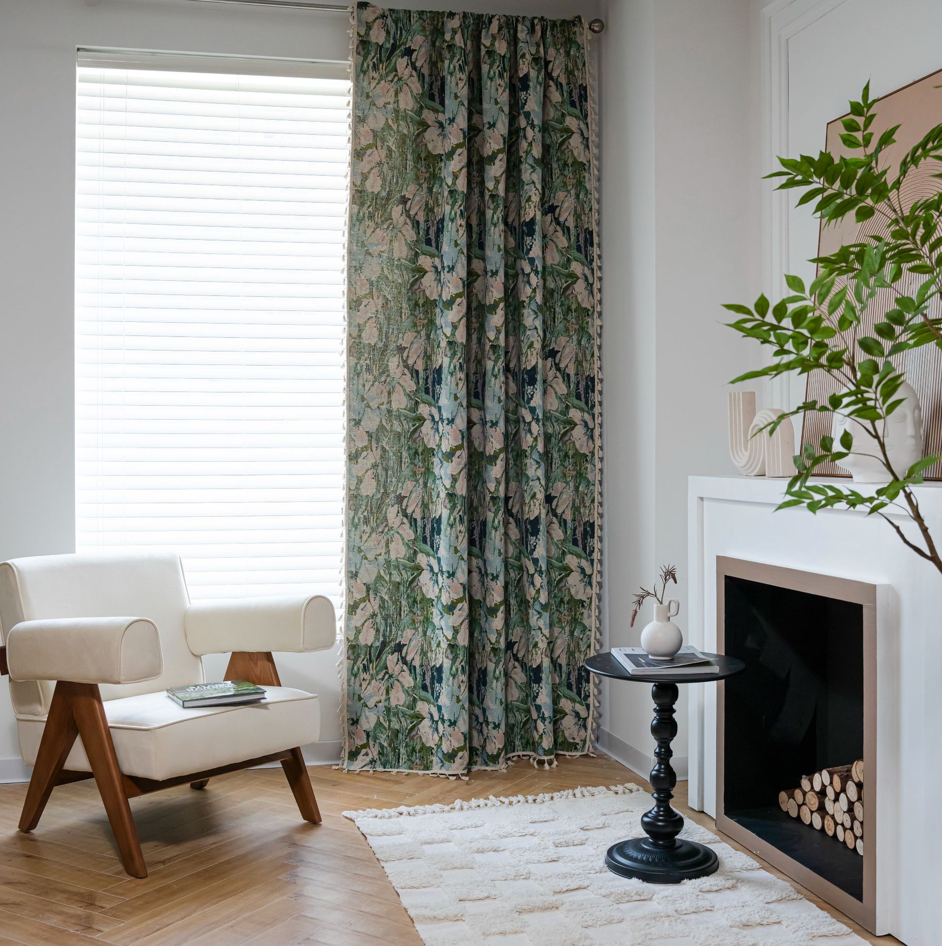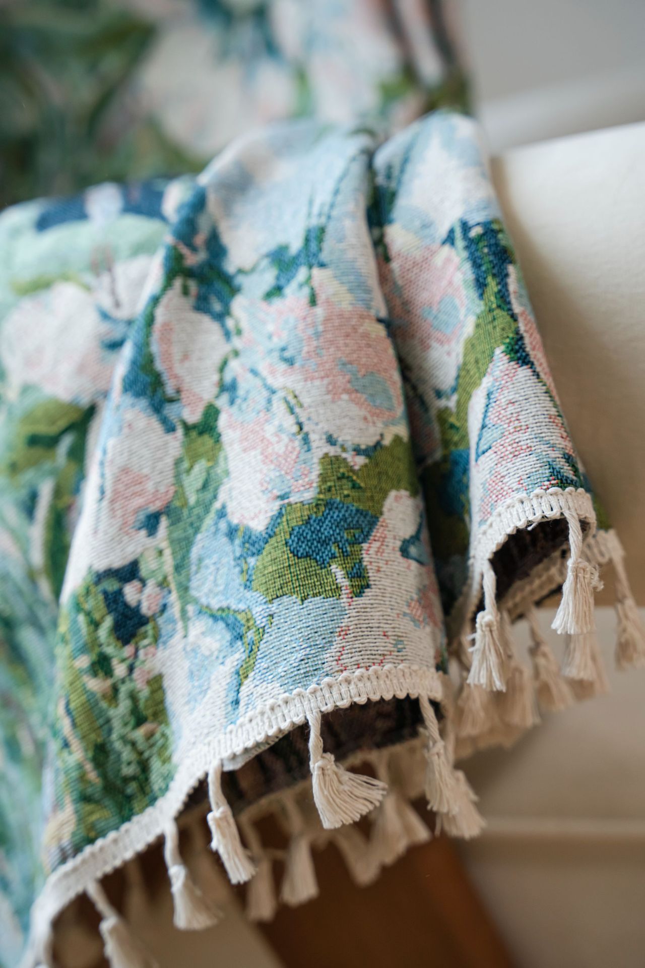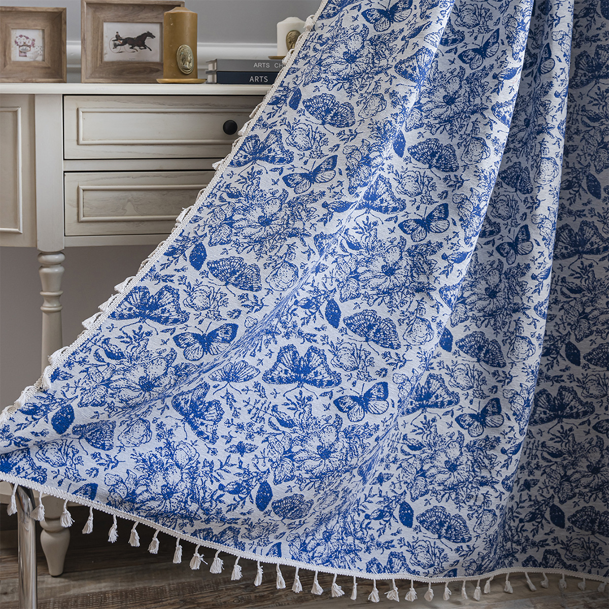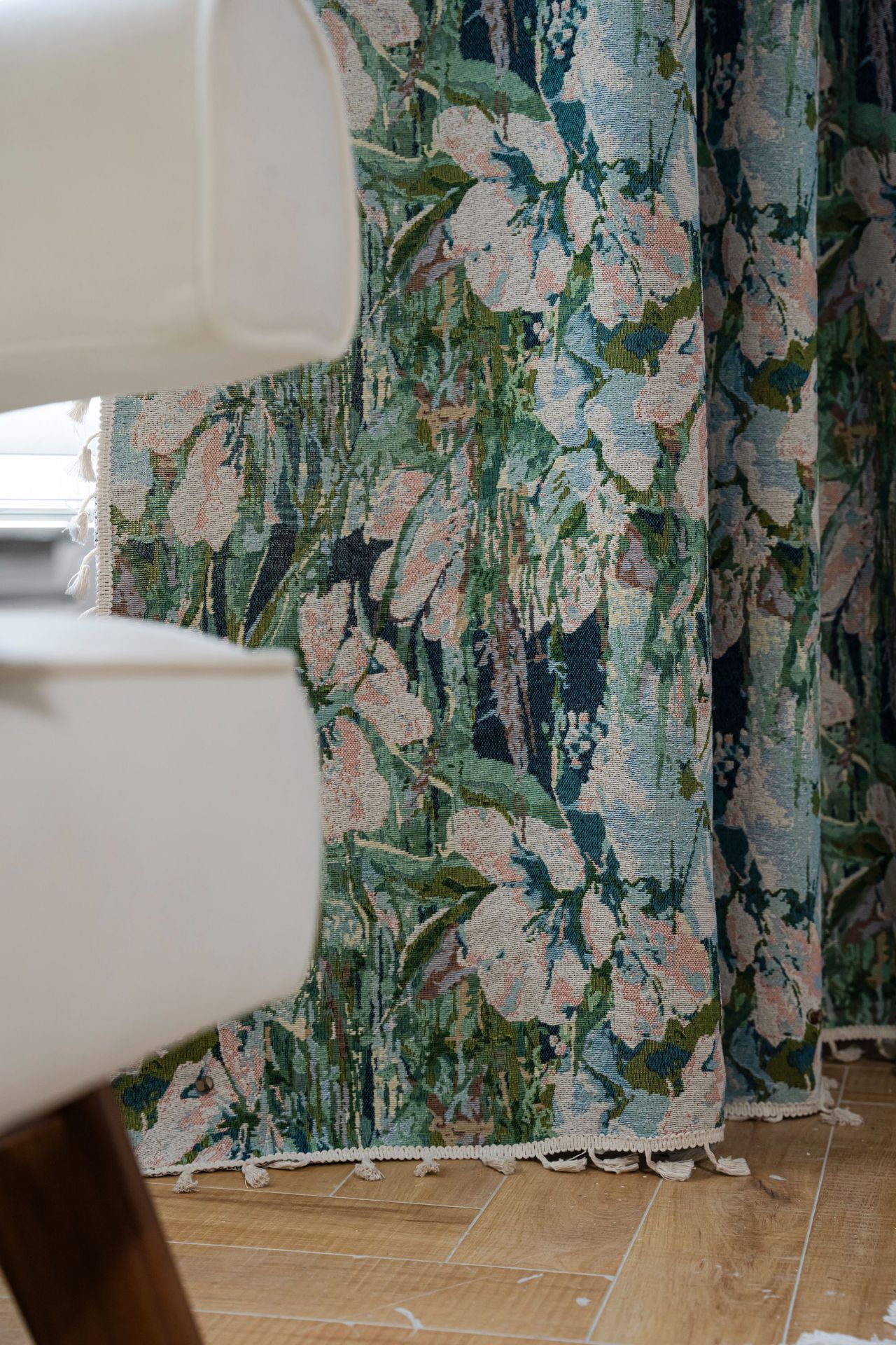 Imanqi Rhyme 커튼 녹색 꽃 자카드 술 커튼 타월 완성 된 주방 커튼 플로팅 창 반음영 공장 직진스토어 가기