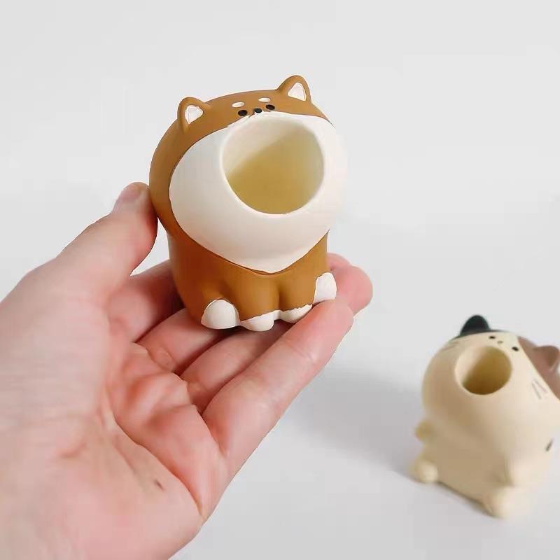 일본 사무실 데스크탑 장식품 귀여운 오픈 입 고양이 펜 용기 학생 문구 메이크업 브러쉬 립스틱 보관함