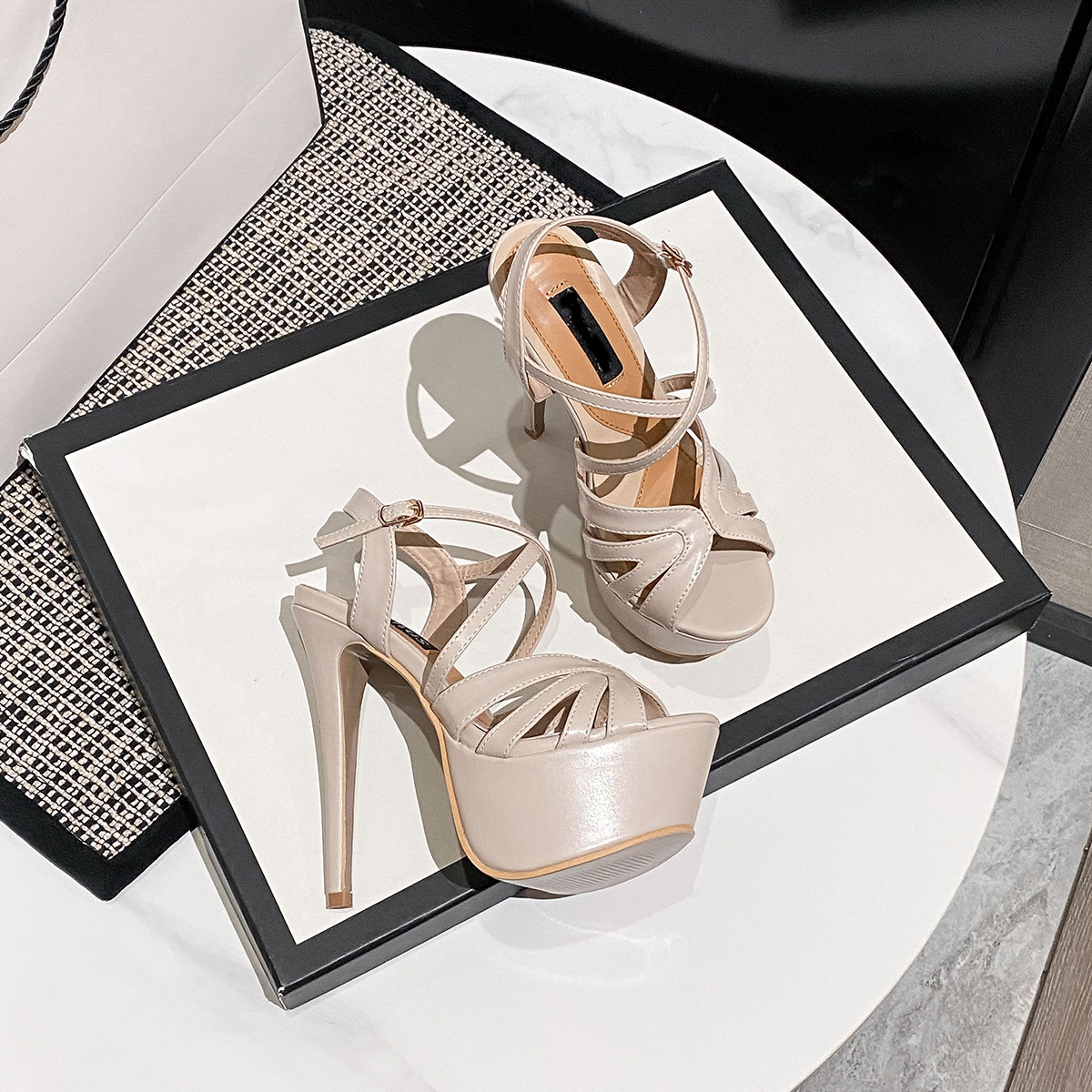 국경을 넘나드는 AliExpress Amazon 유럽과 미국의 섹시한 나이트 클럽 슬림 힐 섹시한 누드 컬러의 아름다운 여성용 하이힐 방수 플랫폼 샌들스토어 가기