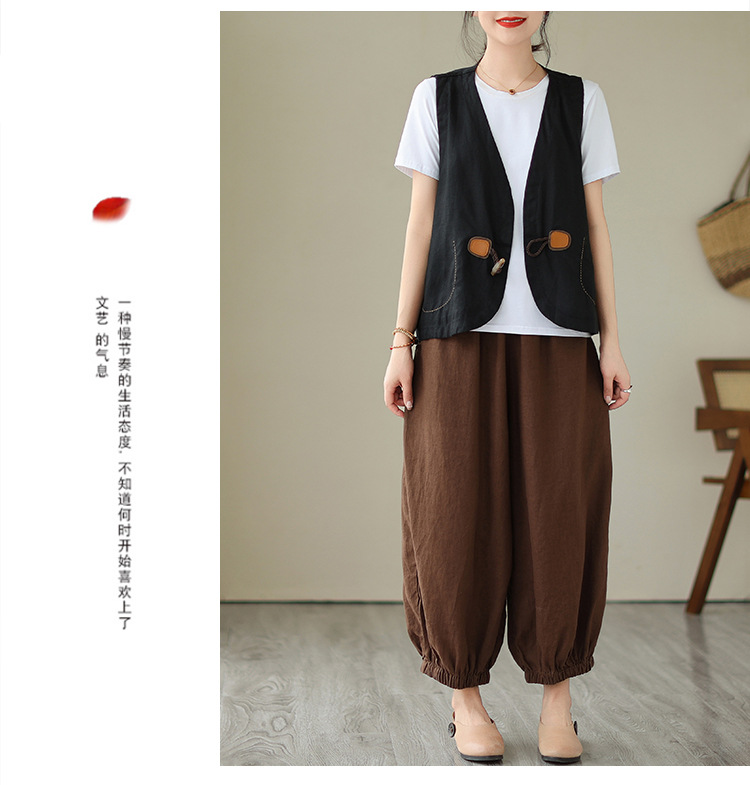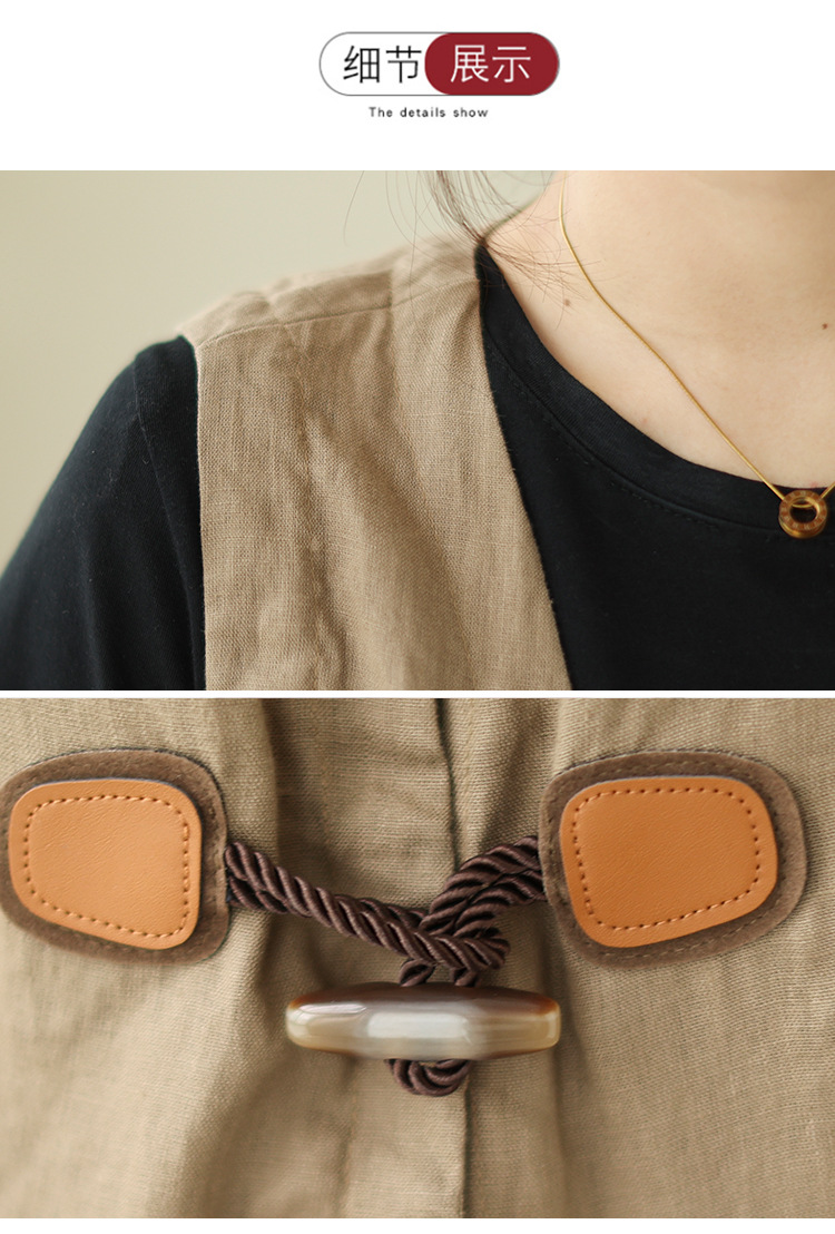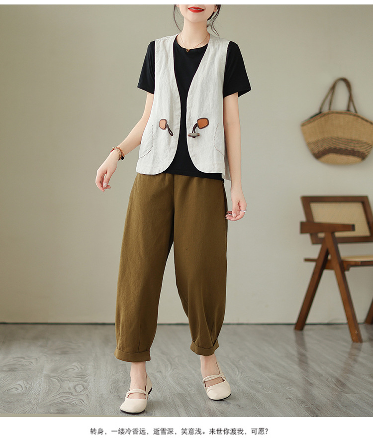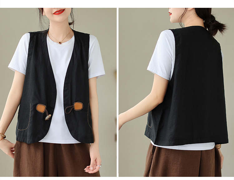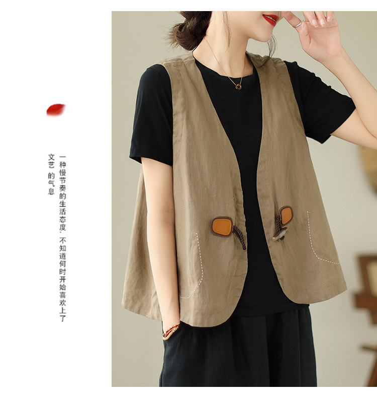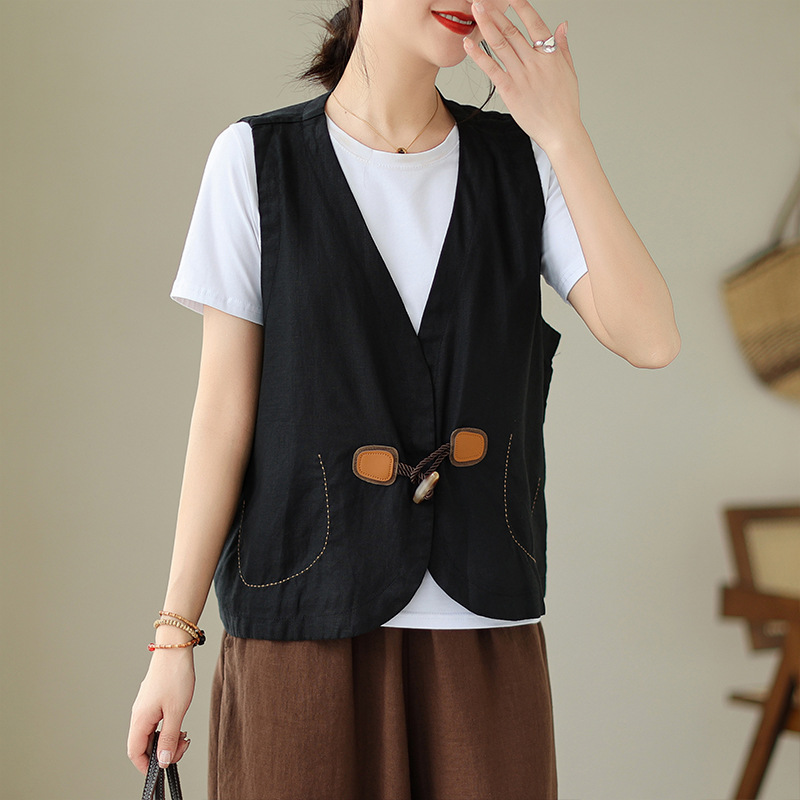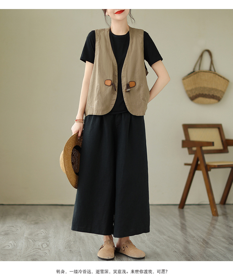 리얼 샷 오리지널 2023 여름 새로운 순수 컬러면 및 린넨 조끼 여성의 느슨한 슬리밍 혼 버클 조끼 바깥 쪽 상단