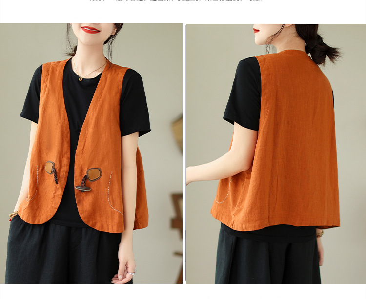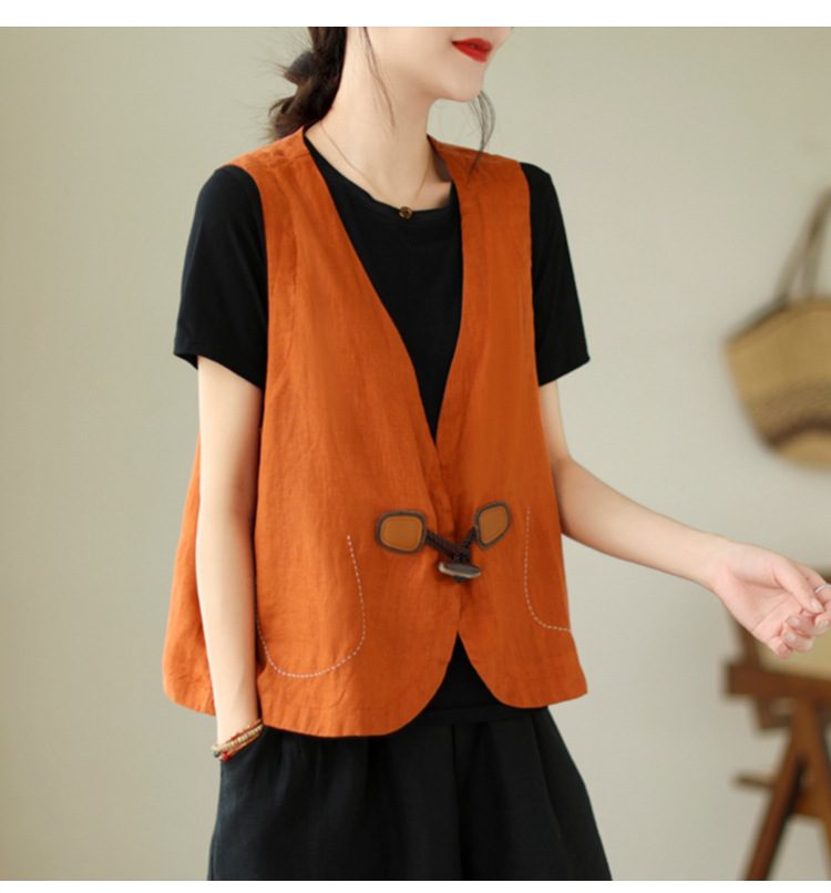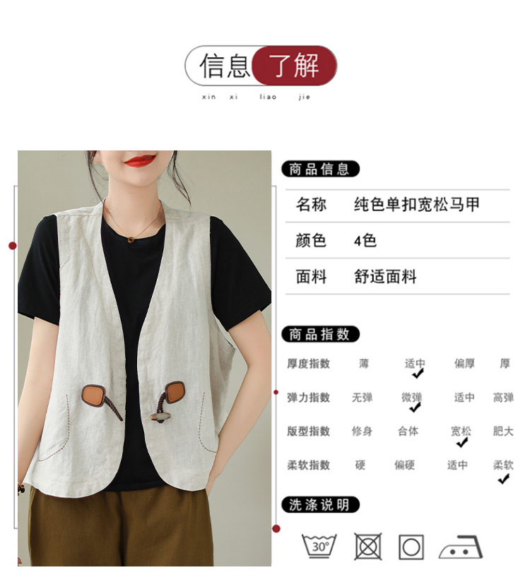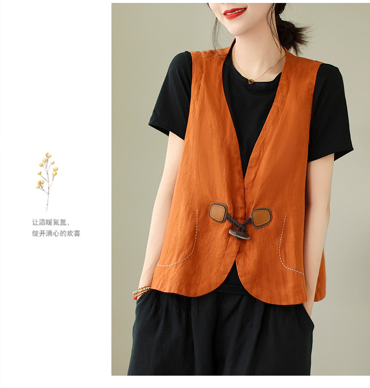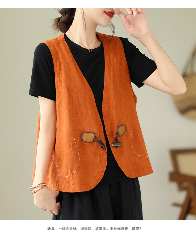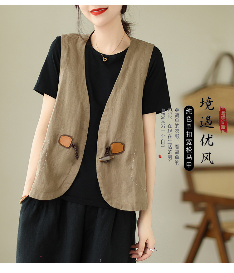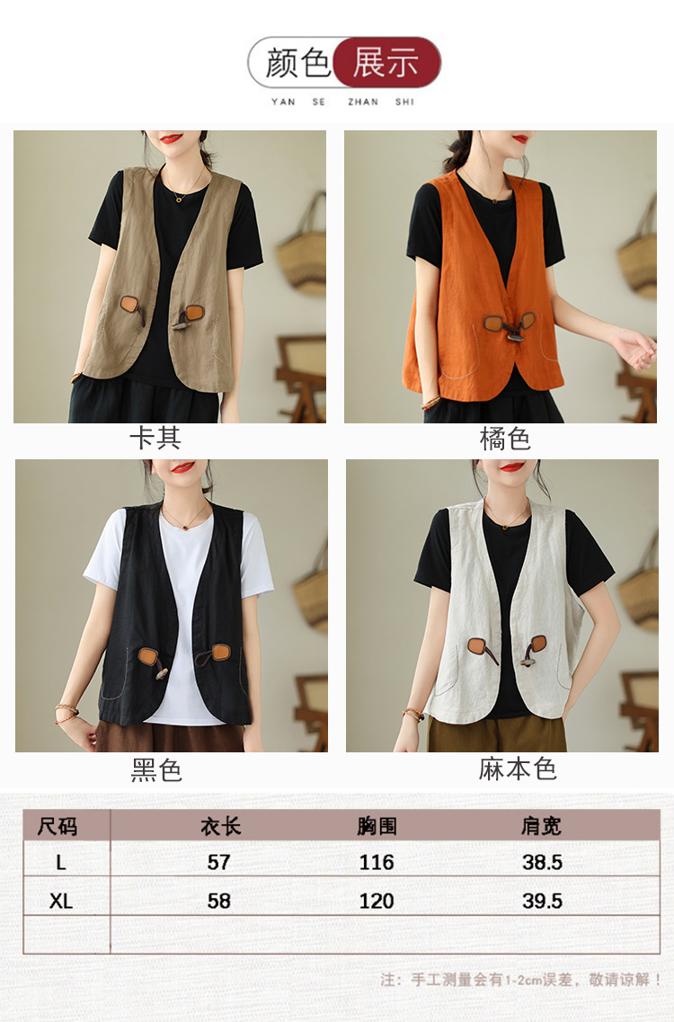 리얼 샷 오리지널 2023 여름 새로운 순수 컬러면 및 린넨 조끼 여성의 느슨한 슬리밍 혼 버클 조끼 바깥 쪽 상단스토어 가기