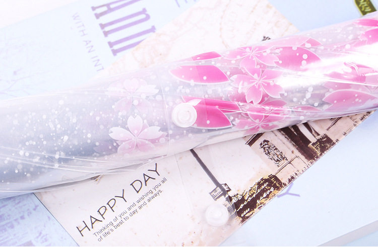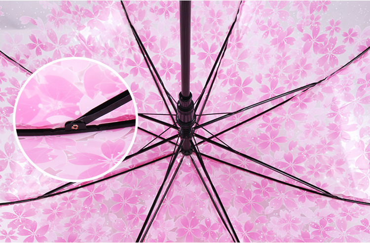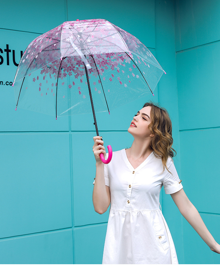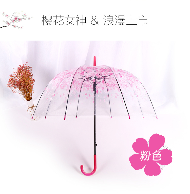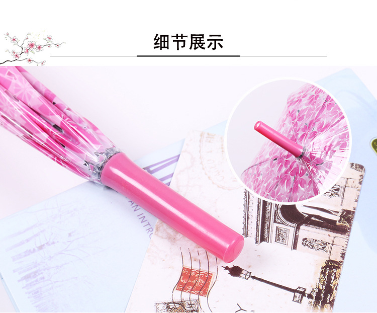 일본풍 인스 스타일의 산뜻한 어린이 학생 공연용 아치형 긴 손잡이 플라스틱 투명 벚꽃 우산 도매스토어 가기