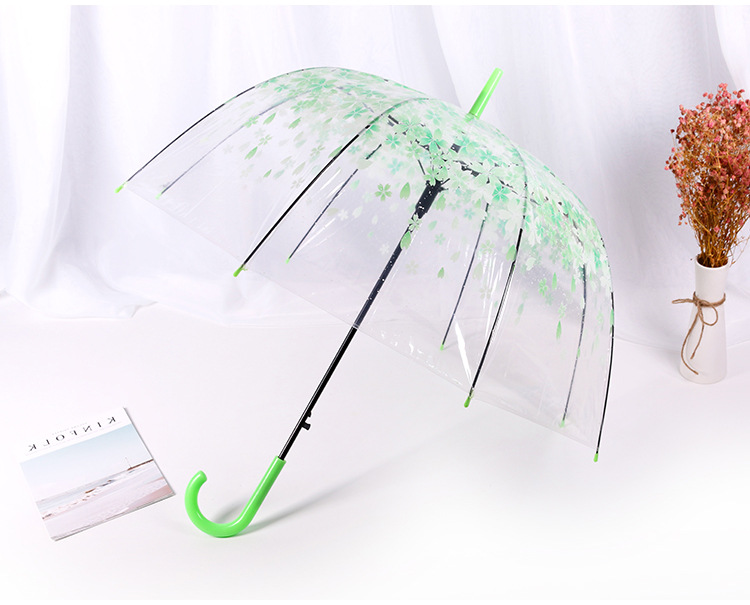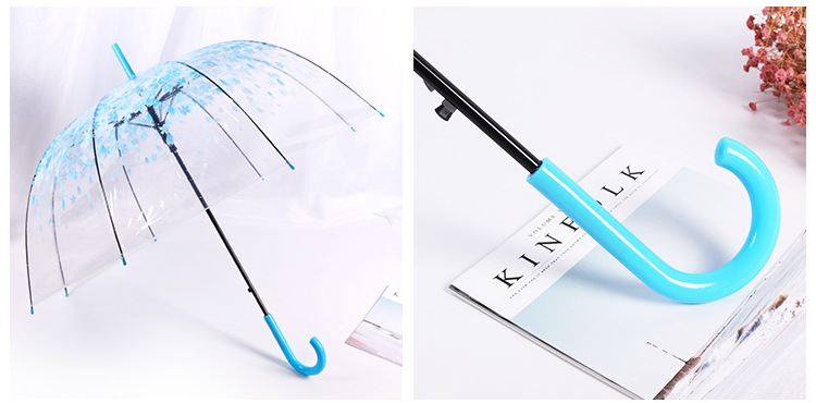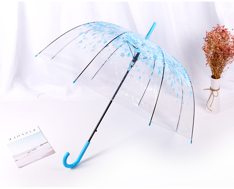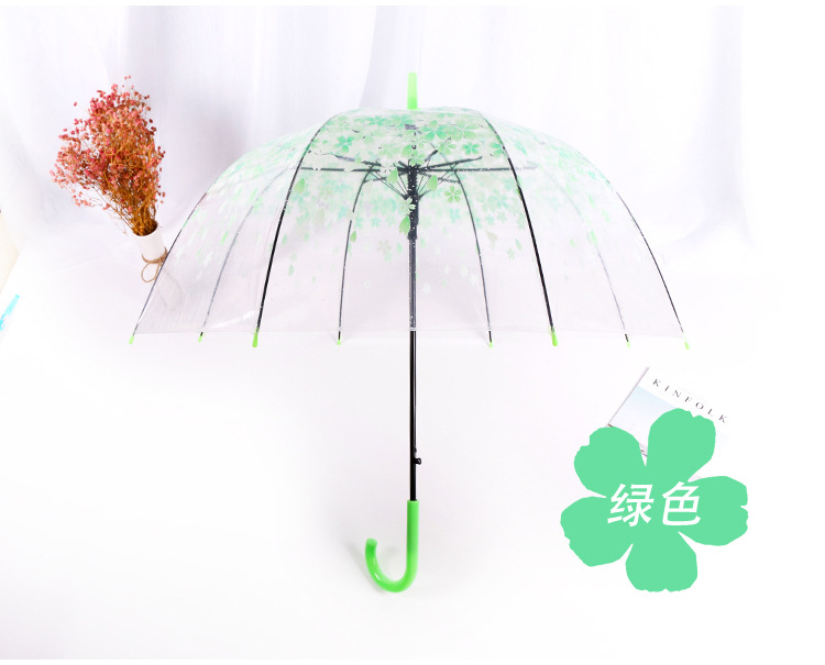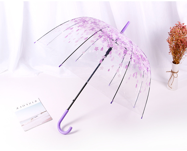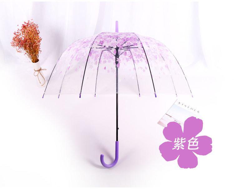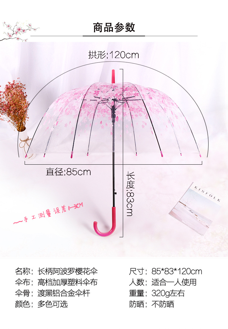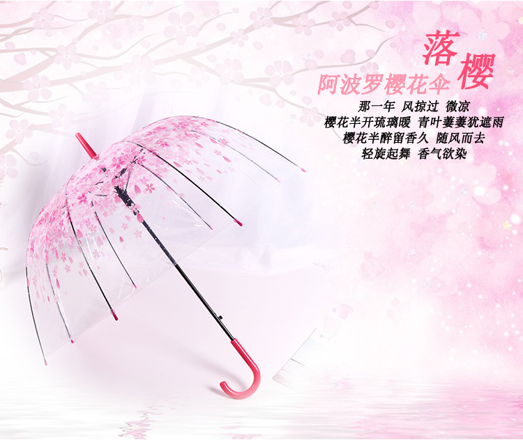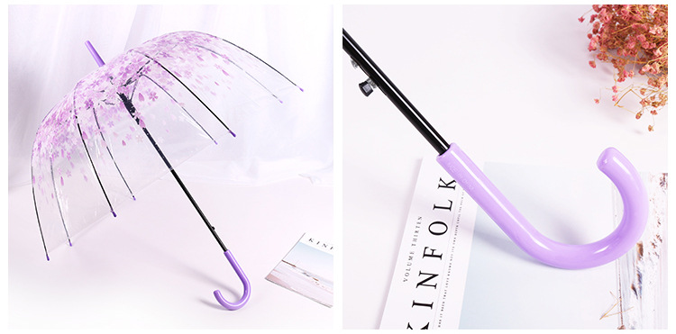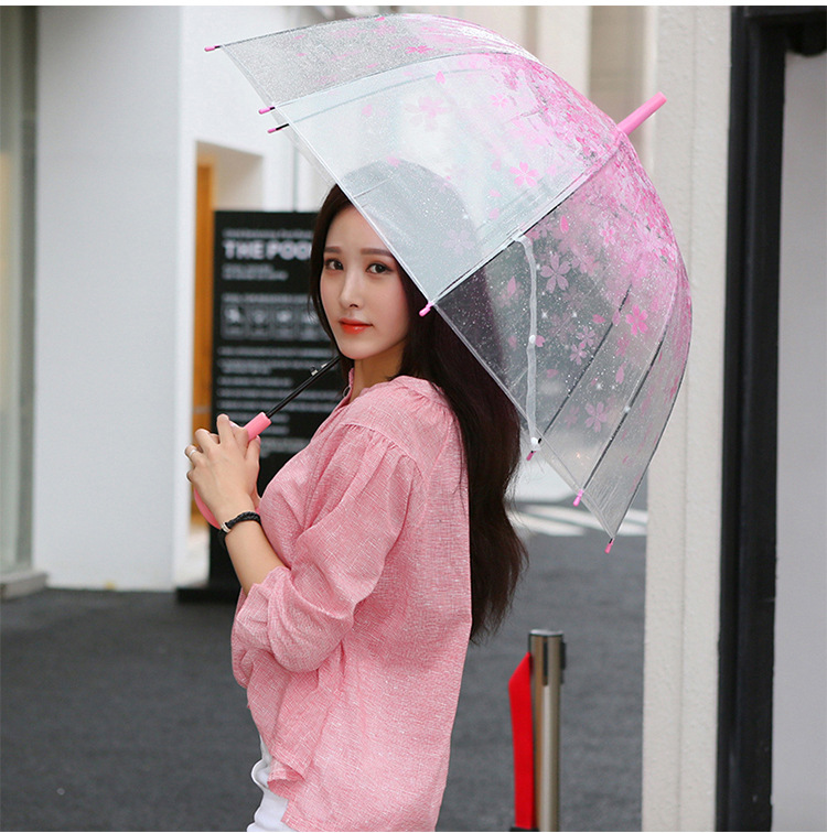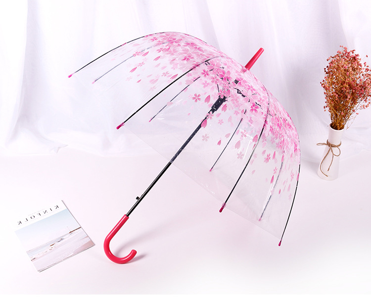 일본풍 인스 스타일의 산뜻한 어린이 학생 공연용 아치형 긴 손잡이 플라스틱 투명 벚꽃 우산 도매