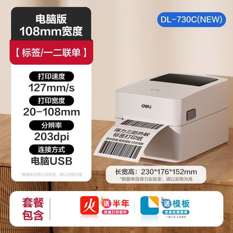 델리 730C 라벨 프린터, 접착식 열전사 용지, 택배 전자 운송장 라벨 용지, 열전사 프린터